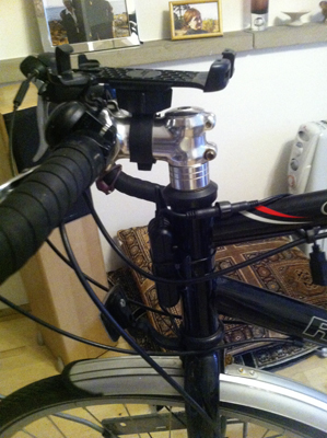 I like to track my cycling using the cyclemeter app on my jPhone, so jPhone nestles in a Lifeproof case which fits into a handlebar mount. The only problems I’ve had are