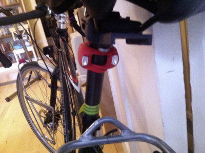 Clipping the cable to Lev’s front fork was easy, but deciding where the USB-WERK should go was less fun. Lev’s top- and down-tubes are oval-sectioned and too thin for the USB-WERK’s attachments – the only option I found was to put the USB-WERK on the front of the head-tube.