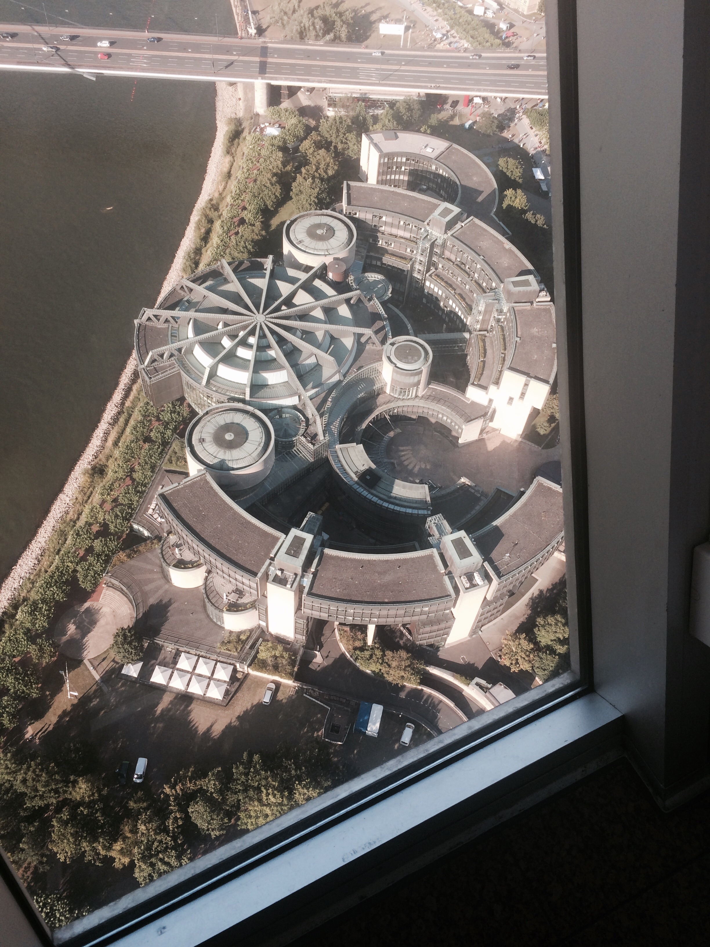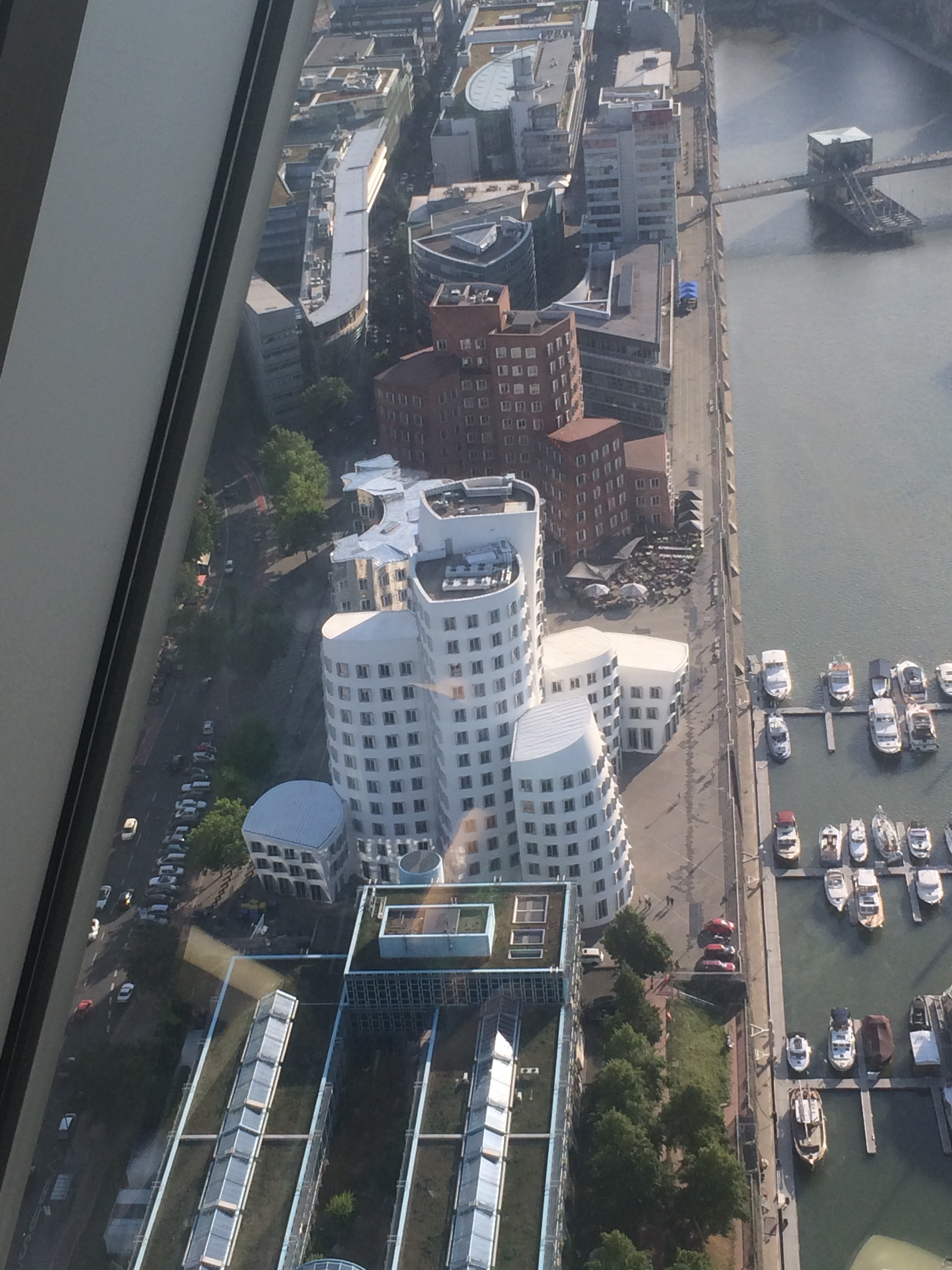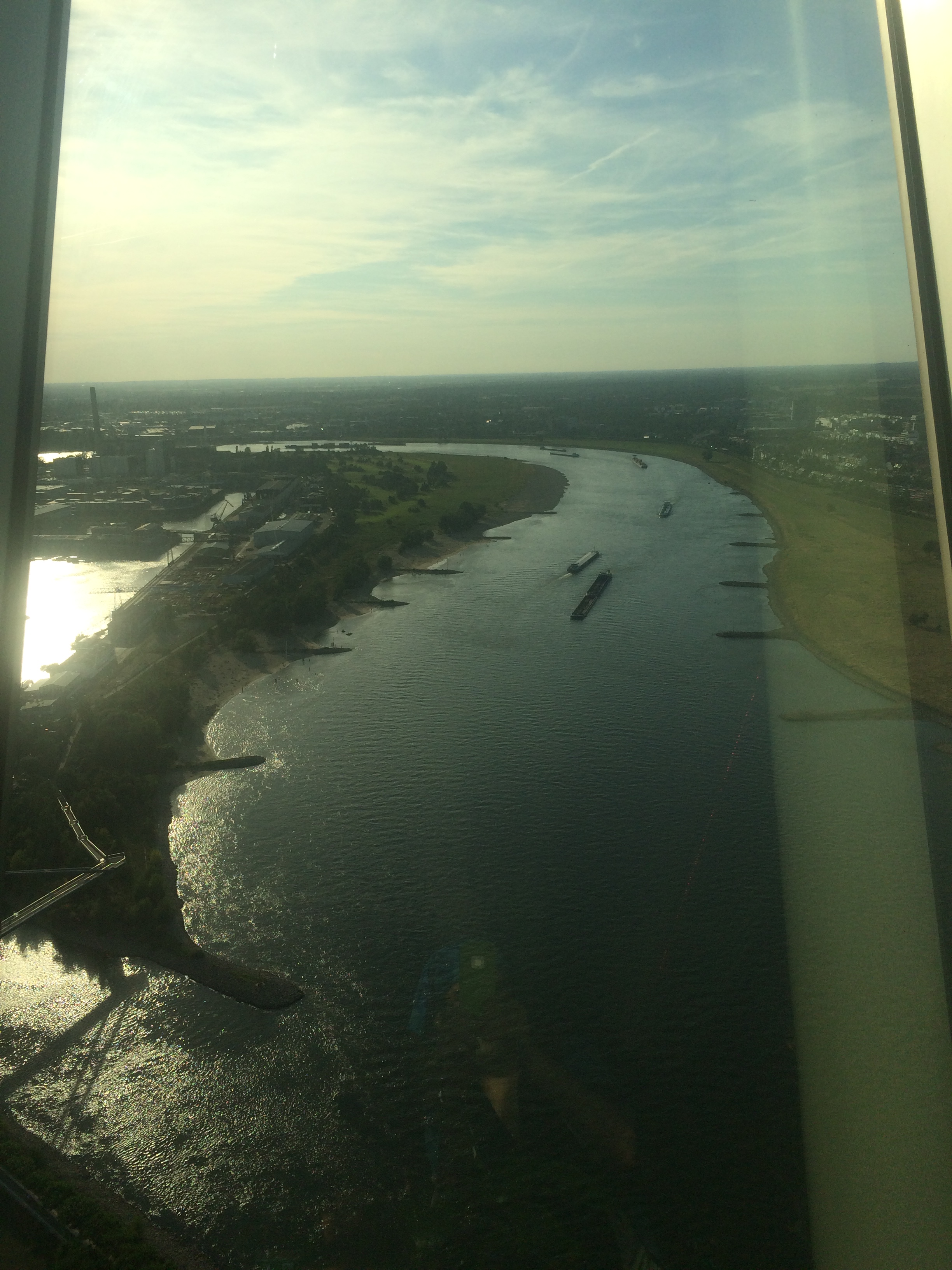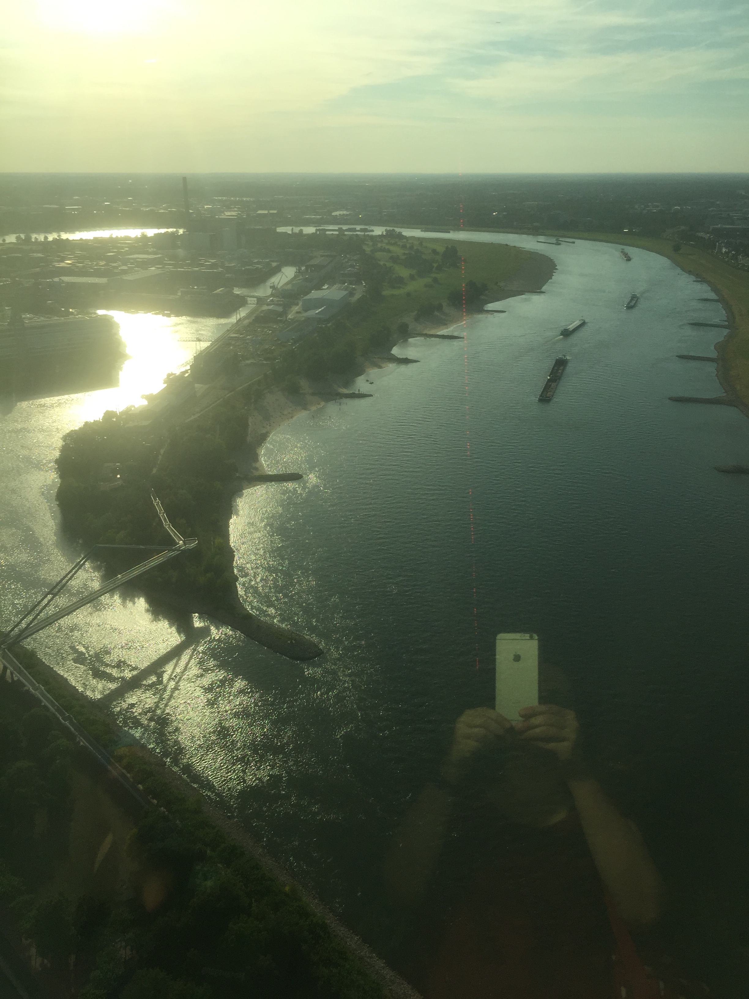 We then shuffled to the Rheinturm to see Düsseldorf from on high – scary but very pretty, and then to a cheap oriental fast-food joint for dinner. I think I’ve eaten the best tofu in Germany there – yeehah. And I’ve not eaten stupid amounts of food today – double yeehah.