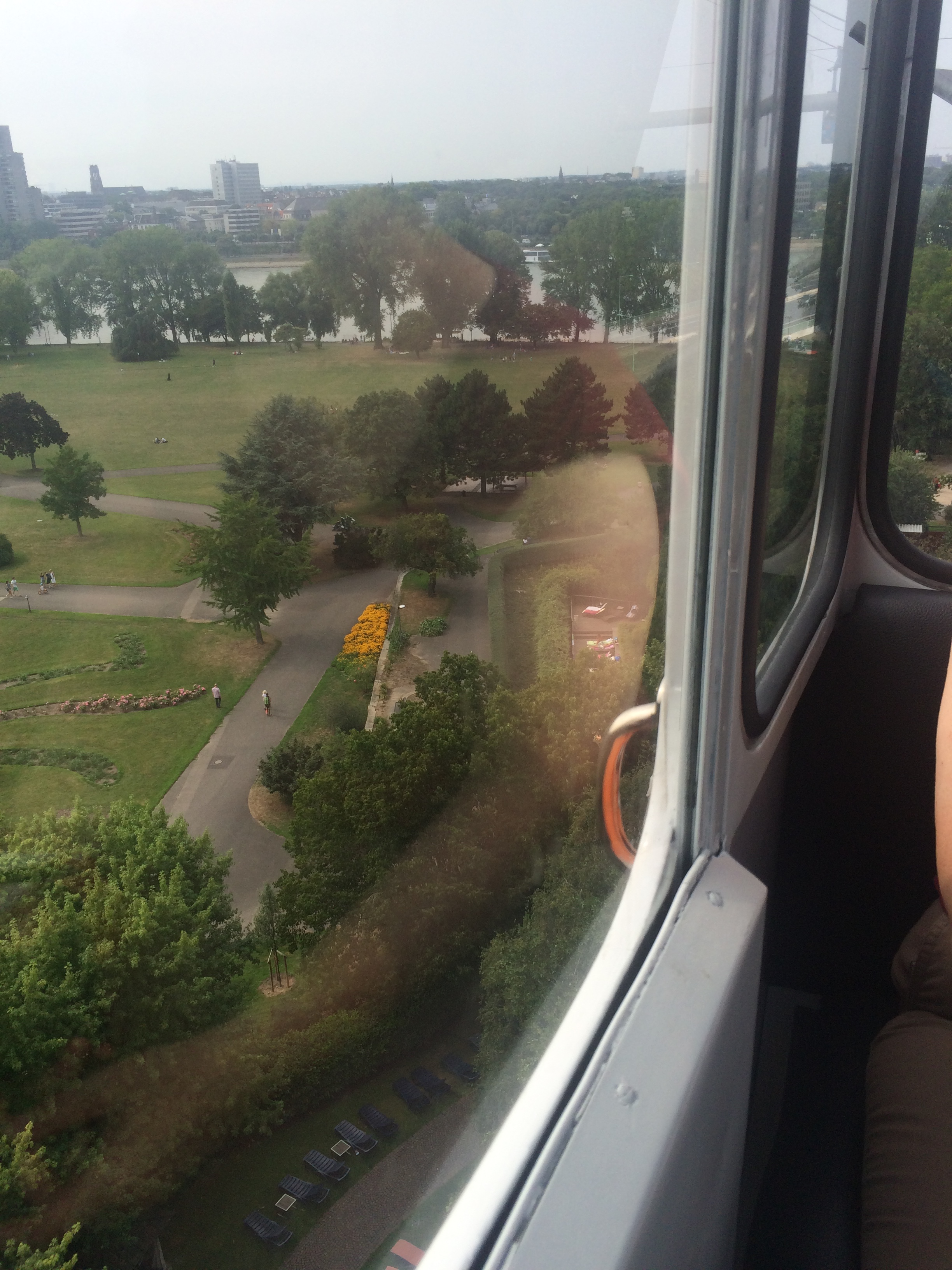 Lunch was at a crowded but welcome Subway – less chance of eating stupid amounts – followed by a cable-car trip across the Rhine and back. I had feared this would scare me stupid but either I’m stupid already or I’ve got a little braver, because I actually enjoyed it, rather than being a whimpering pile of sweat and other bodily fluids on the floor of the car.