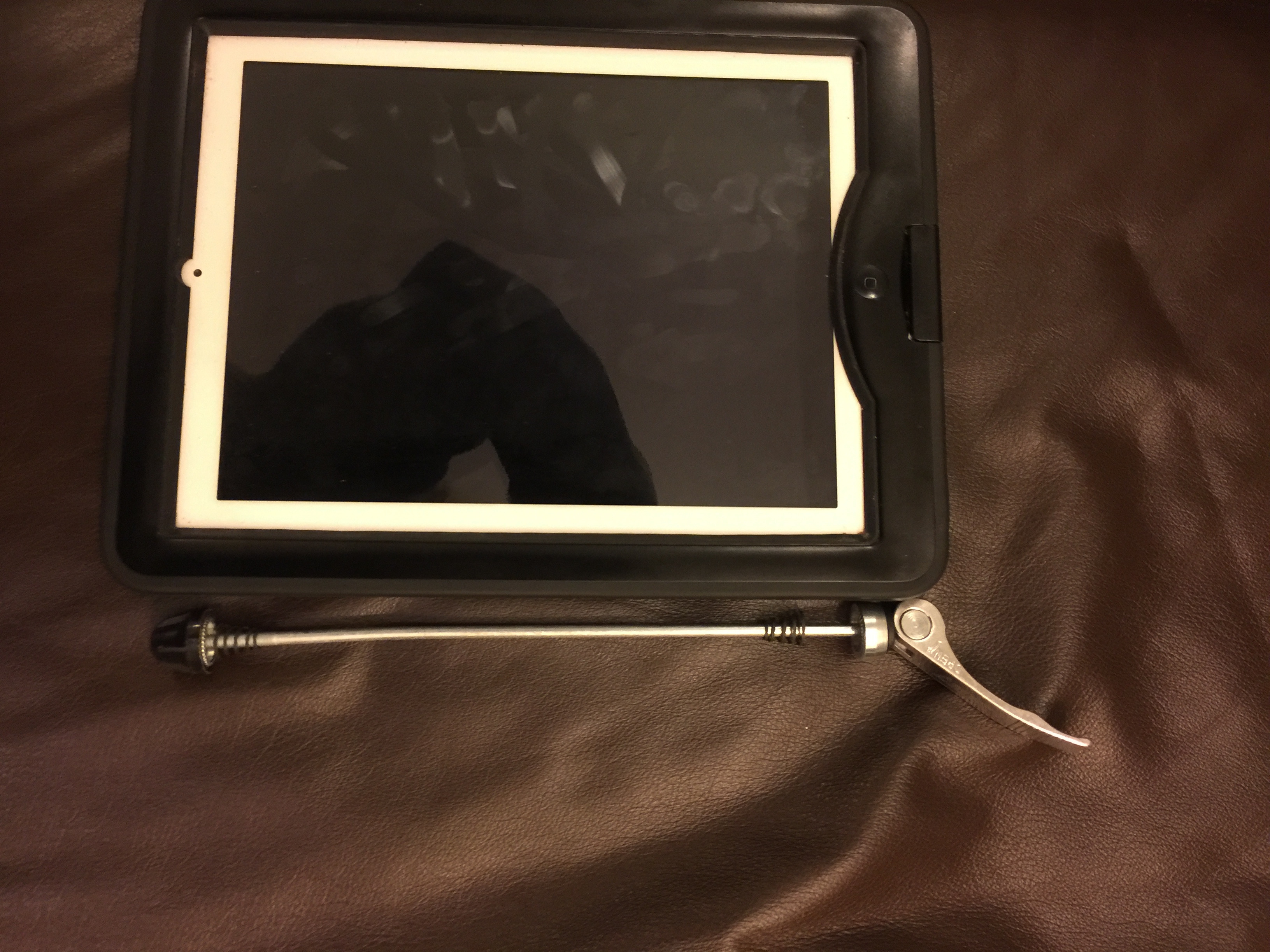 There are no details of how to fix the bit connecting the bike and trailer to either the bike or the trailer. The latter was obvious – a retained pin goes through the bar that connects the connector to the trailer to prevent these coming apart. The former apparently involves a long quick-release skewer and some unexplained extra bolts. I don’t want to use this. Firstly the skewer arrived bent: