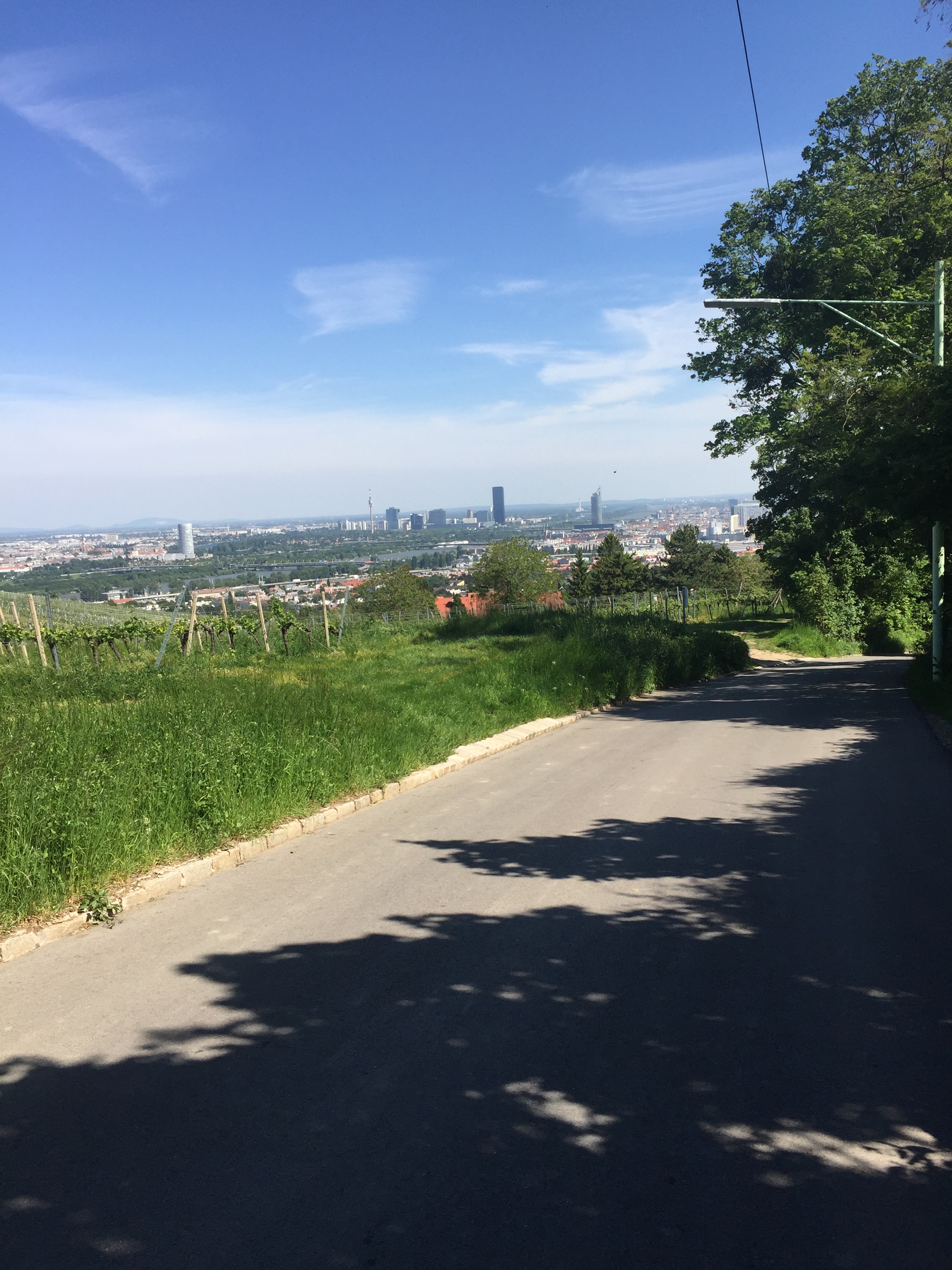 Meanwhile, I failed to get up the MTB path, so cycled on to Klosterneuberg and ascended via a shallower but longer route – and cooked my arms in the sun.