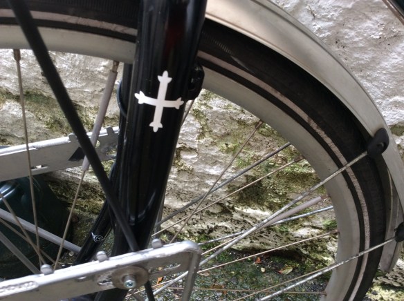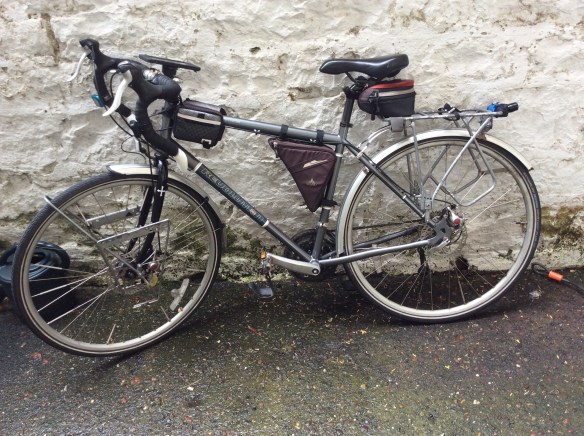 When I got Lev back, he was almost a completely new bike. As well as the new frame, he had new front forks because the old ones didn’t fit the new frame. He also had a new cassette and chain. So the only original parts were the handlebar, brakes, wheels, groupset and rear panner-rack. (I don’t count the front pannier-rack, luggage, phone-carrier, dynamo system and lights because they are aftermarket add-ons.)