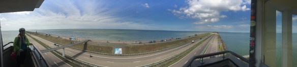 So we’ve made today’s plans: 56 miles including the glorious tarmac of the Afsluitdijk. That’s a massive dyke shutting off the North Sea, but the main advantage is smooth tarmac, sheltered from the wind by the polder wall. There is video of some of our route: I bought the GoPro, but I won’t upload it until we have wifi.