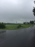 This morning, reality struck in the form of rain, then rain, then more rain. It was too warm for me to wear full gloves when we started, so those were stowed deep in my panniers, and I just wore mitts in my hands. The route was too wet and lacking in shelter to want to stop and fish for gloves, jacket or overshoes, so I got wet and cold. Elly’s jacket was handier (she was wearing it) but perhaps we should have brought rainproofs we can put on without stopping. (Annoyingly, I have one but I left it in Edinburgh to reduce the amount of stuff strapped to Lev.)