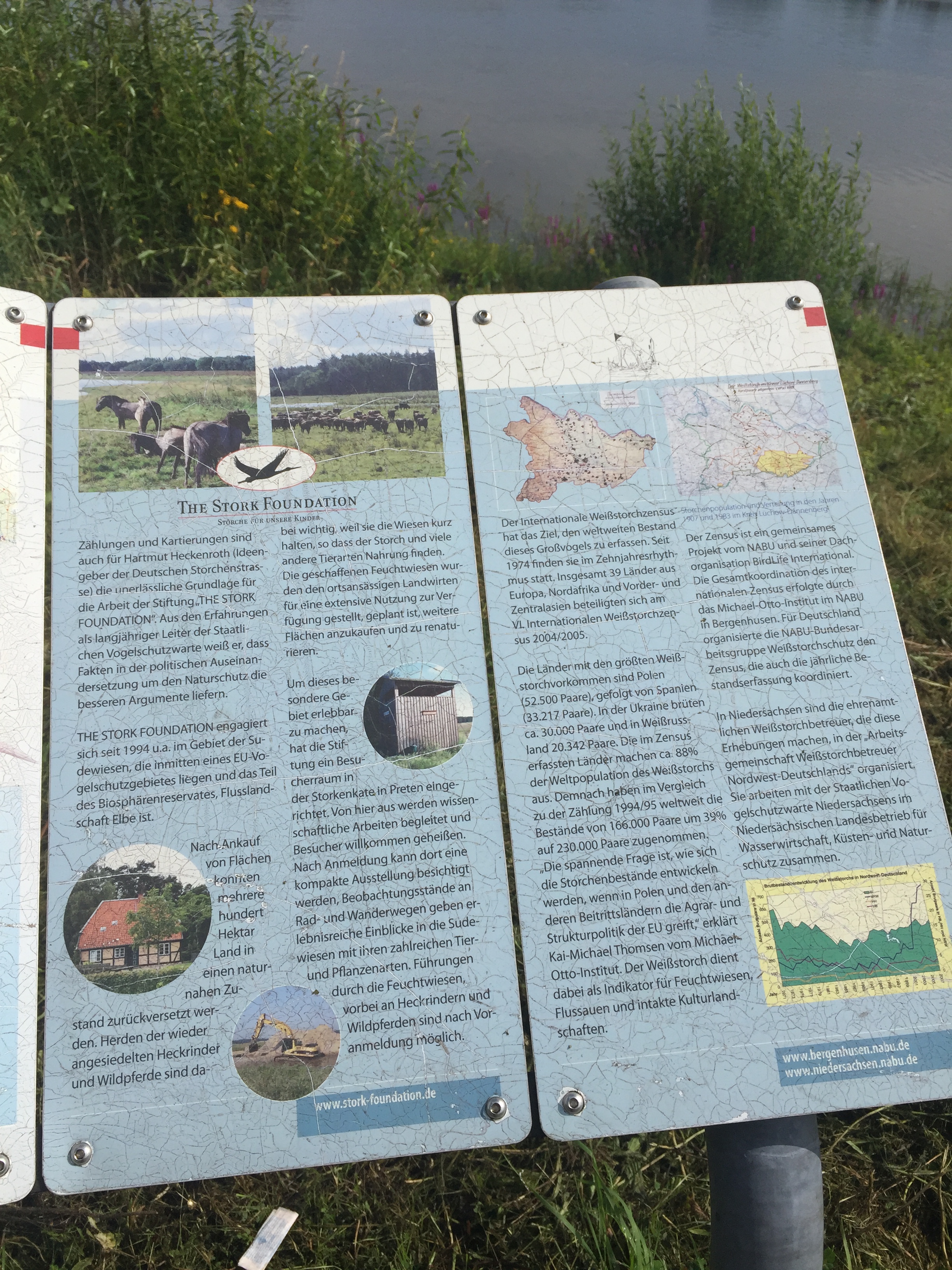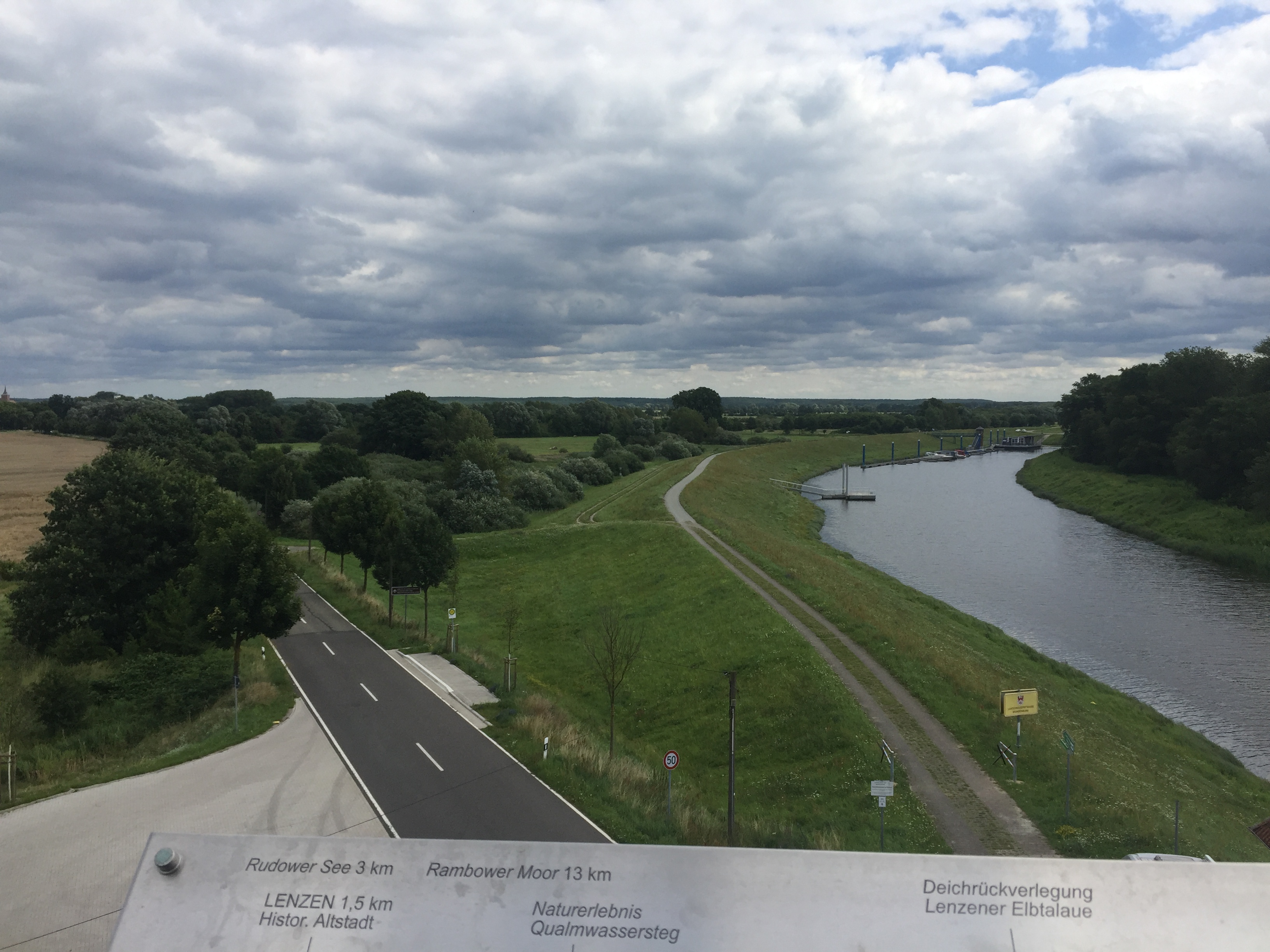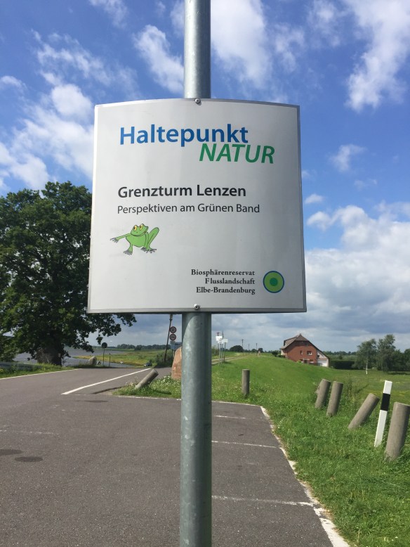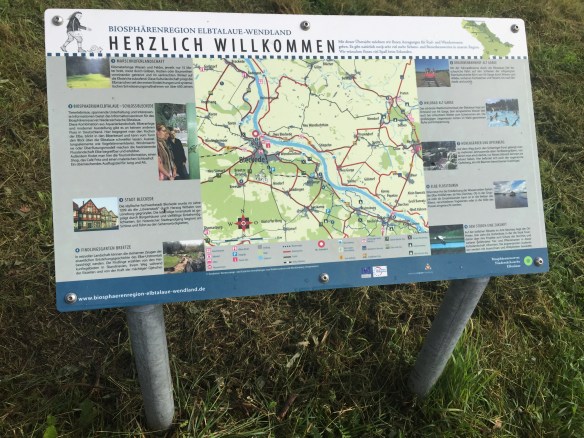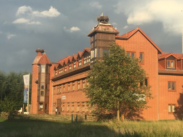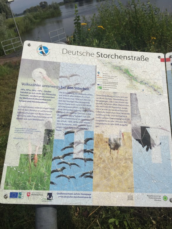 Today we have come to the mother of all stork-refuges, in Rühstädt. It’s a small village on the Elbe, in Brandenburg. (We crossed from Mecklenberg-Vorpommern a couple of miles south-east of Domitz.) If you squint really hard through offensively biased lenses, you might be able to tell that this was a former East German area. I can’t do that. All I can say is that today’s cycle-path surfaces were mostly reasonable tarmac or good hard gravel, but there were a couple of short stretches along forest tracks that are not good for touring bikes. The gravel-dust has coated Lev and Fidel’s drive-trains a bit. Had I the facilities and inclination, I’d de-cack them. But I have neither, so I won’t.