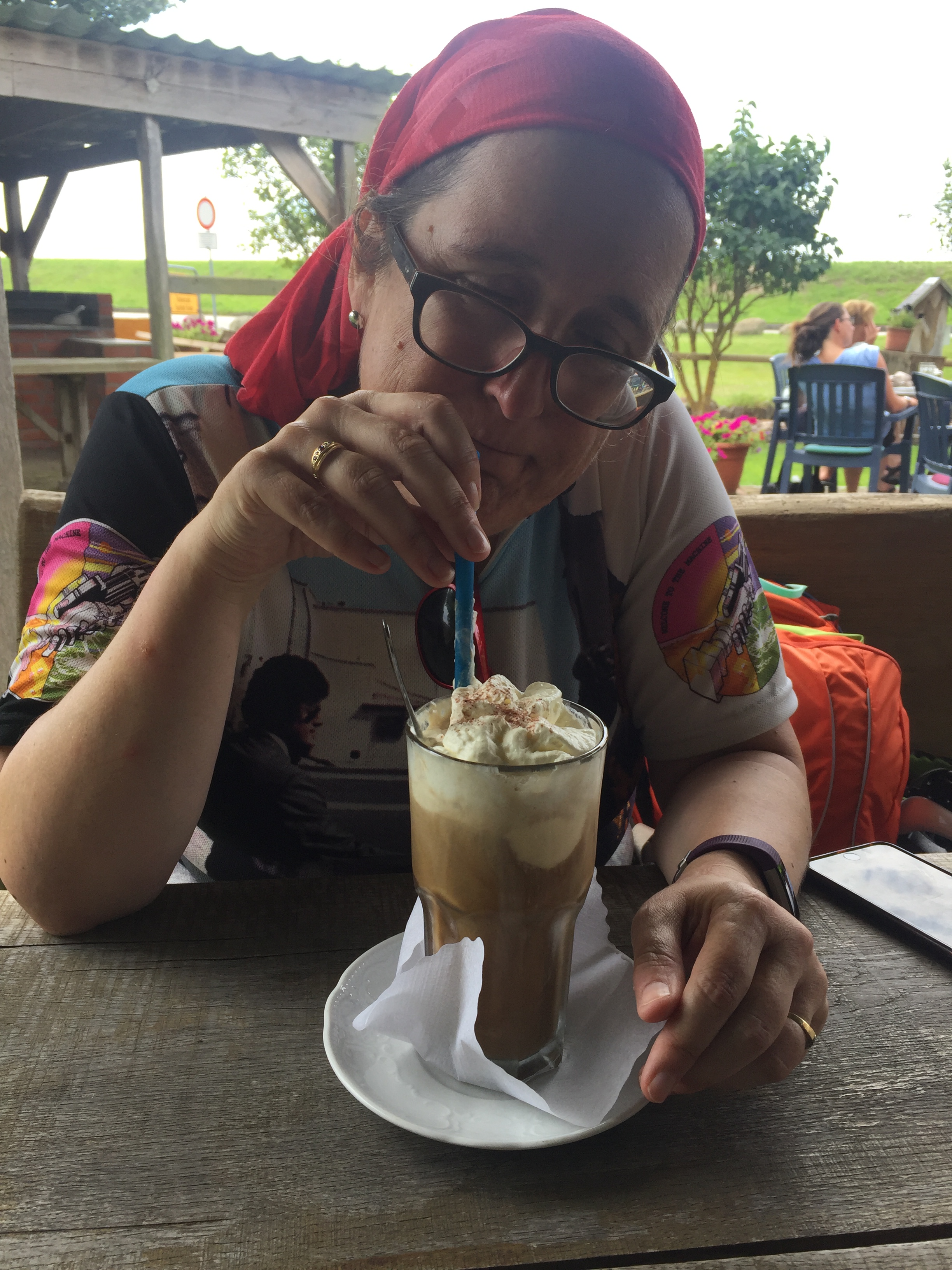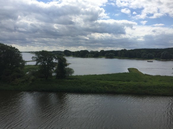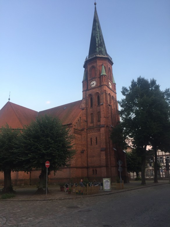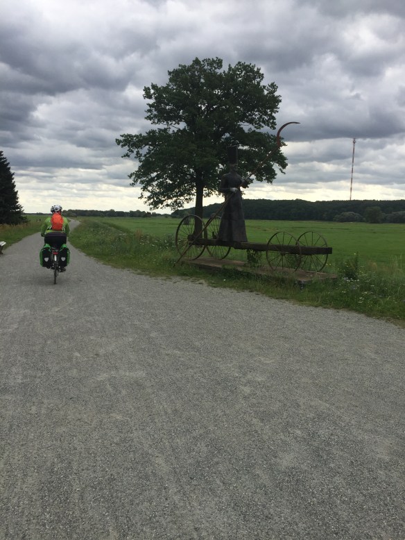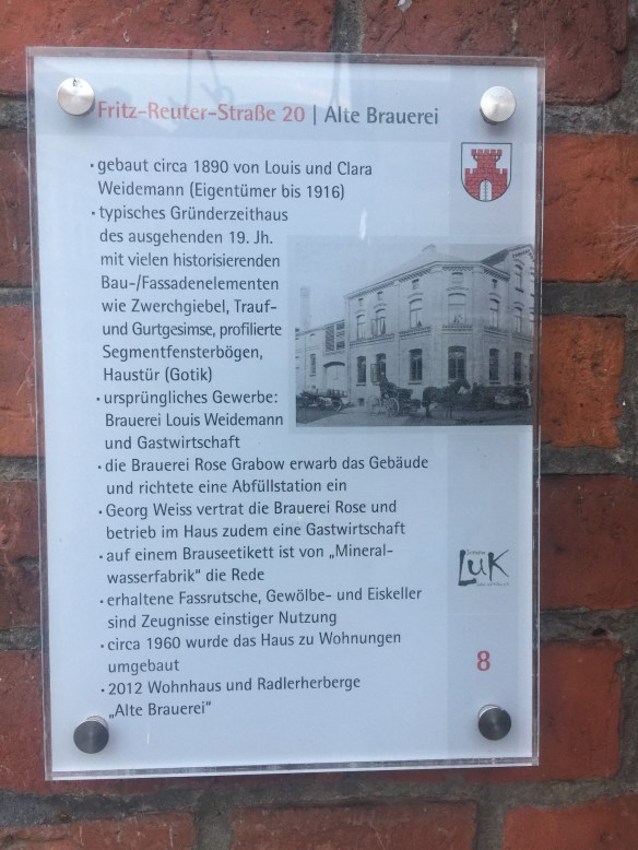 So it appears we cycled from Blekede to Dömitz, where we found a B&B in an old brewery. The proprietress works in a refugee centre, if I understood her correctly. (She has very good English, but I have very poor braincells.) She runs a welcoming, highly eclectic place, but it has enough power points even for me. Also, breakfast includes automatic eggs and coffee.