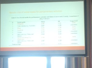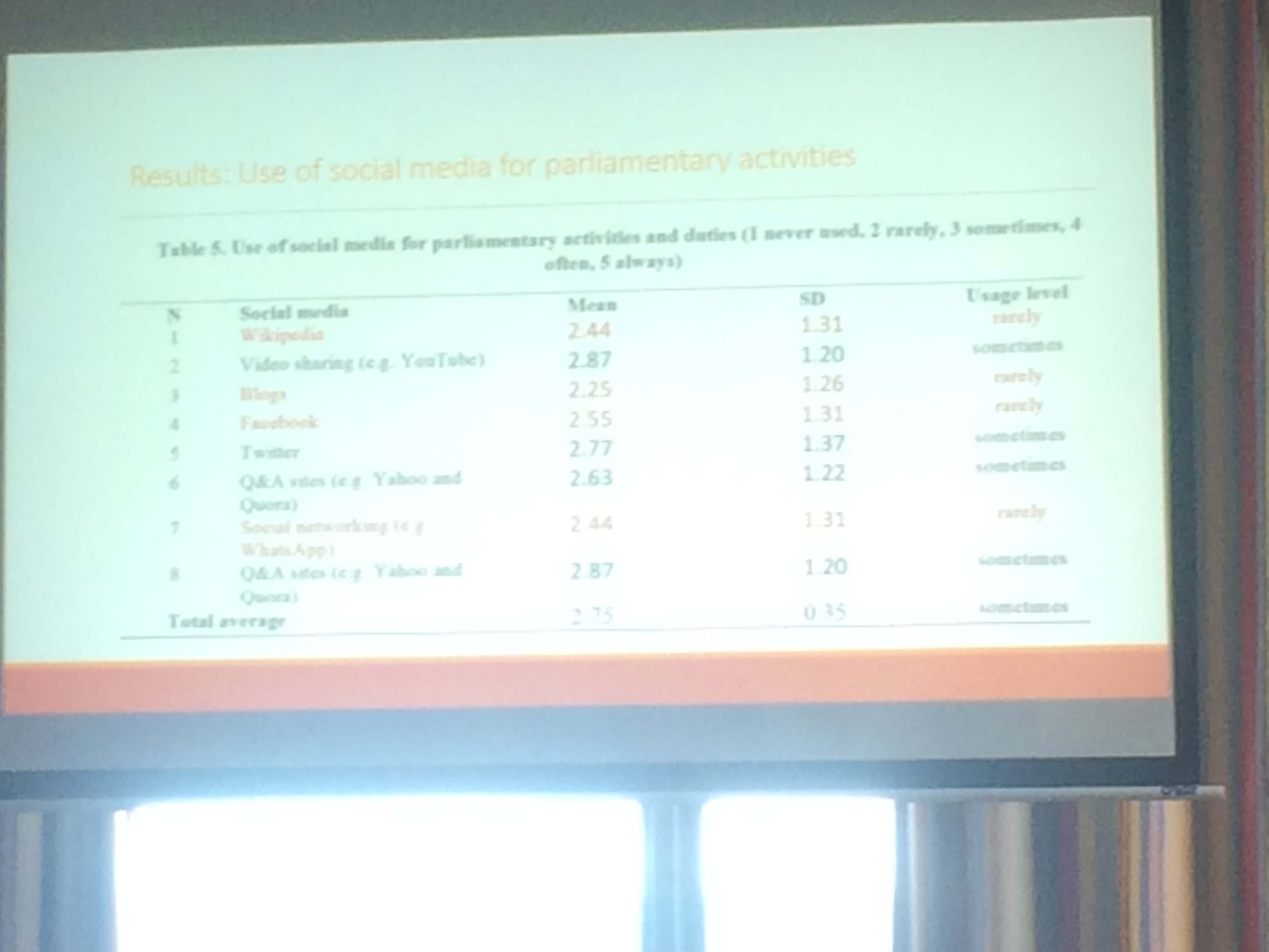 In a session on IL and democracy, some research into Parliamentarians’ Perceptions and Utilization of Information in the Social Media Environment showing similarities between Omani parliamentarians and Scottish community councillors. The former rarely use social/digital. Both populations seem to be more educated than their countries’ averages.