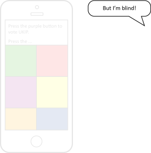 This section is not meant to be exhaustive, nor is it meant to imply that there aren’t already recognised methods to create ‘disability-friendly’ systems. Indeed, it is my fervent hope that, if e-voting is introduced, standards such as the W3C Accessibility Guidelines and the Scottish Government’s Digital First Service Standard would prevent the horrors I try to illustrate below. However this section is simply meant to show what might happen with insufficient care.