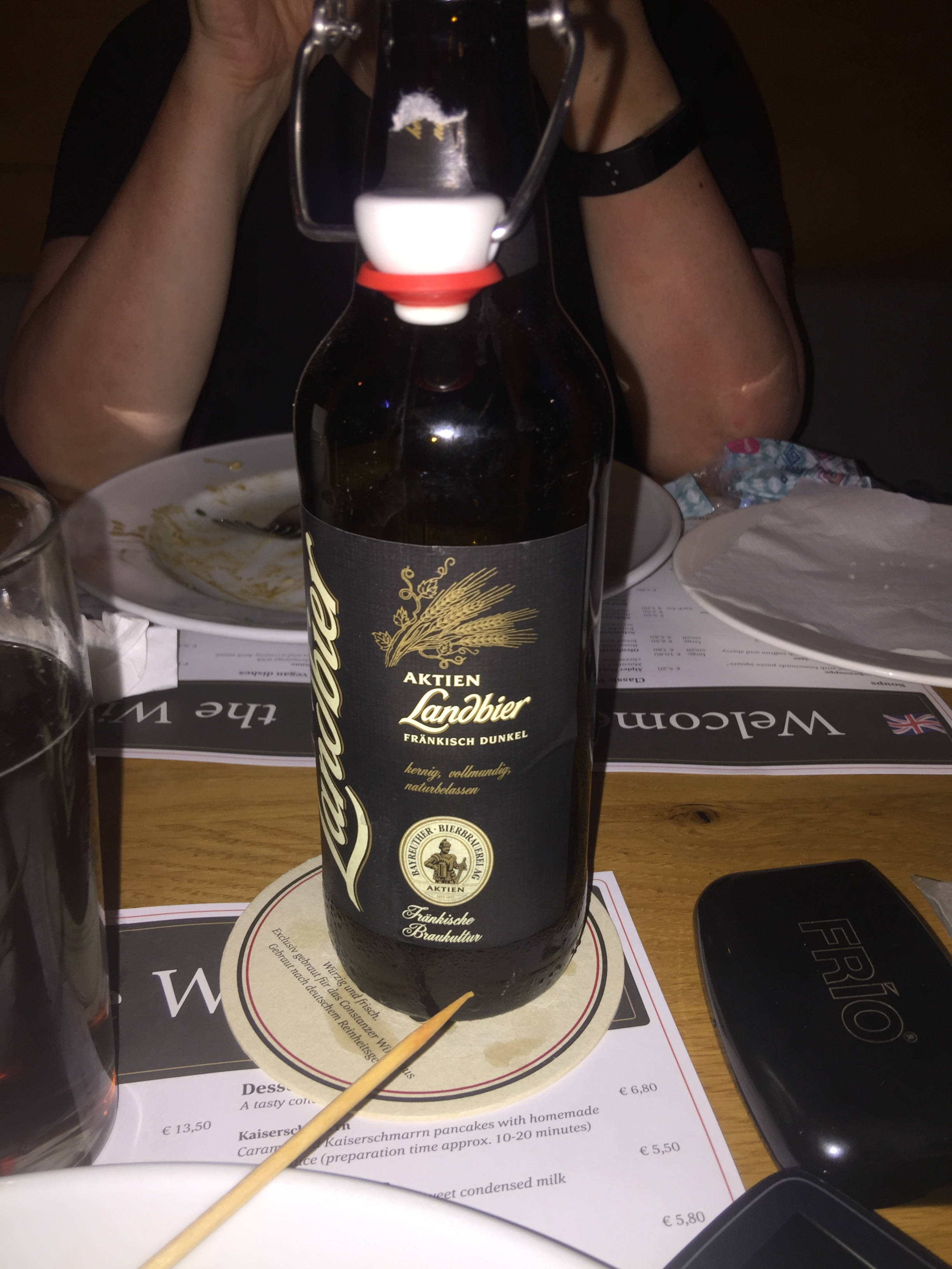- best beer: Aktien Landbier Fränkischer Dunkel. Almost as good as König Ludwig Dunkel