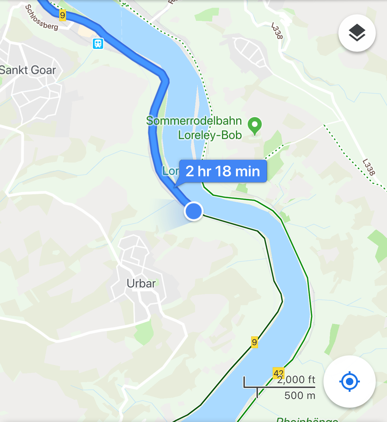 - distance cycled: 67.2 miles (Mainz to north of Koblenz)