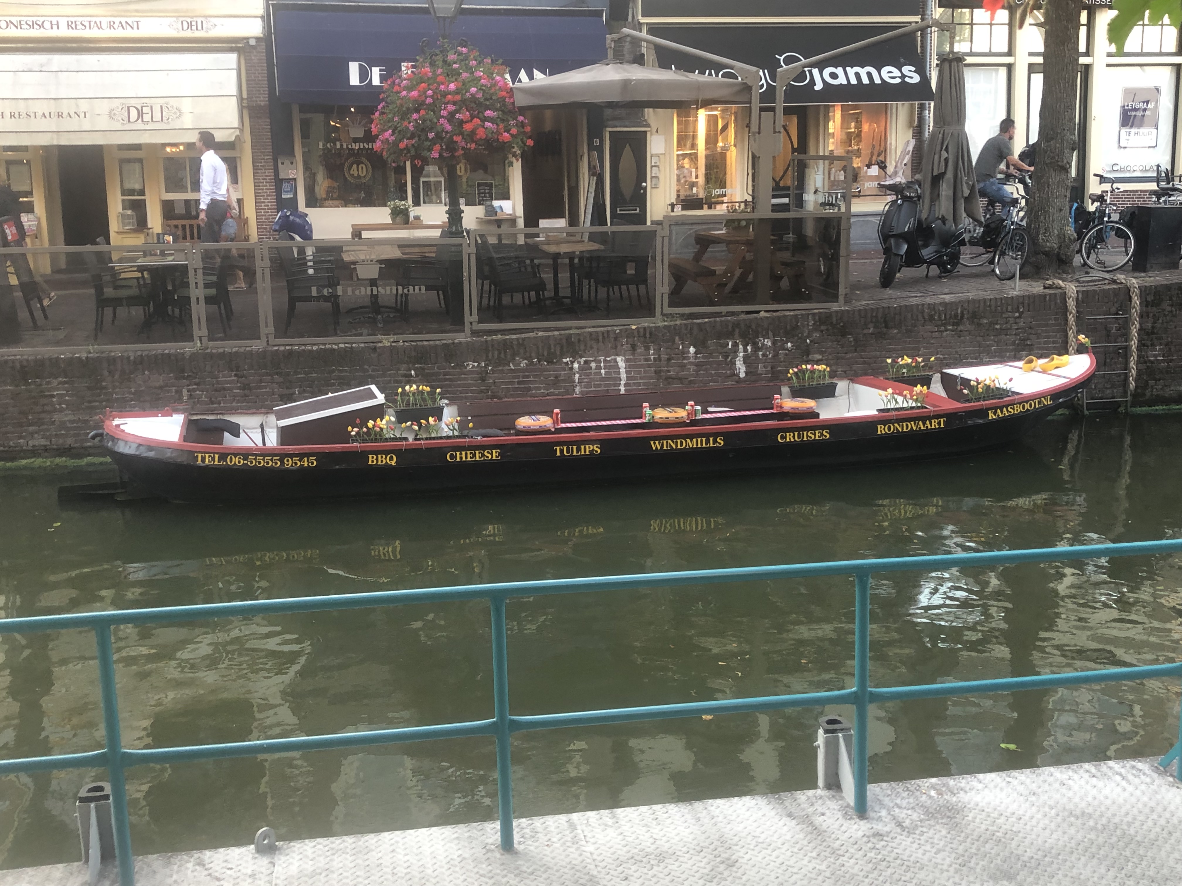 So where are we saying hello from? Well the canal is called Voordam, and we are in the main square next to an about-to-close cheese museum. So that’s a thing to do tomorrow, as is returning to this square tomorrow morning because there will be a cheese market. Personally, I am looking forward to miles of tarmac at my admittedly slow pace. However, I am currently not wearing Lycra, just sitting and enjoying.