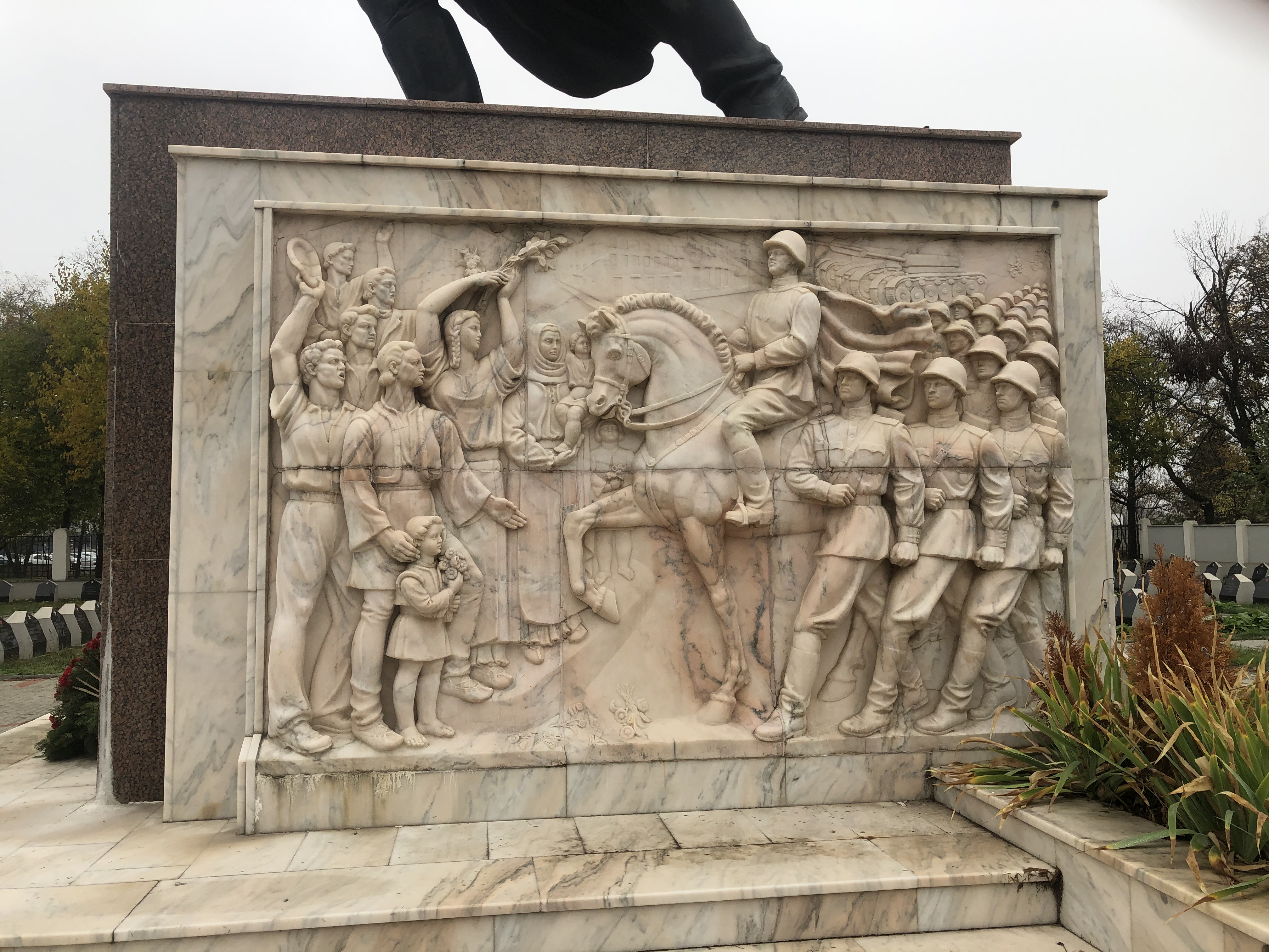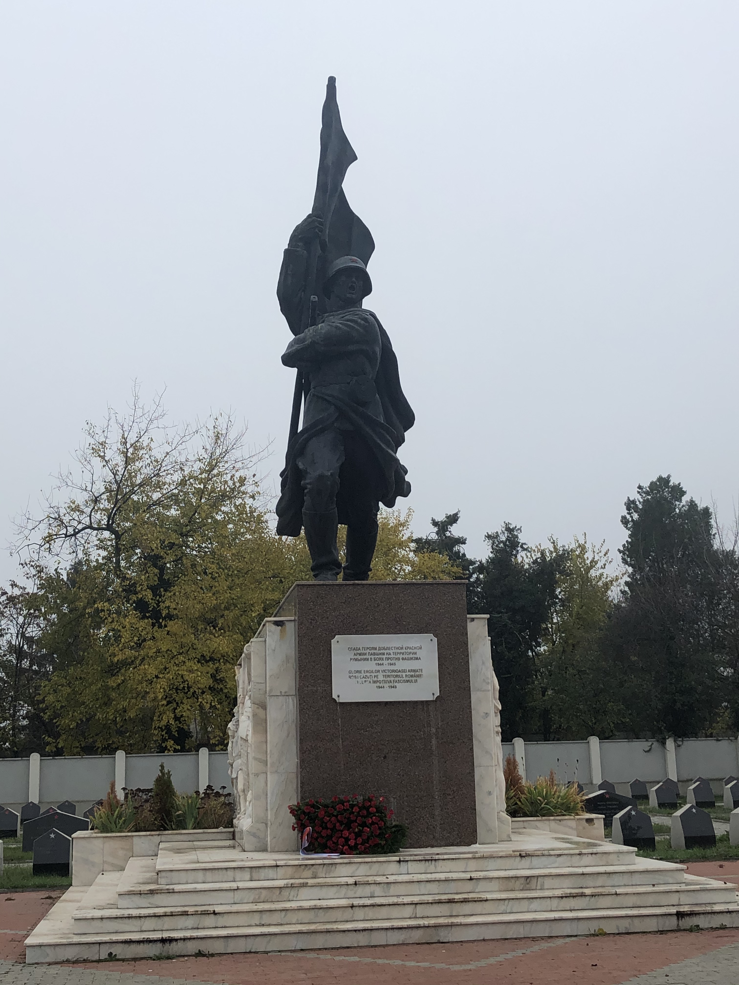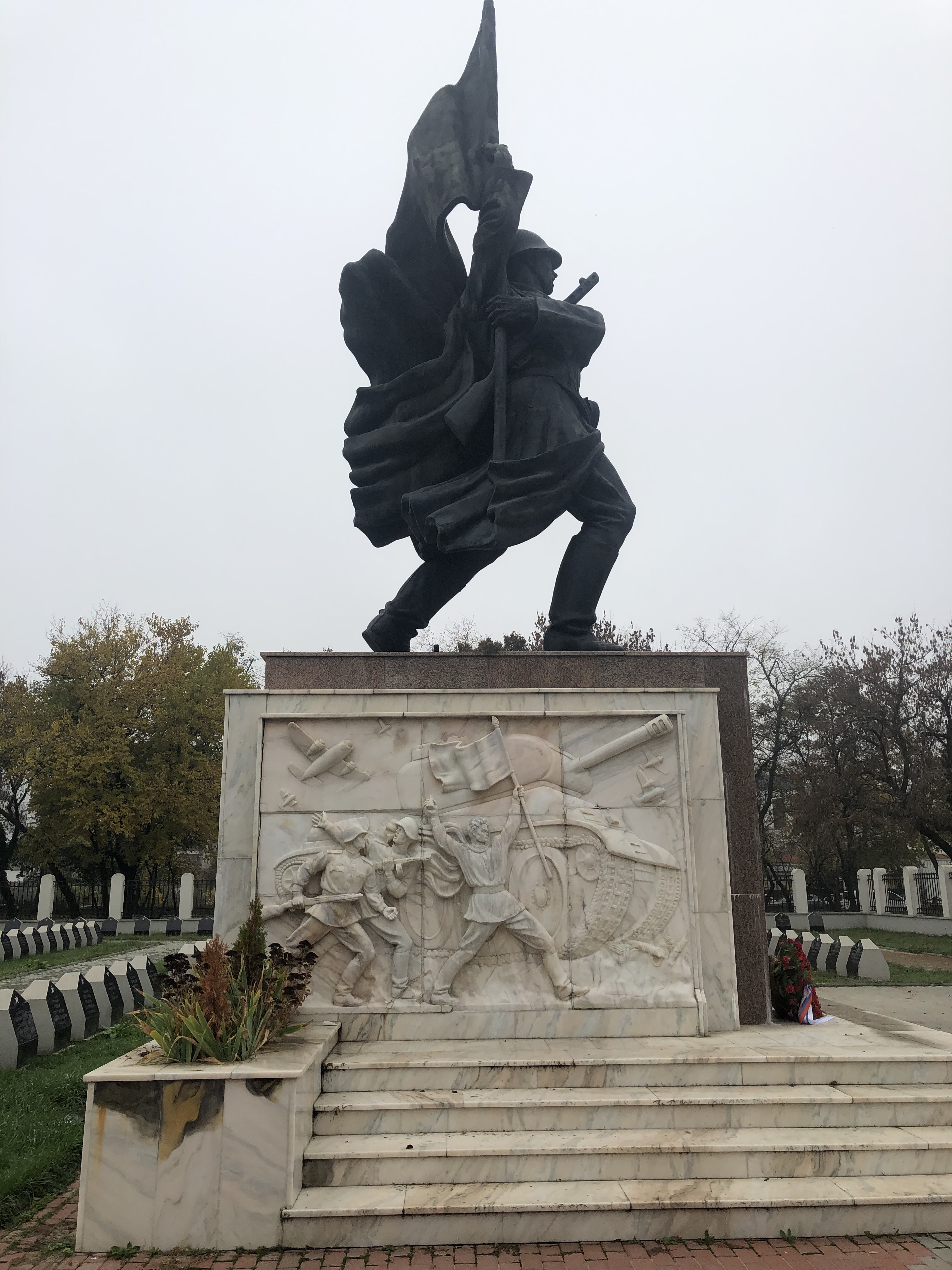 Our meander towards Casa Ceaușescu took us past Cimitirul Eroii Sovietici. At first, it appeared we were locked out, but a rather bored-looking attendant indicated a gate was open and that, contrary to warnings on the internet, we didn’t need a permit from the Russian embassy to come in. The central statue was a bit overblown: