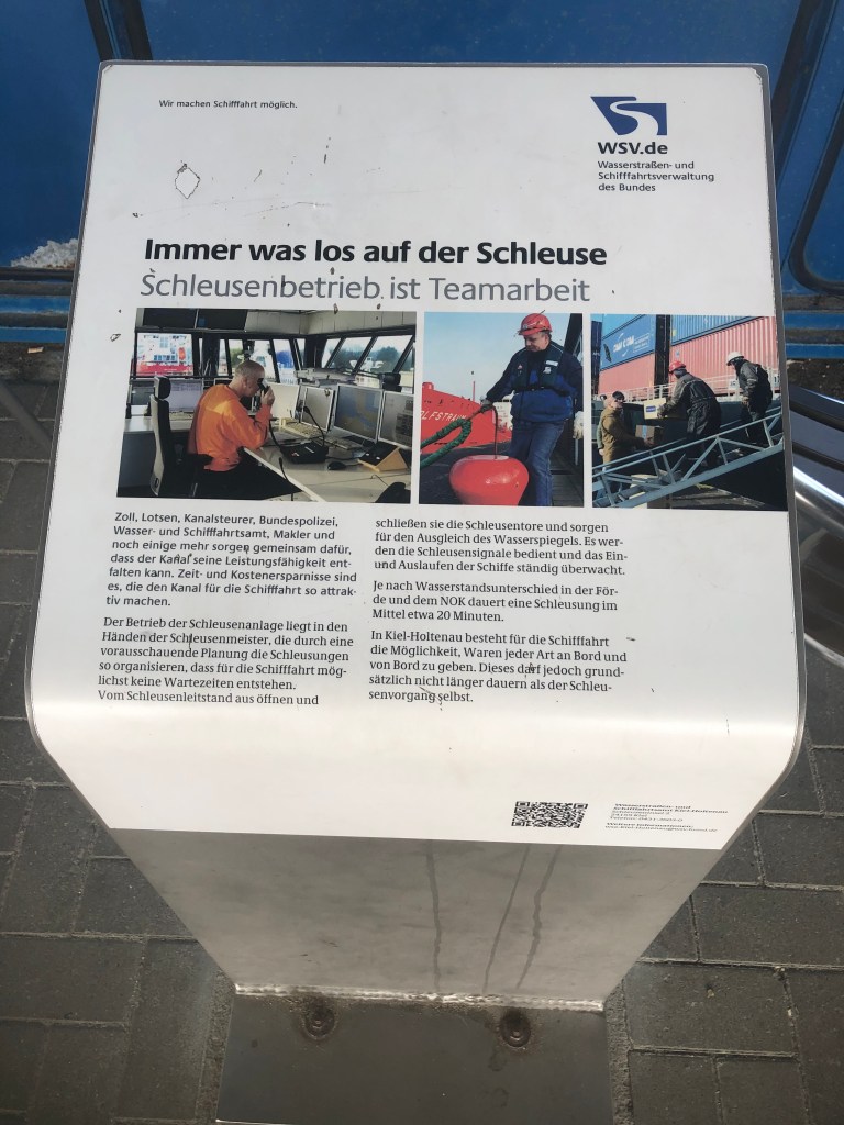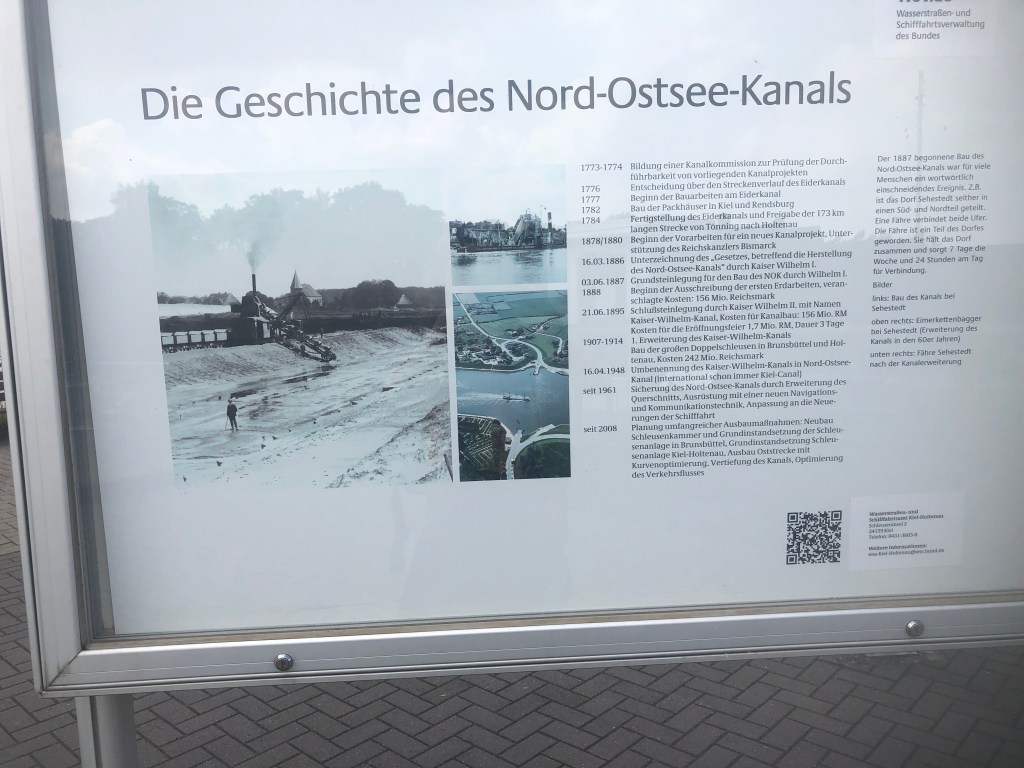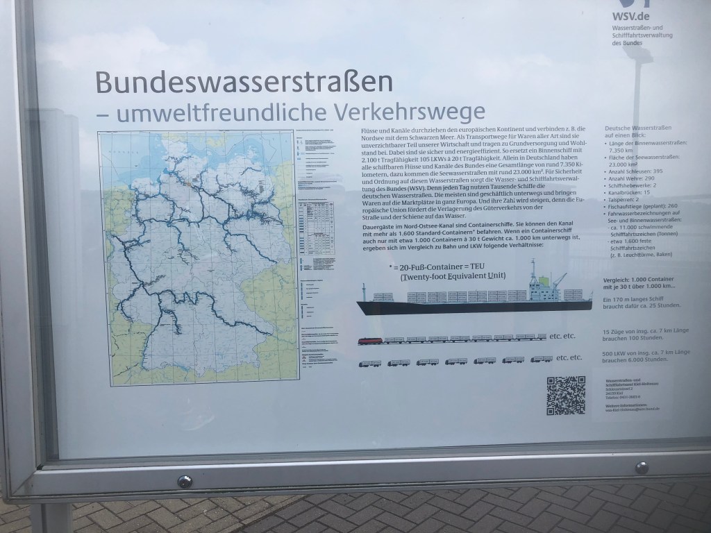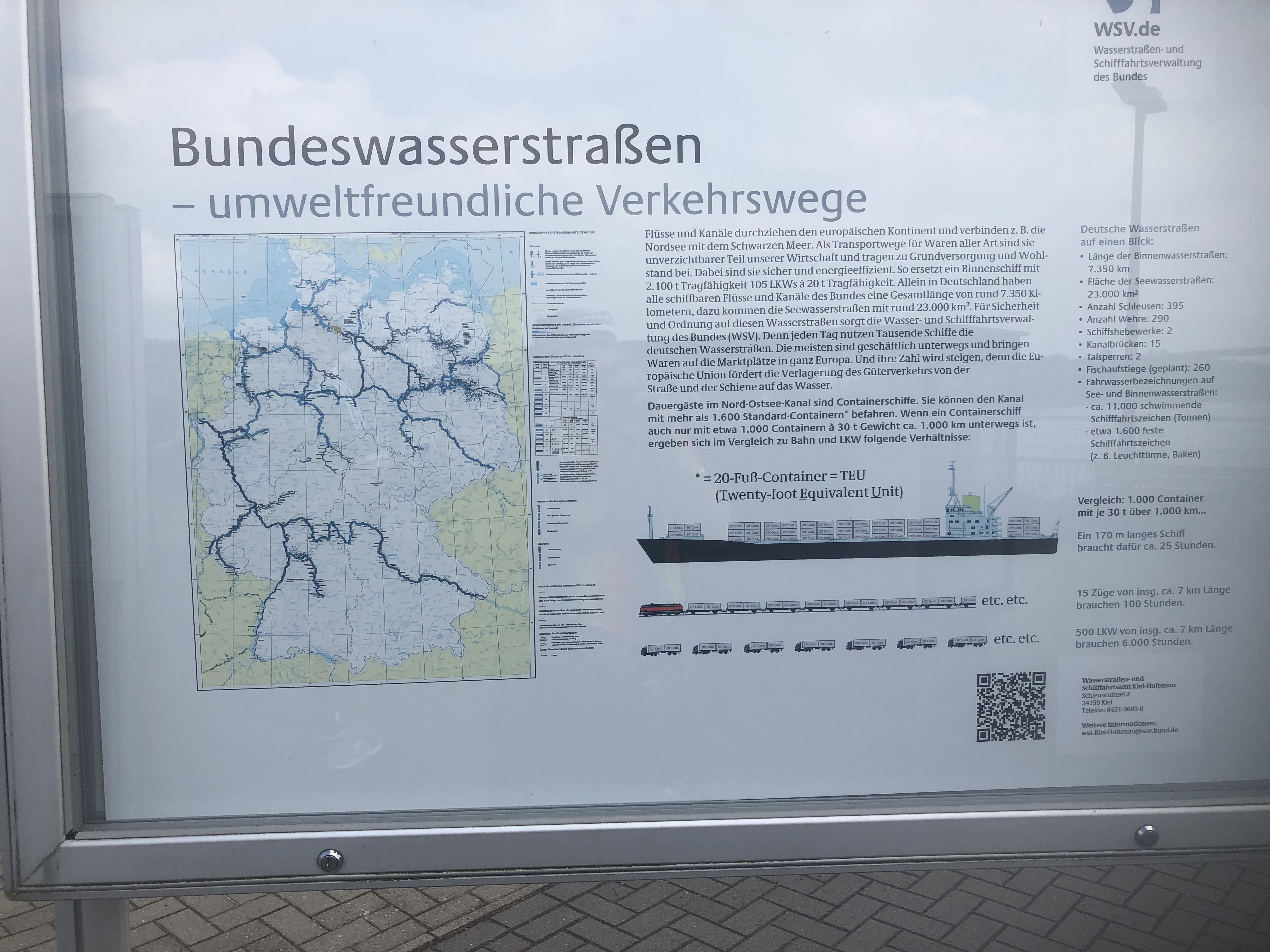 Our 9-euro train tickets were also valid on local buses, making the journey to the mouth of the Nordosrseekanal much easier than cycling in the sweltering heat. I’ll leave you to translate the information boards. The photo of a random woman is because she asked to take a photo of me, so I asked her to reciprocate. We didn’t exchange contact details or even names. Hmmm – am I afflicted by classic English British reserve?