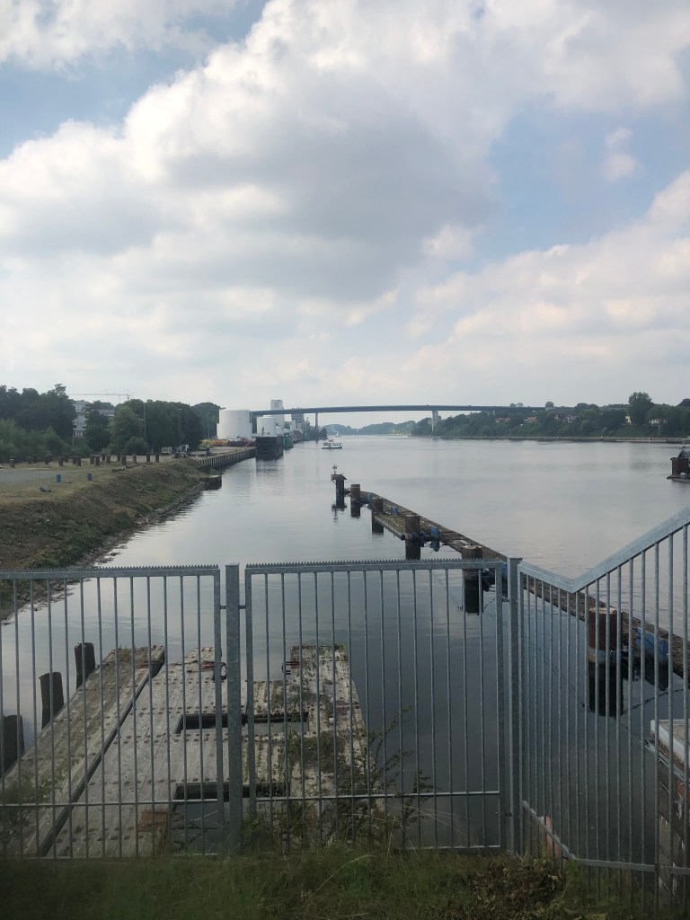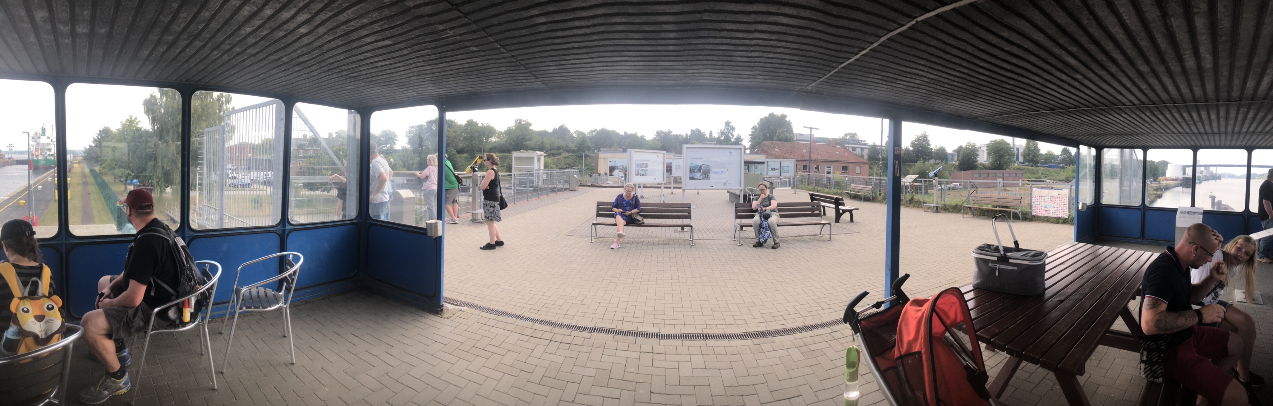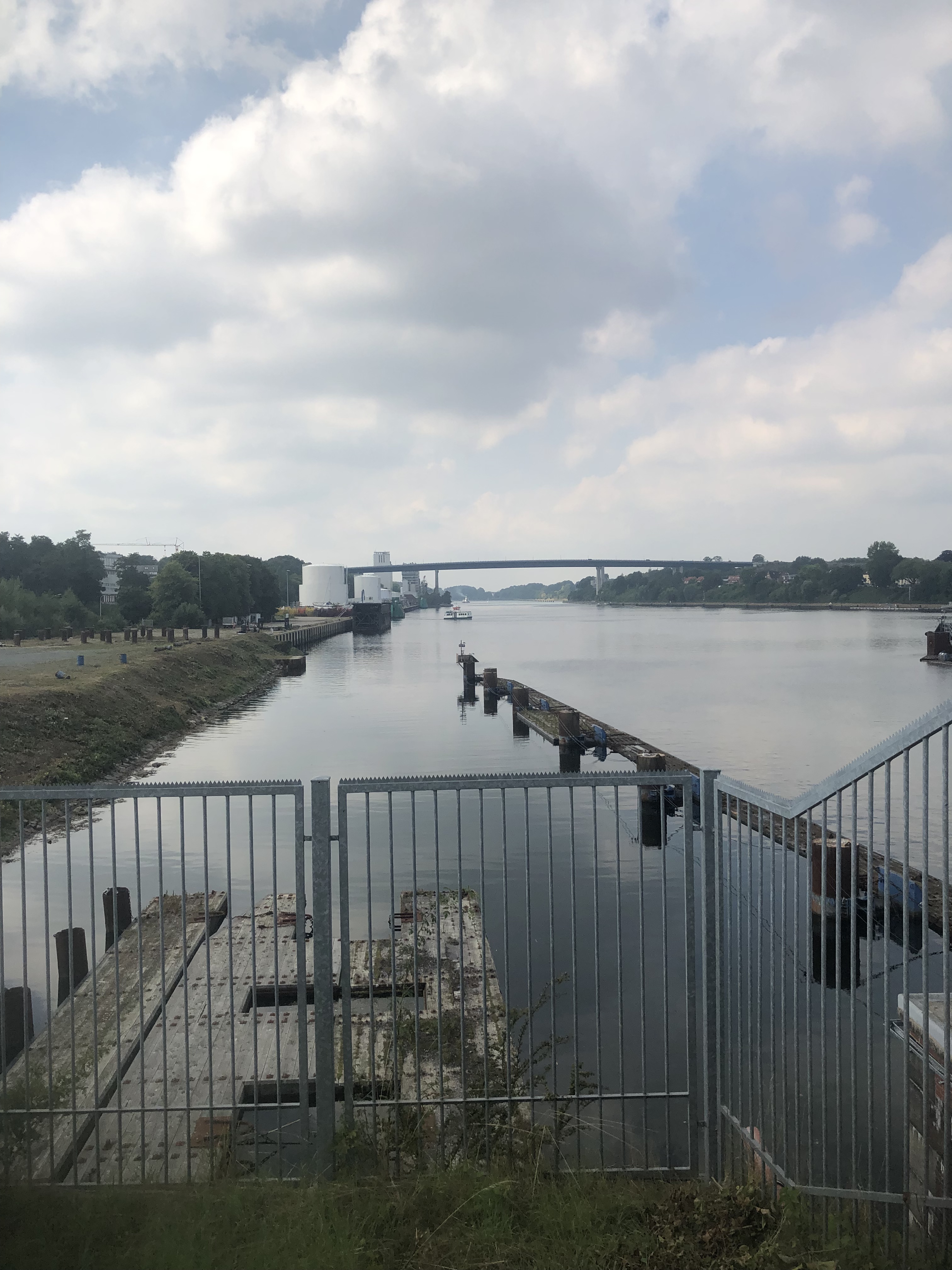 Our 9-euro train tickets were also valid on local buses, making the journey to the mouth of the Nordosrseekanal much easier than cycling in the sweltering heat. I’ll leave you to translate the information boards. The photo of a random woman is because she asked to take a photo of me, so I asked her to reciprocate. We didn’t exchange contact details or even names. Hmmm – am I afflicted by classic English British reserve?