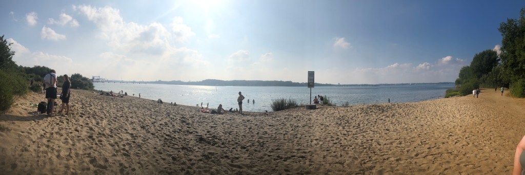 More buses then took us to Strand Hasselfelde, a small but quite popular beach on the east bank of the Förde. The water was quite warm, but salty – I didn’t stay in for long, just enough to say I have swum.