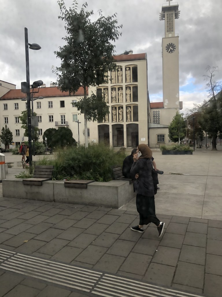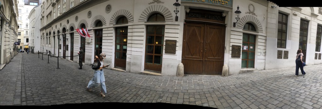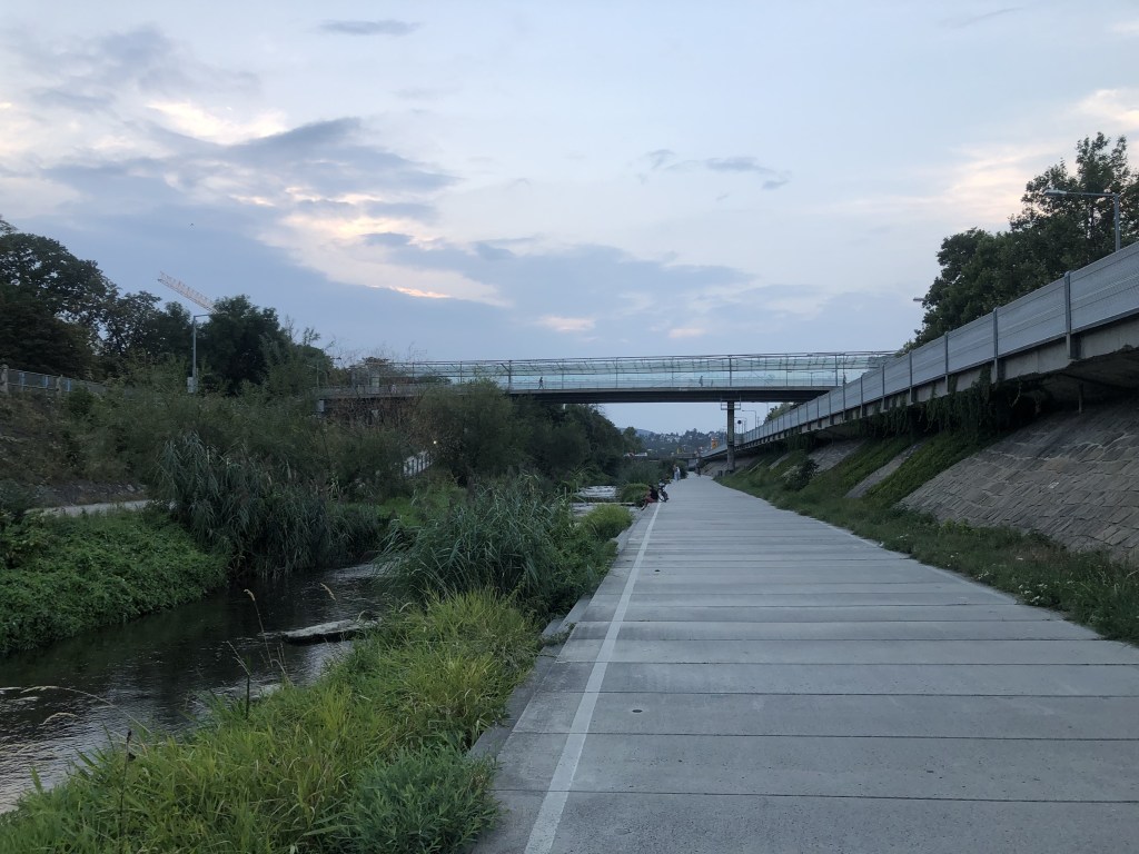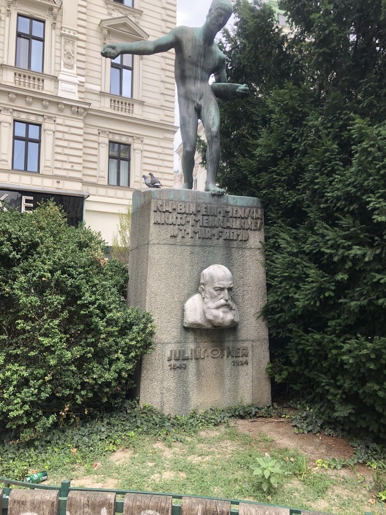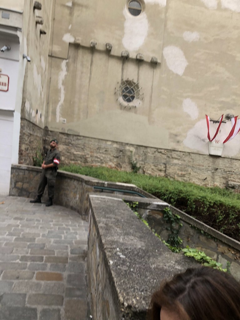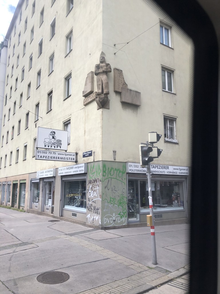 So we went to the IKG head office in the city centre. This was guarded by soldiers, and again we couldn’t get in without an appointment. However, there was a website with an email address, so I sat and emailed. (I’ve not yet received a reply.) So we abandoned this, and took trams around the Ringstrasse, along with a diversion to Friedrich-Engels-Platz. I remain fascinated by Red Vienna, and its fall to the Austrofascists – and then to the ‘bohemian’ corporal. After this, Elly returned to our hotel, while I went to see the Wienfluss Elly to hotel, Bruce as fa as I could go by U-Bahn up the Wienfluß. (I’d still like to go to the source, and see the river in sping-spate.)