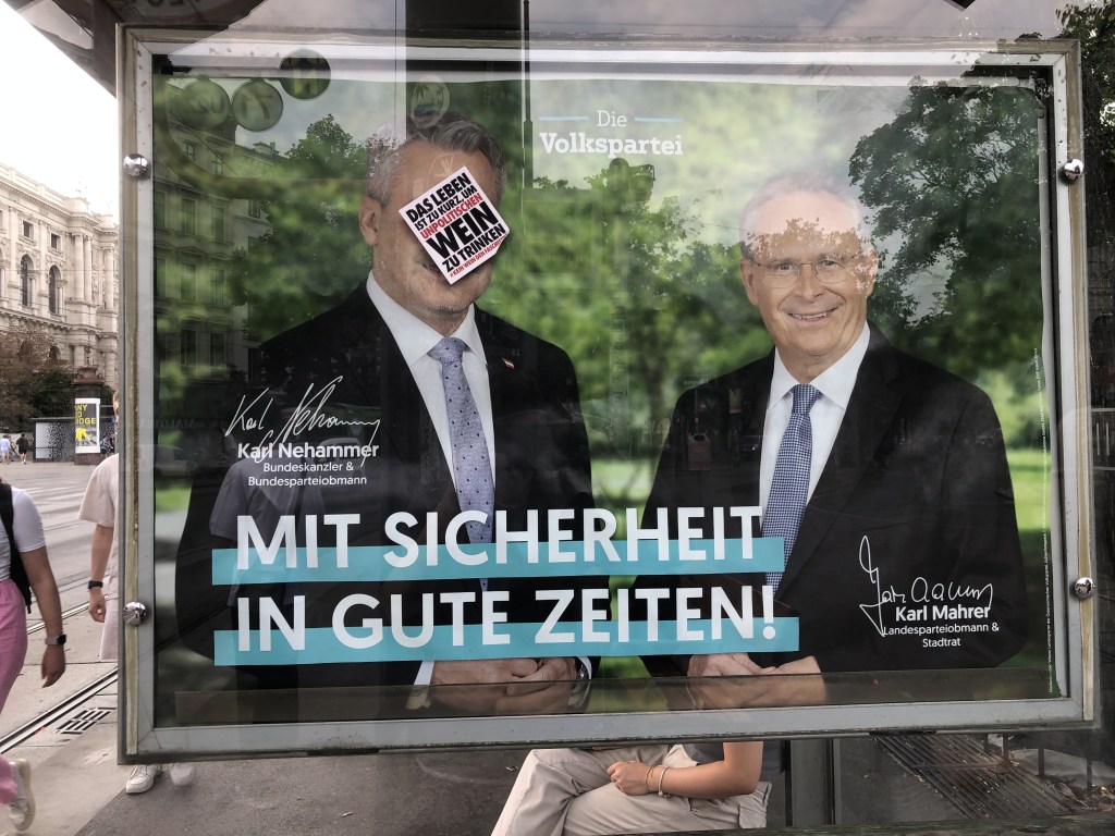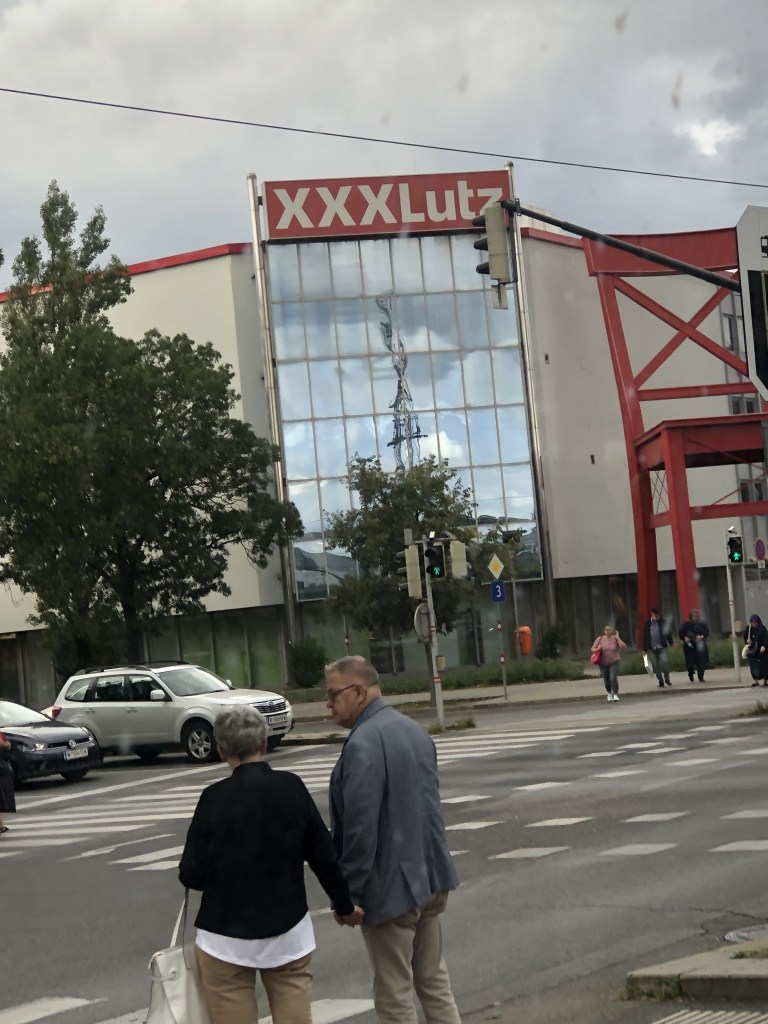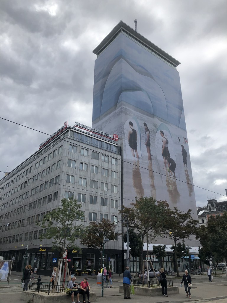 I got a swim today, but it was in the outdoor Krapfenwaldbad, so very cold and hence not very long. We had lunch at a very posh restaurant at Cobenzl, and then went back to the city centre to visit the Haus der Geschichte Österreich. I like a museum that makes you think, and asks questions of itself.