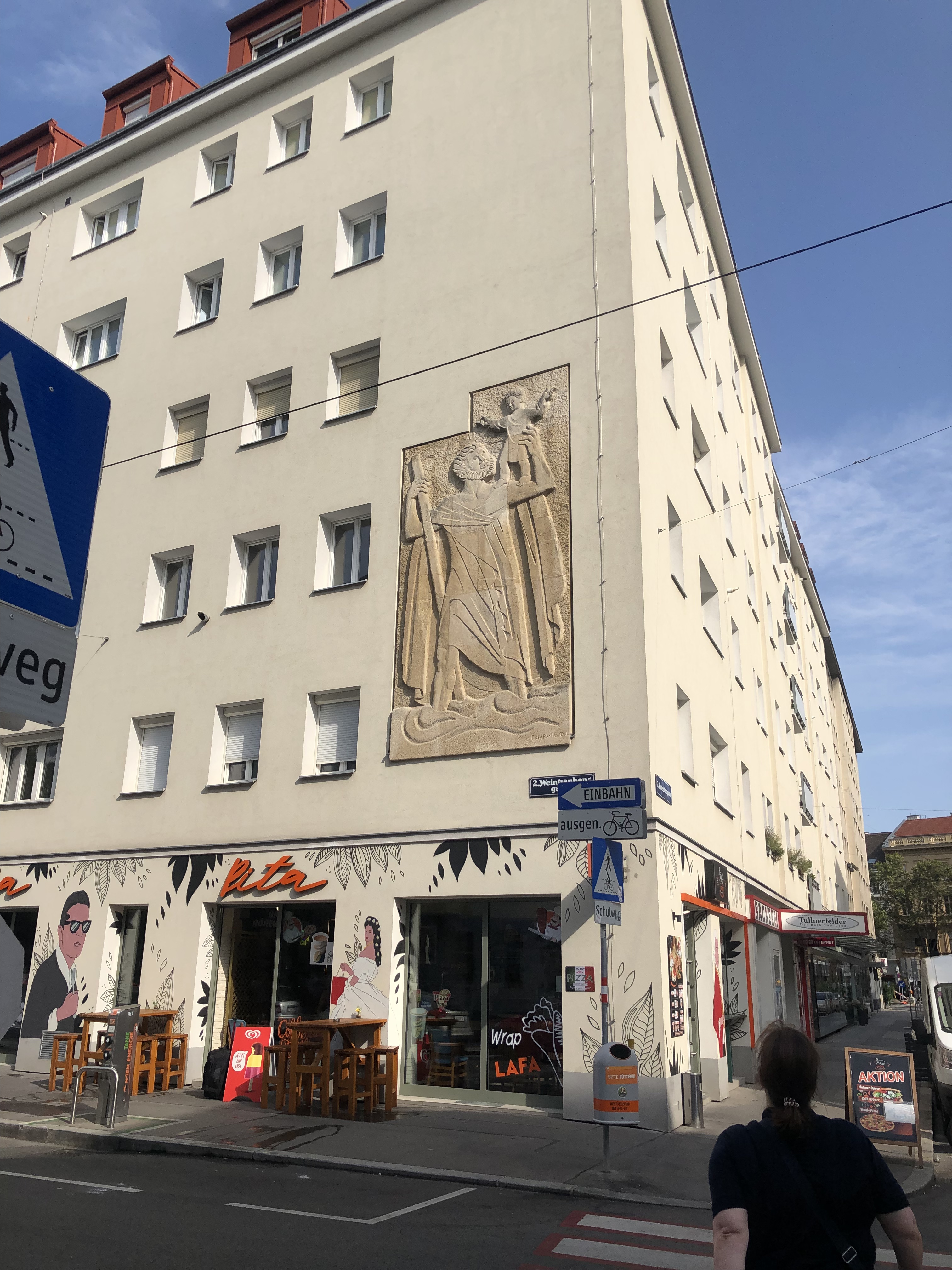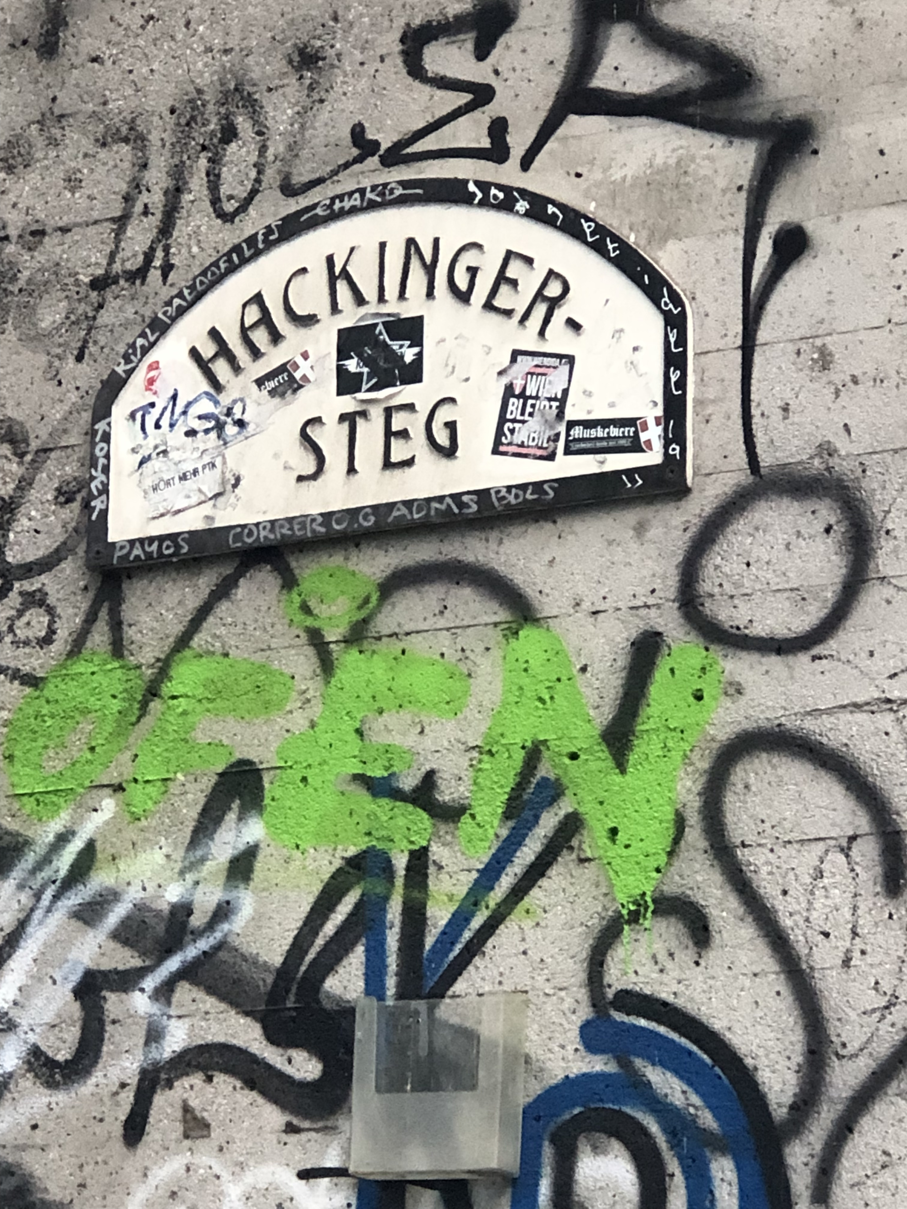 So we went to the IKG head office in the city centre. This was guarded by soldiers, and again we couldn’t get in without an appointment. However, there was a website with an email address, so I sat and emailed. (I’ve not yet received a reply.) So we abandoned this, and took trams around the Ringstrasse, along with a diversion to Friedrich-Engels-Platz. I remain fascinated by Red Vienna, and its fall to the Austrofascists – and then to the ‘bohemian’ corporal. After this, Elly returned to our hotel, while I went to see the Wienfluss Elly to hotel, Bruce as fa as I could go by U-Bahn up the Wienfluß. (I’d still like to go to the source, and see the river in sping-spate.)