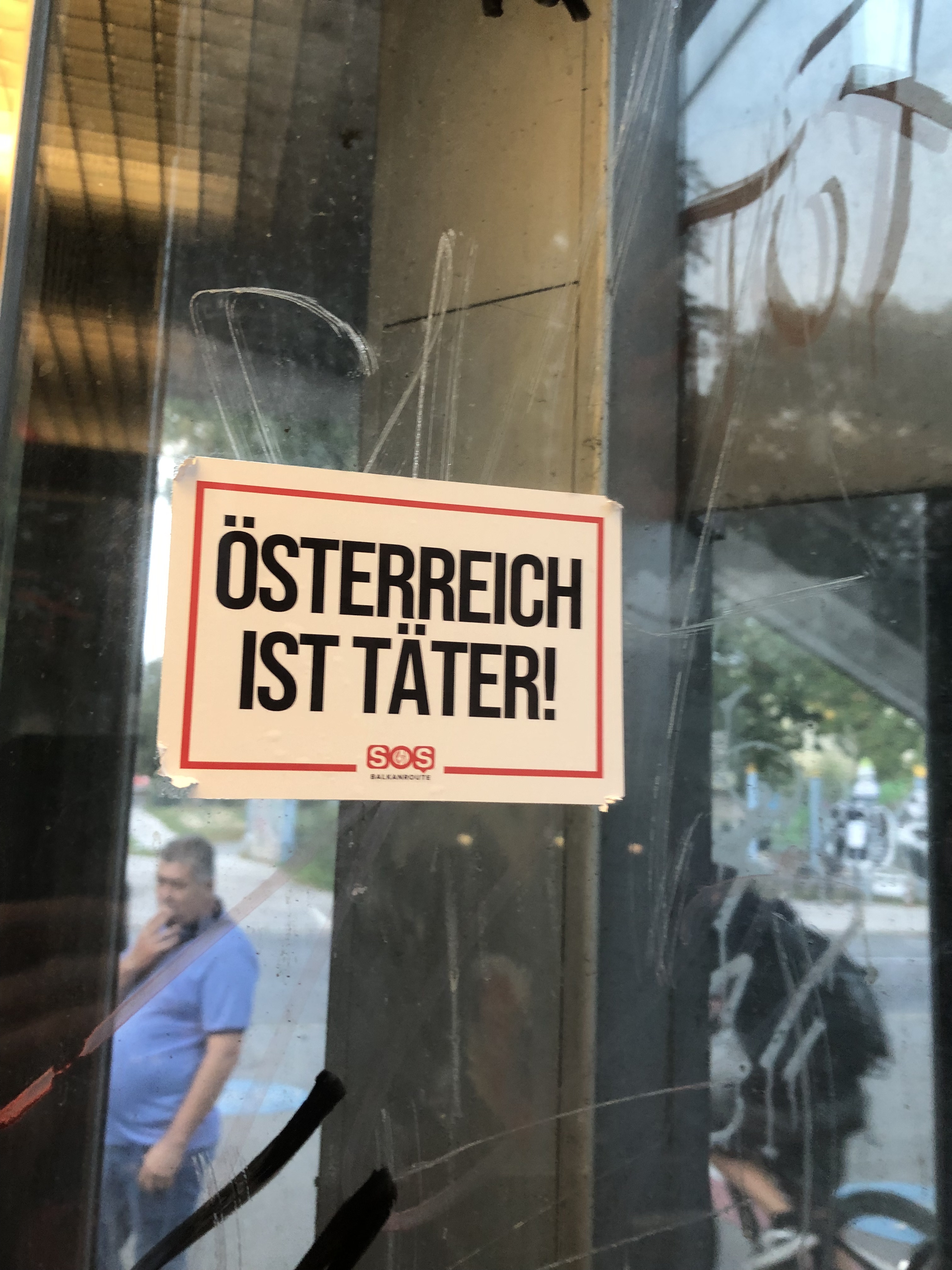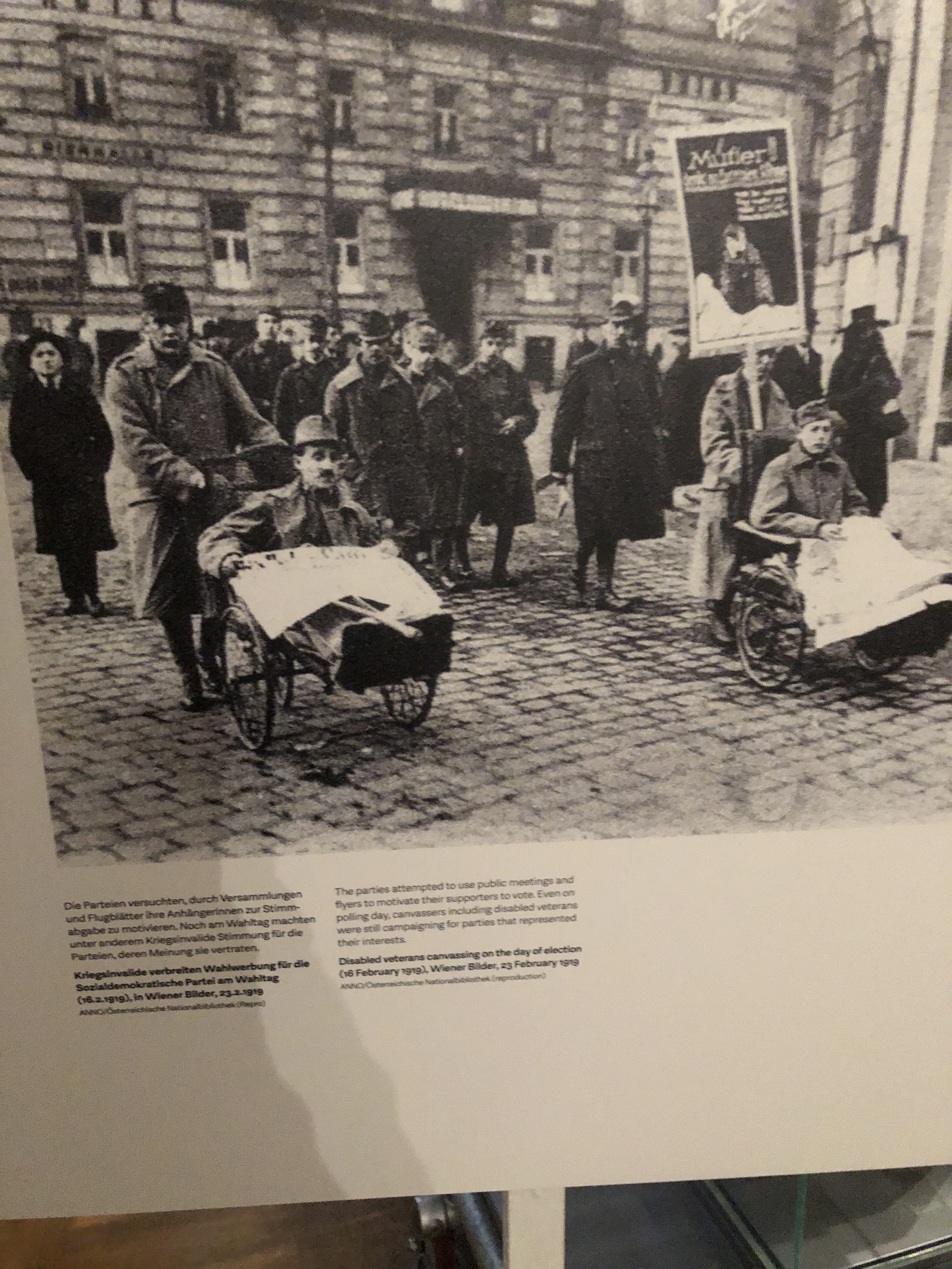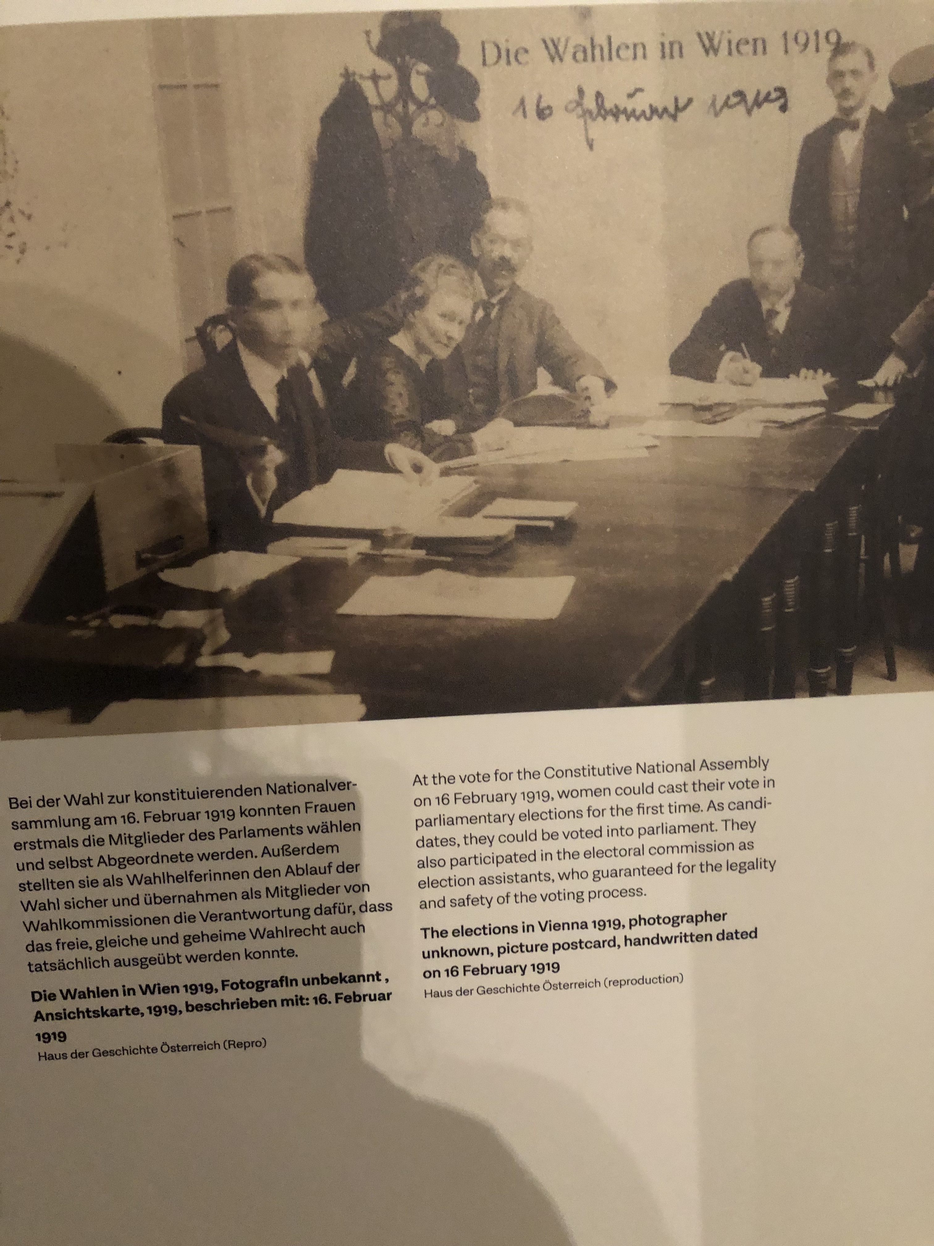 I got a swim today, but it was in the outdoor Krapfenwaldbad, so very cold and hence not very long. We had lunch at a very posh restaurant at Cobenzl, and then went back to the city centre to visit the Haus der Geschichte Österreich. I like a museum that makes you think, and asks questions of itself.