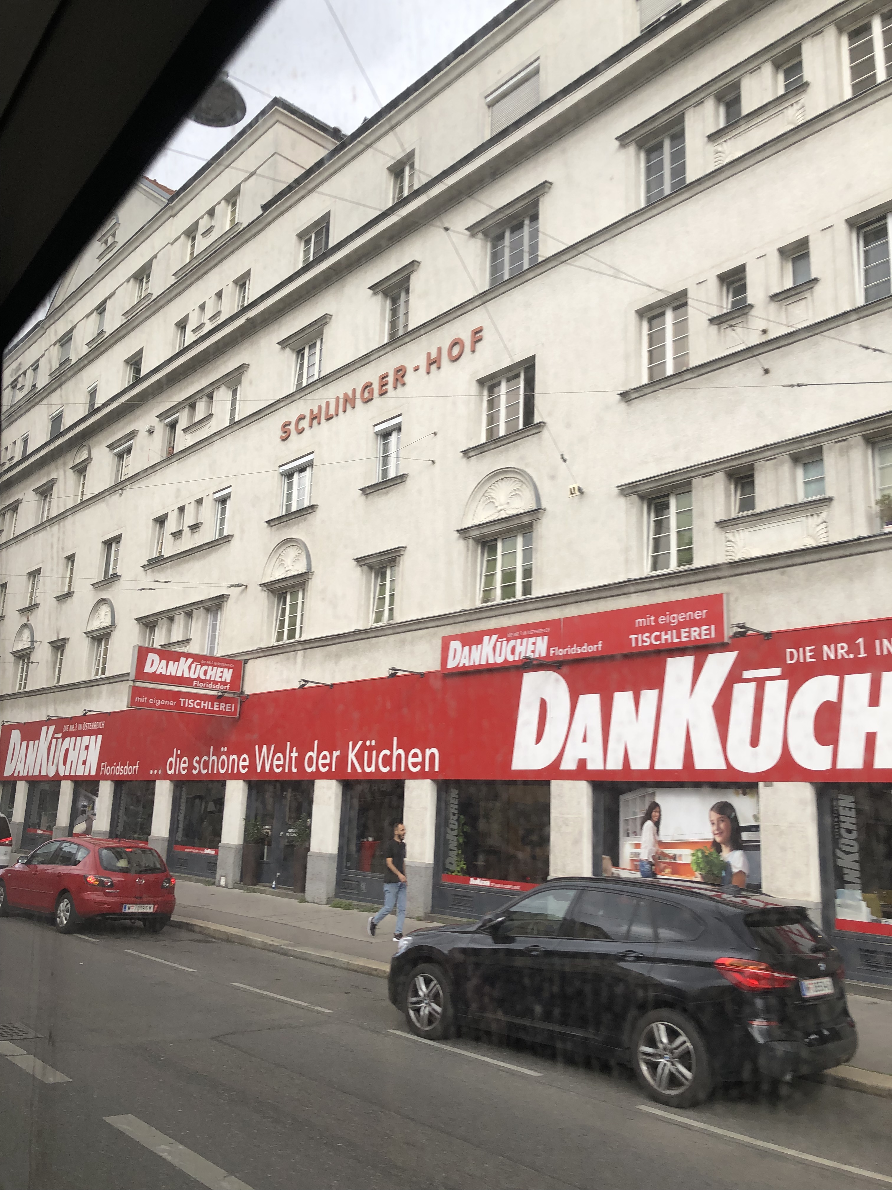 By now it was time for laundry, and there is no Eco-Express Waschsalon in Vienna! But there is Green and Clean, which is even better. (One advantage is that the machines automatically add Waschpulver, so the place is less messy. You can also control the machines with a Handy-app.) For me, it’s interesting that the road is called Schlachthausgasse, not Schlachthofgasse 14. While laundry was whirring, I tried to go for a swim at Stadionbad. Getting there by bus was fine, but finding the entrance wasn’t, and finding where to change was impossible, so I stayed dry. Cyclemeter 2 shows all the wiggles from hotel to washing to not swimming to hotel.