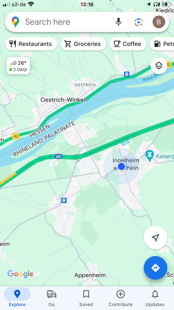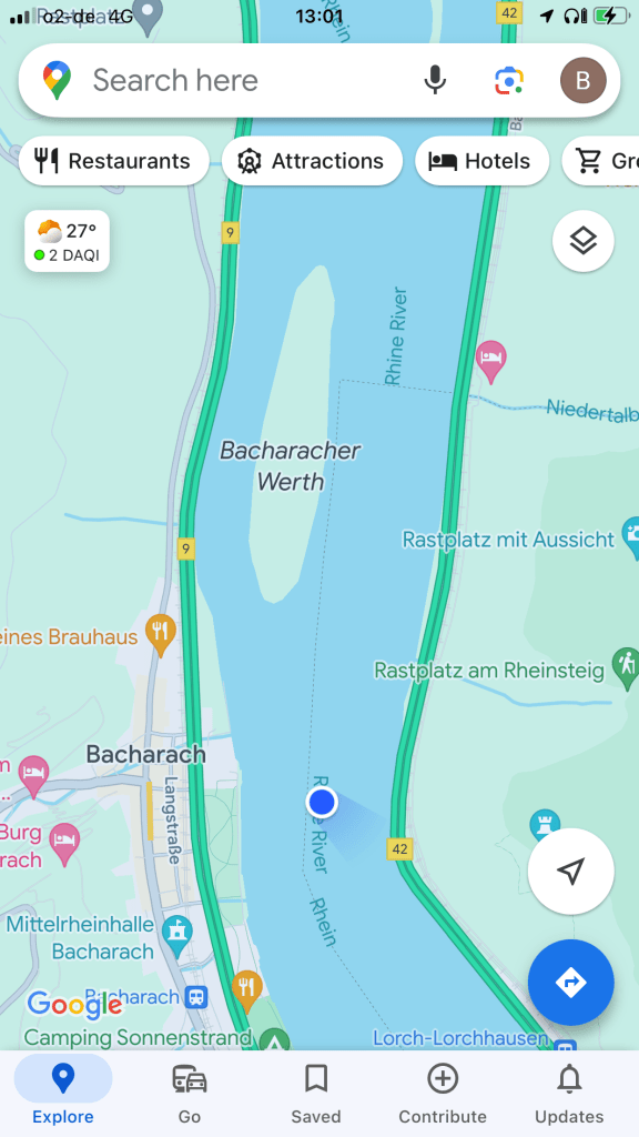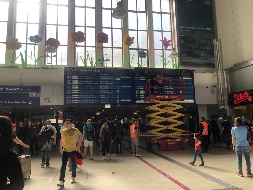 Oh dearie dearie me: I’m beginning to understand why Deutsche Bahn’s reputation is going downhill. I love all the marshalling yards outside even relatively small stations, the bookshops that sell real books, the decent coffee, the various accents along the way. But a 6 1/2 hour journey that got delayed and delayed even more as we travelled: no thanks. Were we caught behind a local chugaboom? Or were we the local chugaboom holding up everyone else? Even cyclometer caught the bug, not mapping at all where we were despite restarting the phone: