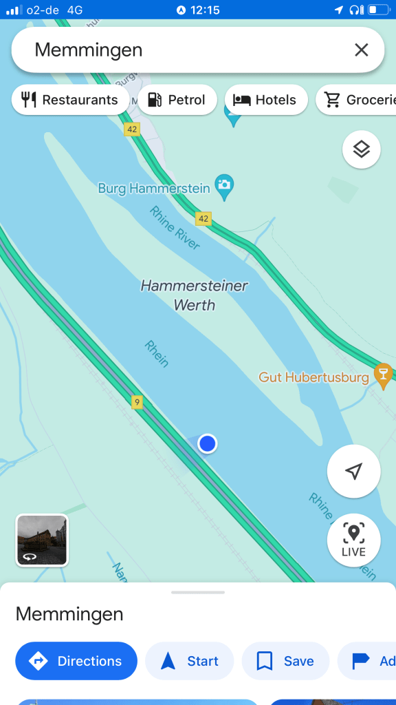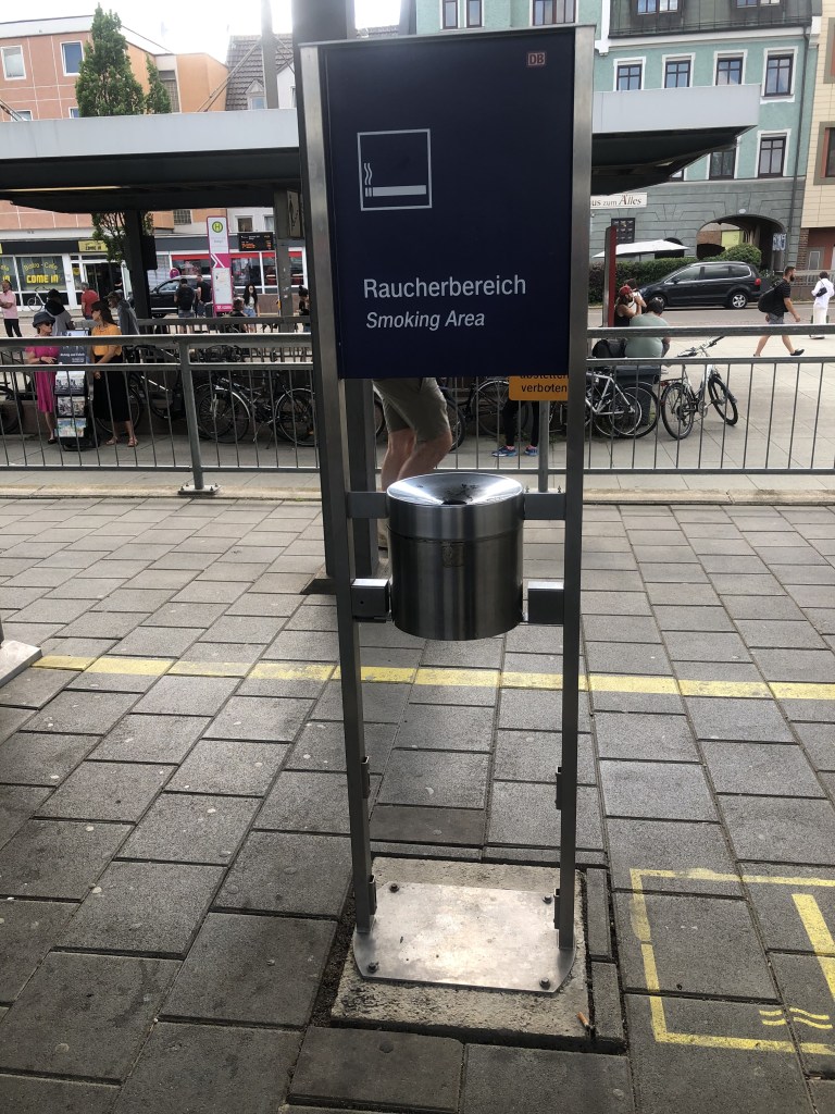 Ok, enough moaning. I loved the scenery along the Rhine, especially as the trainline hugged the gorge between Rheinland-Pfalz and Hesse. I loved all the fun place names. I loved that we were travelling to the Muttiland without flying. I loved that I managed over 6 hours without moaning about my depleted nicotine levels. And I loved that when the train finally stopped in Memmingen, our door was right next to a smoking area on the platform!