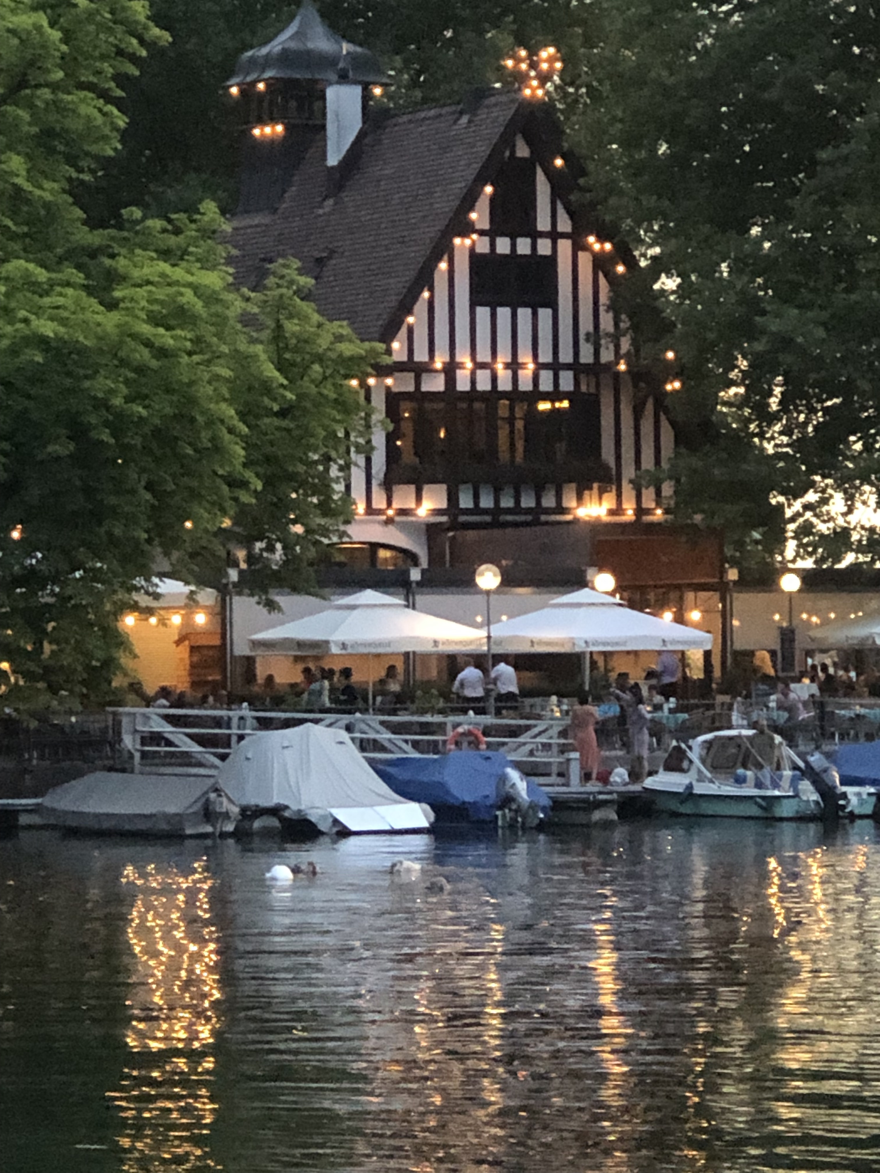 Our hotel is in a building that is being made into hireable small offices. No lifts (and we’re on the 3rd floor) but a very friendly welcome by Rahel. After dumping our stuff, we wandered to Wirtshaus am See to eat (red lentil curry with a spring roll for me, Käsknöple for Elly