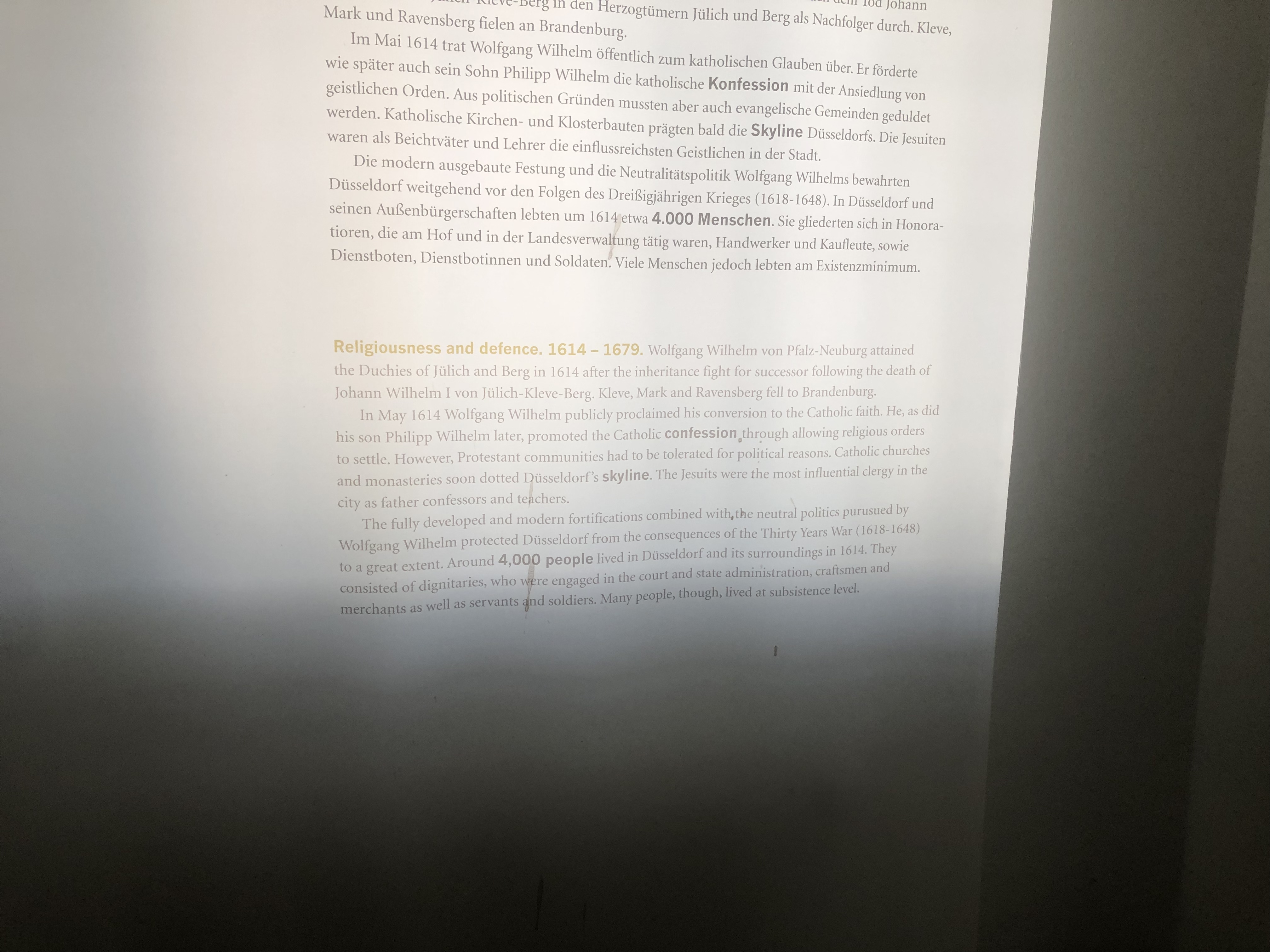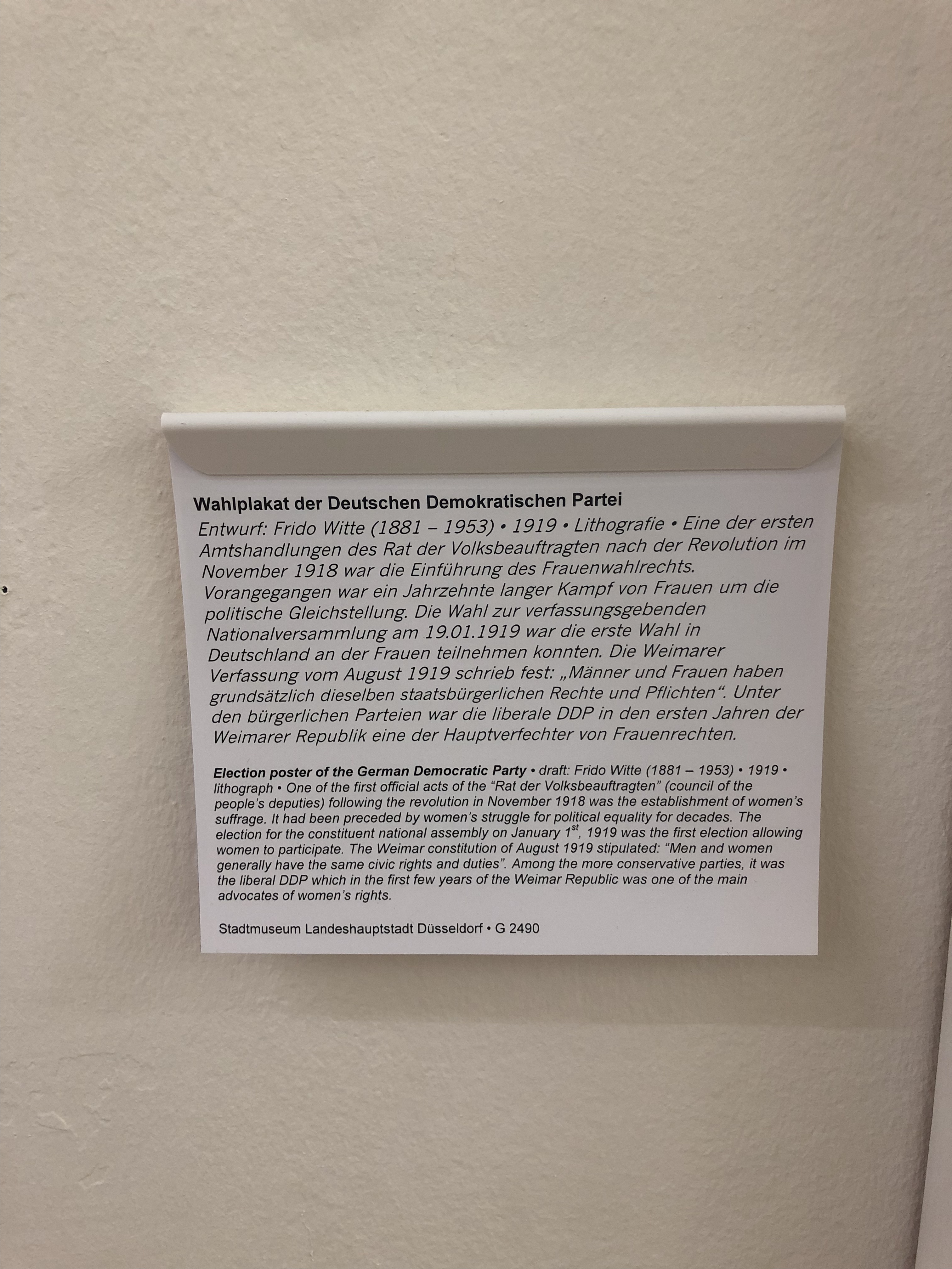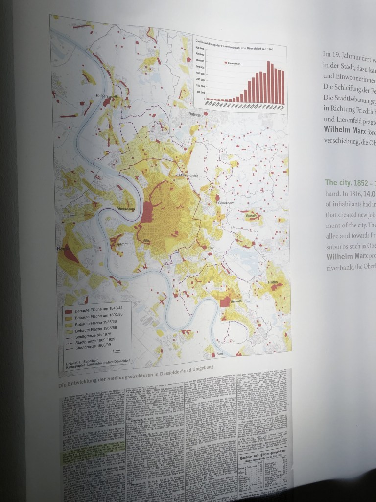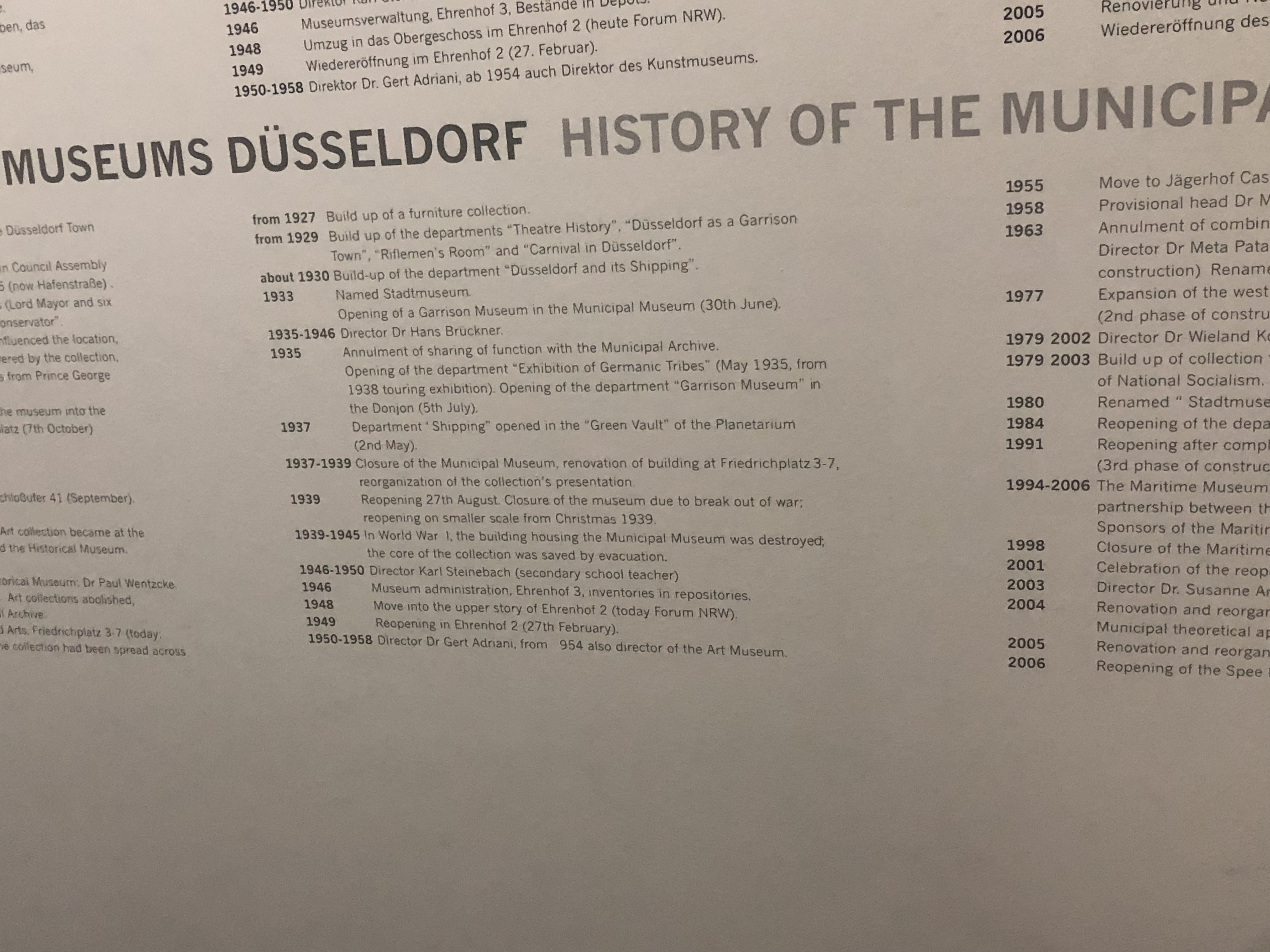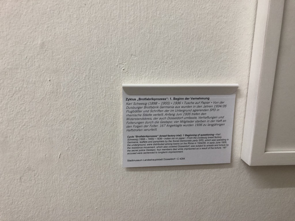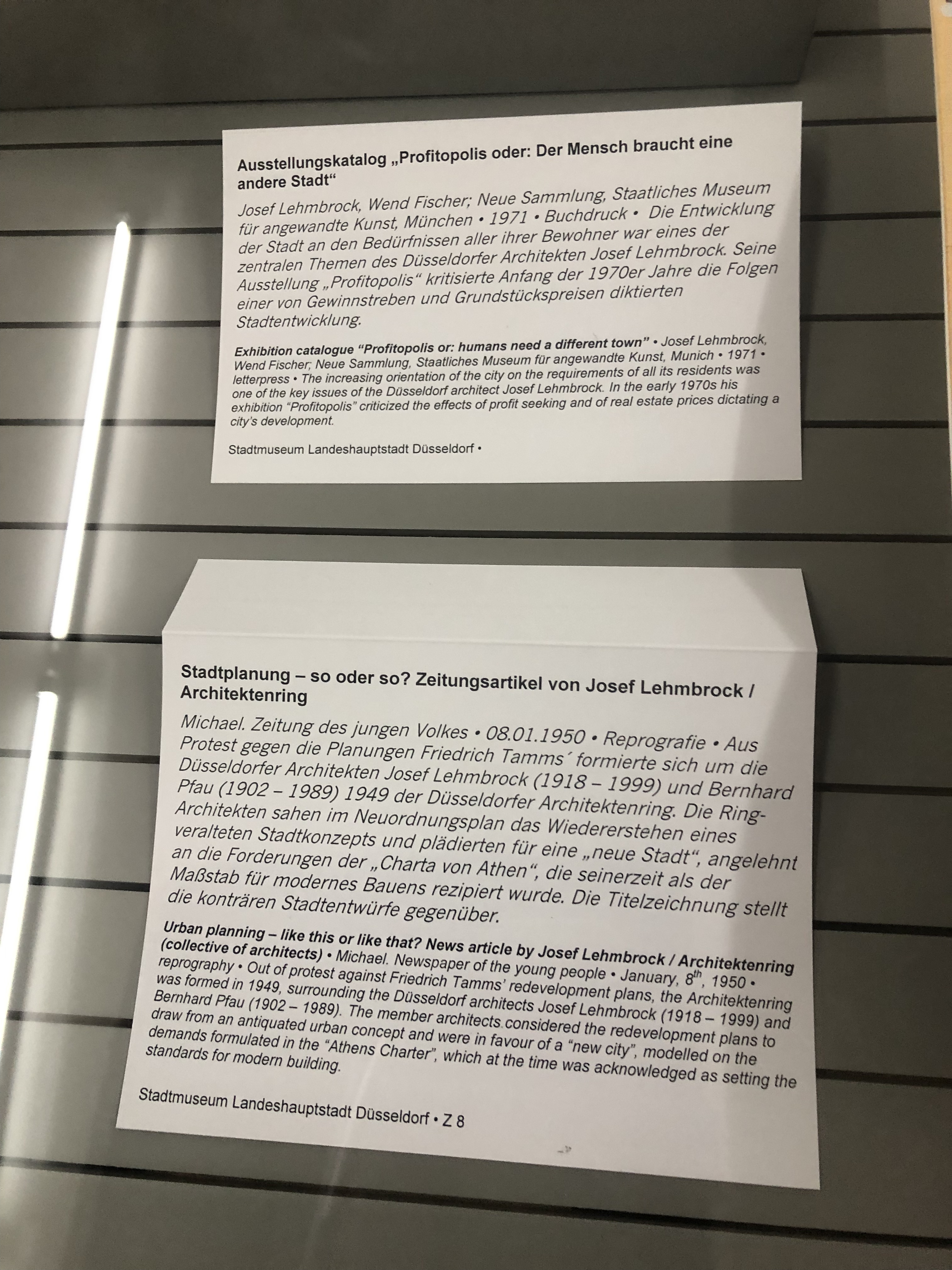 After getting set up in our hotel, and me reassuring someone outside it that a local pigeon hadn’t shat in her hair, we went by tram to the Stadtmuseum. It’s in the part of Düsseldorf that houses the Nordrhein-Westfalen government, and is well worth a visit if you want to understand how the city developed. So here are lots of photos, roughly in the order the history was described, along with some randomness, and here’s cyclemeter’s recording of our dribbling around Düsseldorf. (Ignore the time – I only just remembered to stop it.)