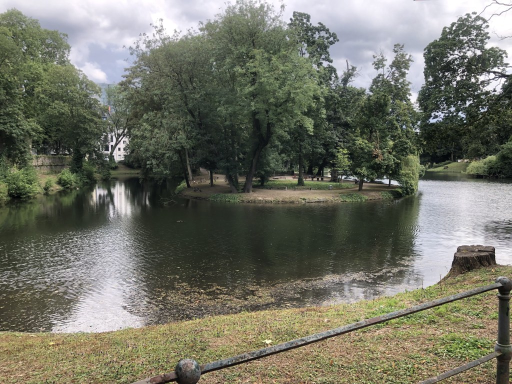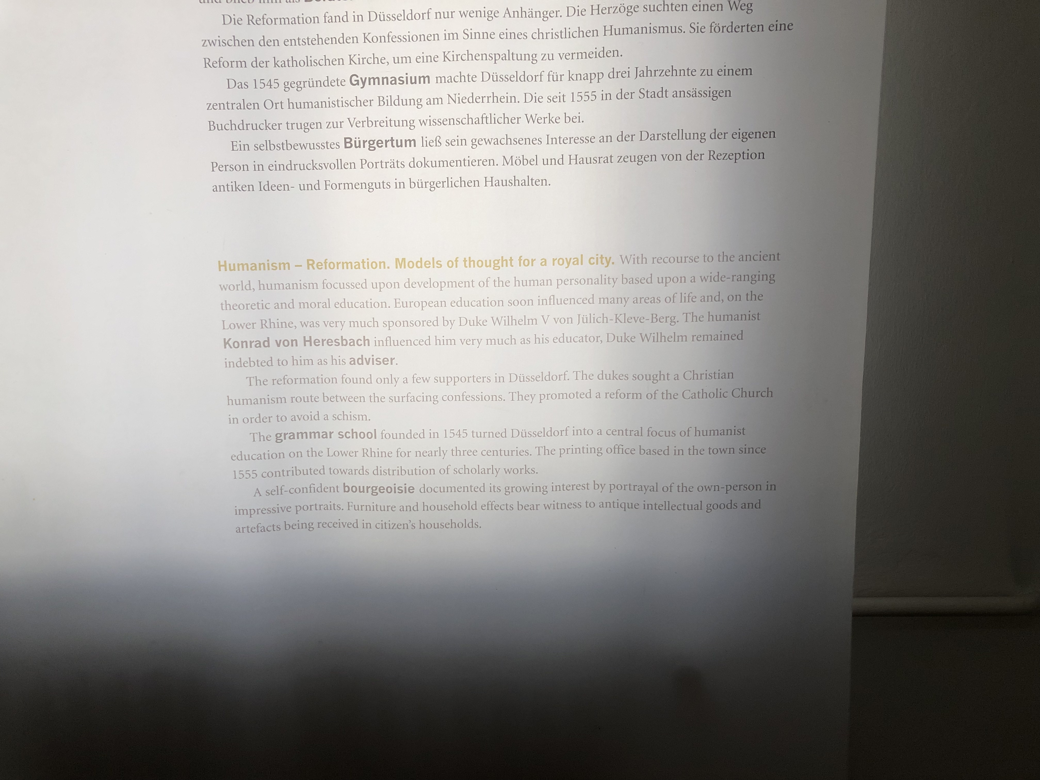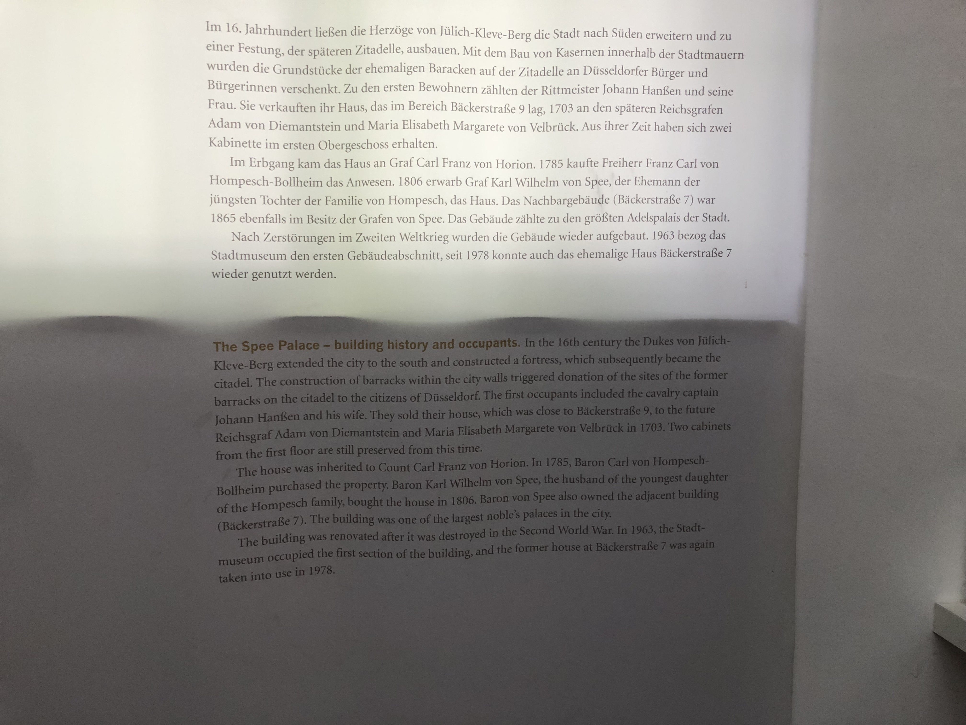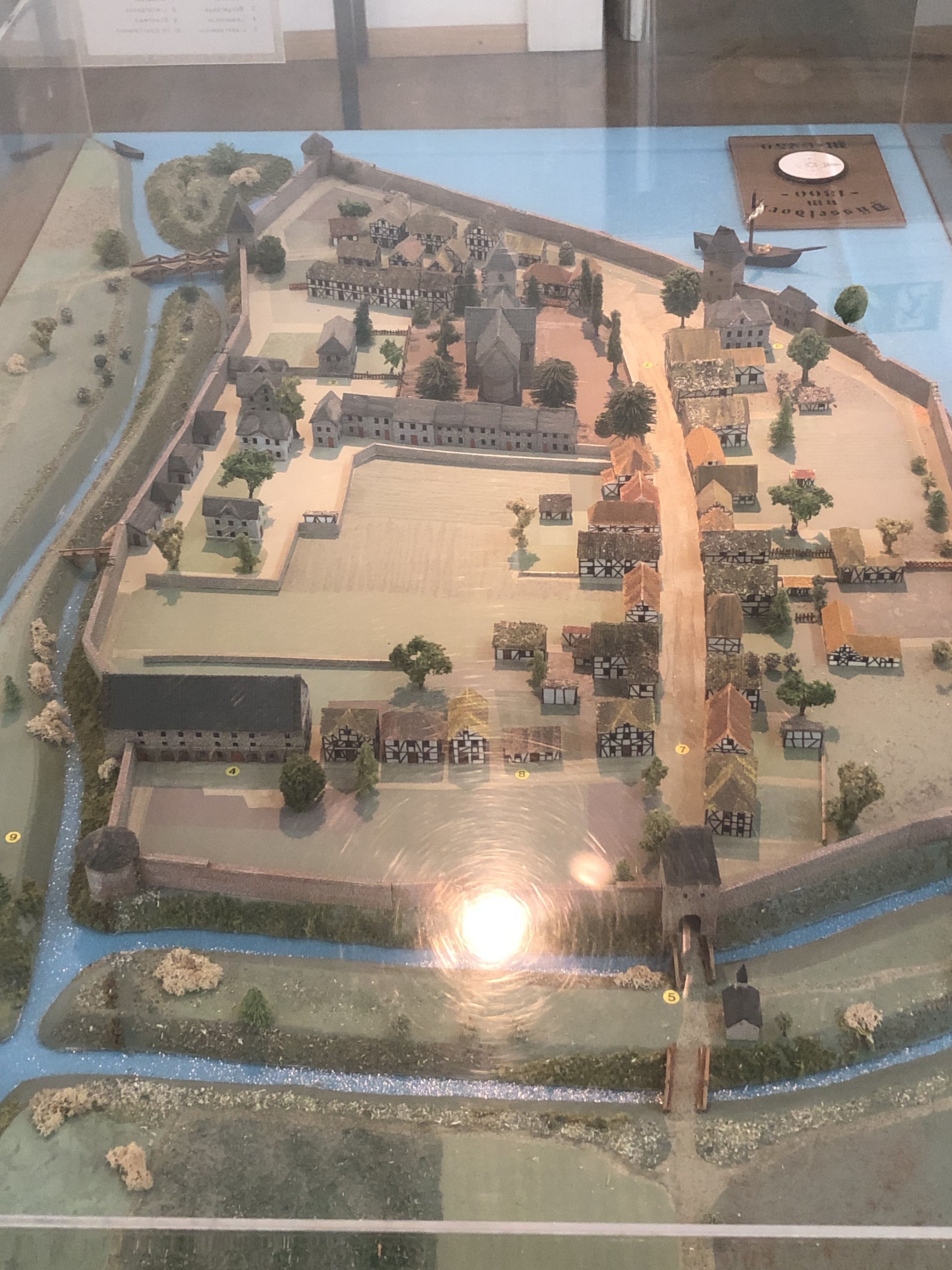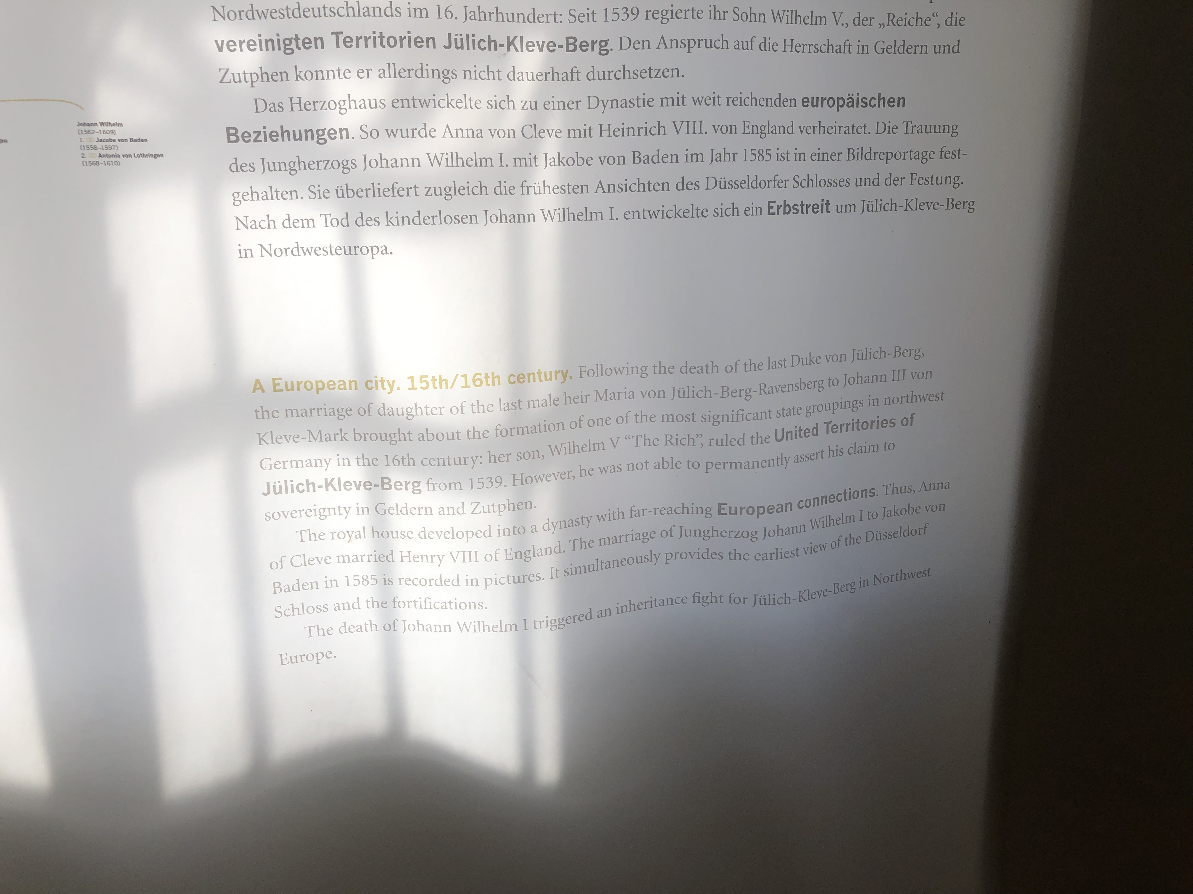 After getting set up in our hotel, and me reassuring someone outside it that a local pigeon hadn’t shat in her hair, we went by tram to the Stadtmuseum. It’s in the part of Düsseldorf that houses the Nordrhein-Westfalen government, and is well worth a visit if you want to understand how the city developed. So here are lots of photos, roughly in the order the history was described, along with some randomness, and here’s cyclemeter’s recording of our dribbling around Düsseldorf. (Ignore the time – I only just remembered to stop it.)