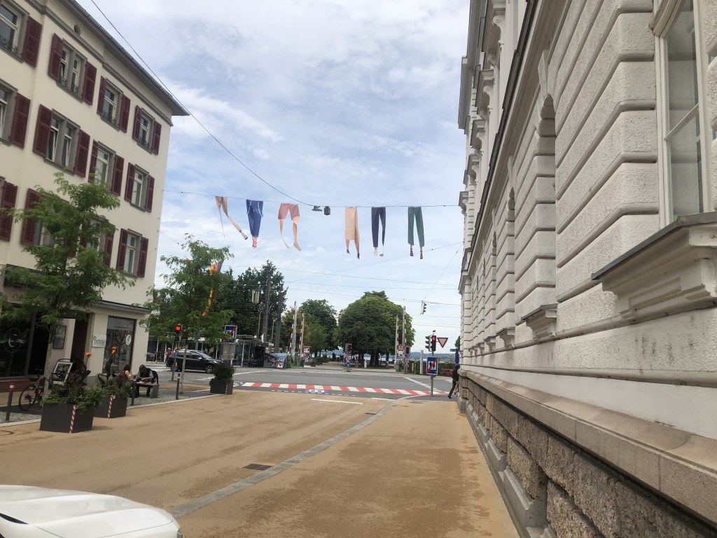 Back to today’s plot: I’d seen this exhibition was on at the Kunsthaus, and was inspired to do some actual culture! (Remember, I normally thing that culture is either what the powers that be let you get away with or what grows beneath my toenails.) OK, I admit I was intrigued by the title: does the artist wish some bloke was gay and so wasn’t attracted to her, or some woman who she fancied was gay so they could be more than friends? Well, this exhibition didn’t answer either of these. I don’t have anything like enough German or understanding of ART to even understand what it asked – if anything. I did really enjoy the infinite feelings of the scaffolding piece below. Something like a static and not quite so malicious cousin to the hammers in The Wall. Or maybe it’s just the repetitive simplicity.
