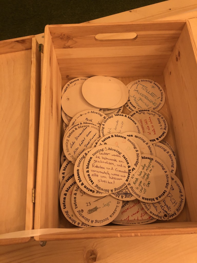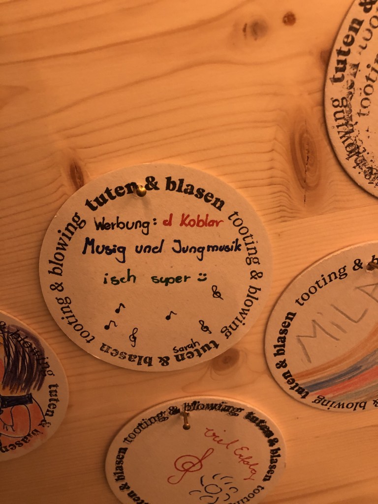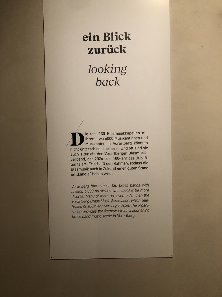 Then there was an exhibition (aimed mostly at children) or Bregenz’ roman past, followed by an amusing (for me) piece on Vorarlberg Blasmusik (brass band music) – apparently still very important. I wonder what the curators will think of my response to their question – see the photos below.