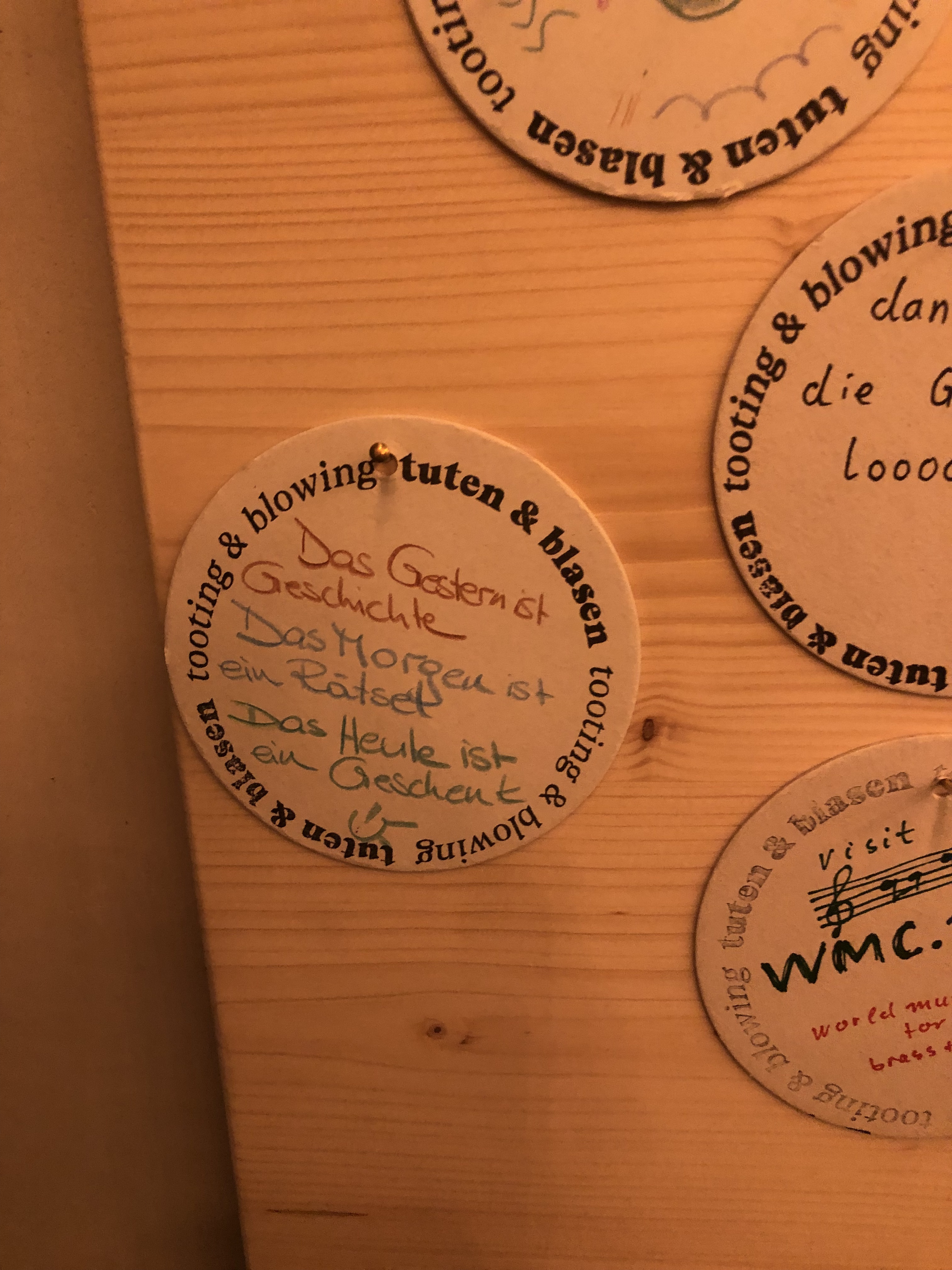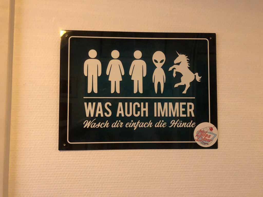 Two beers was enough, so we retired to watch yesterday’s TdF highlights and plan eating. Yay, veganburger and fries at Miles Diner, followed by today’s TdF highlights and writing this turgidity. Here’s the closing thought for today, from the diner. Tschuss!