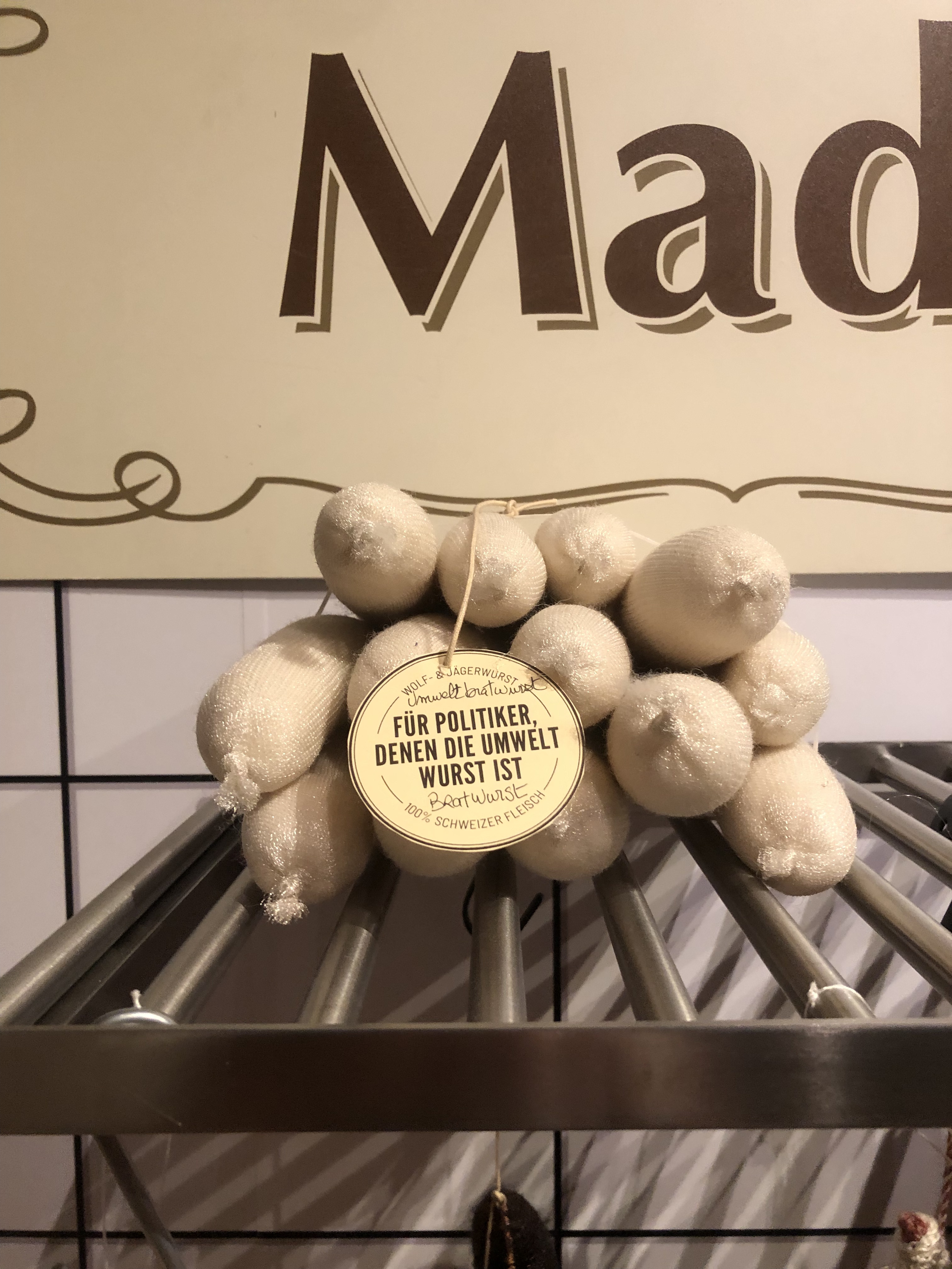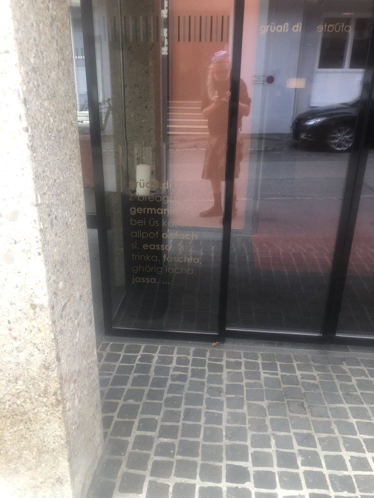 After lunch, time for more culture! In this case the Vorarlberg museum. I was hoping for a potted history of how the state came to be, but got both more and less. The museum asked ‘well, how should the past be represented and what should we do with our collection, because we can’t show it all? Here’s our idea: 27 themes from the 27 letters of the alphabet’. (They include the Turkish S-cedilla.) So no ‘this is what happened’ but ‘here are some stools, here are some caps, here are some toys. Here is what we know about them. Make your own history.’