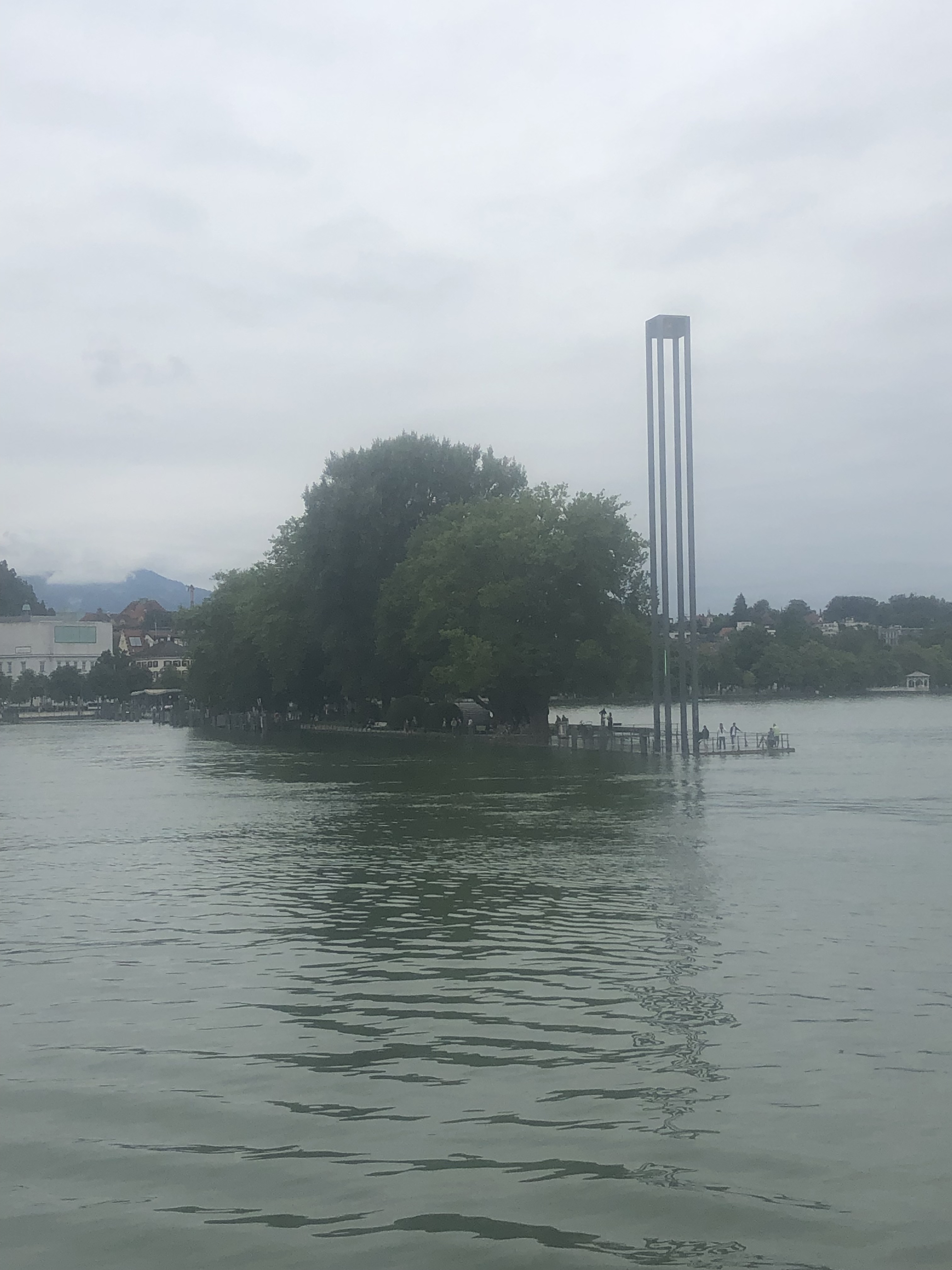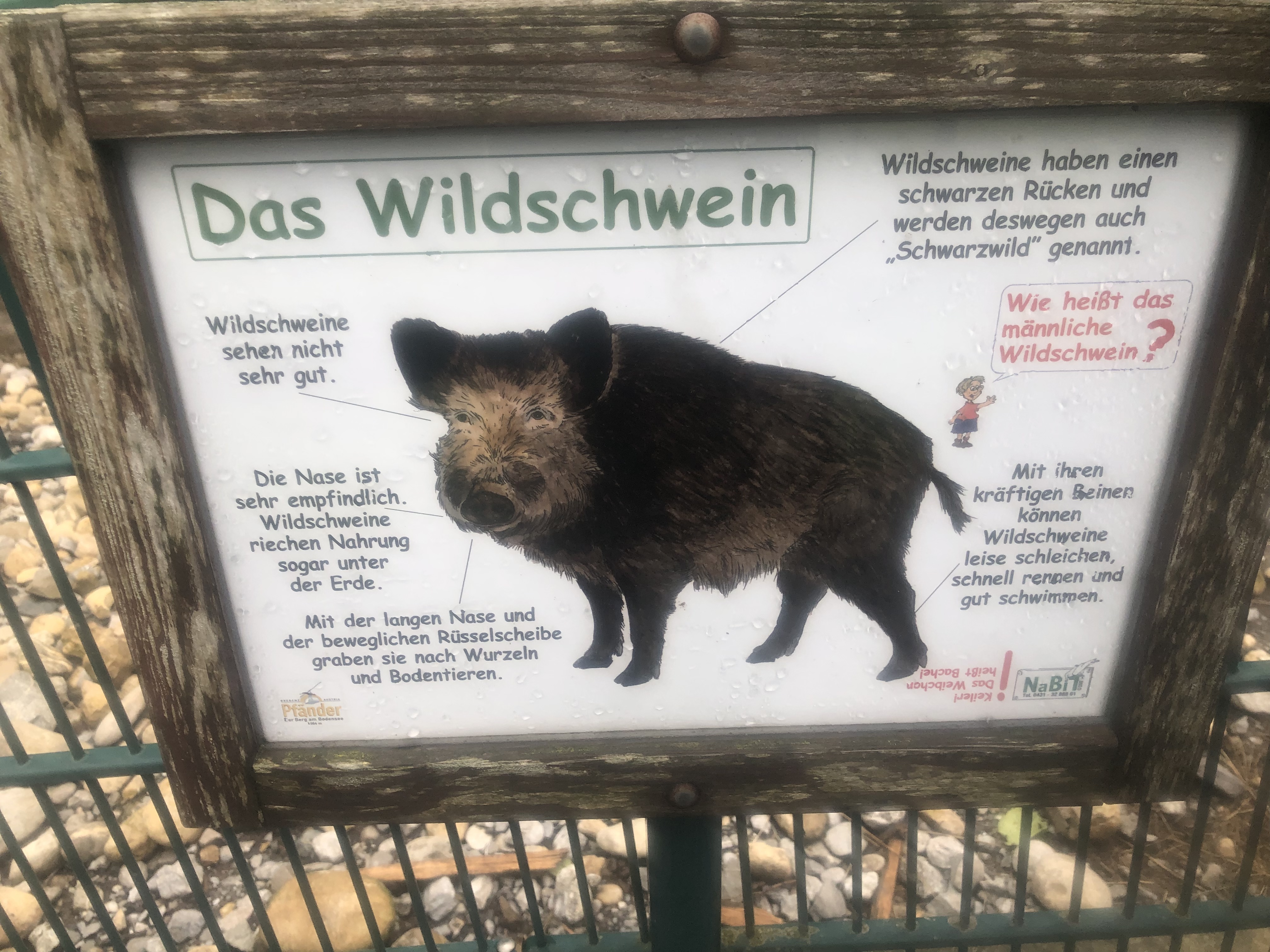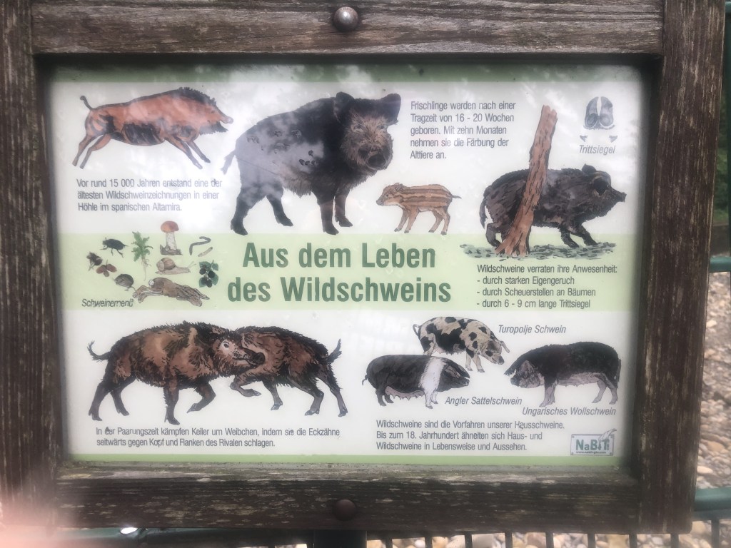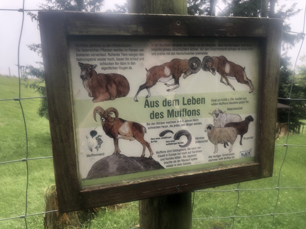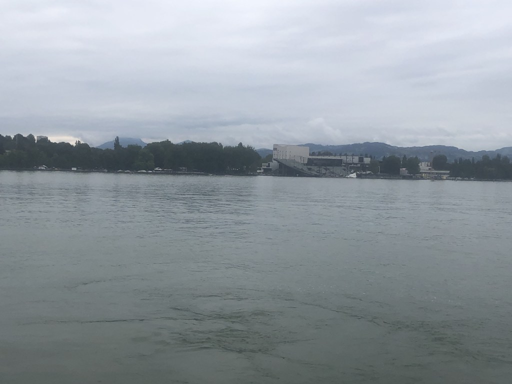 So today, despite starting off overcast and a bit damp, was fab. After a very late lie, we dragged ourselves to the Pfänderbahn, a cable car leading up a hill behind Bregenz. We were not optimistic we’d see much through the mist, and certainly not when we were almost last on to the car. However, at the top the cloud wan’t bad, and the animals were fun. (I’m generally not a fan of zoos that capture animals from vastly different climates for humans to goggle at, but the animals here were all native to this area, and didn’t seem to be maltreated, at least not to my ignorant eyes.) Of course the Wildschweine were the best. (See the movie in this tweet.)