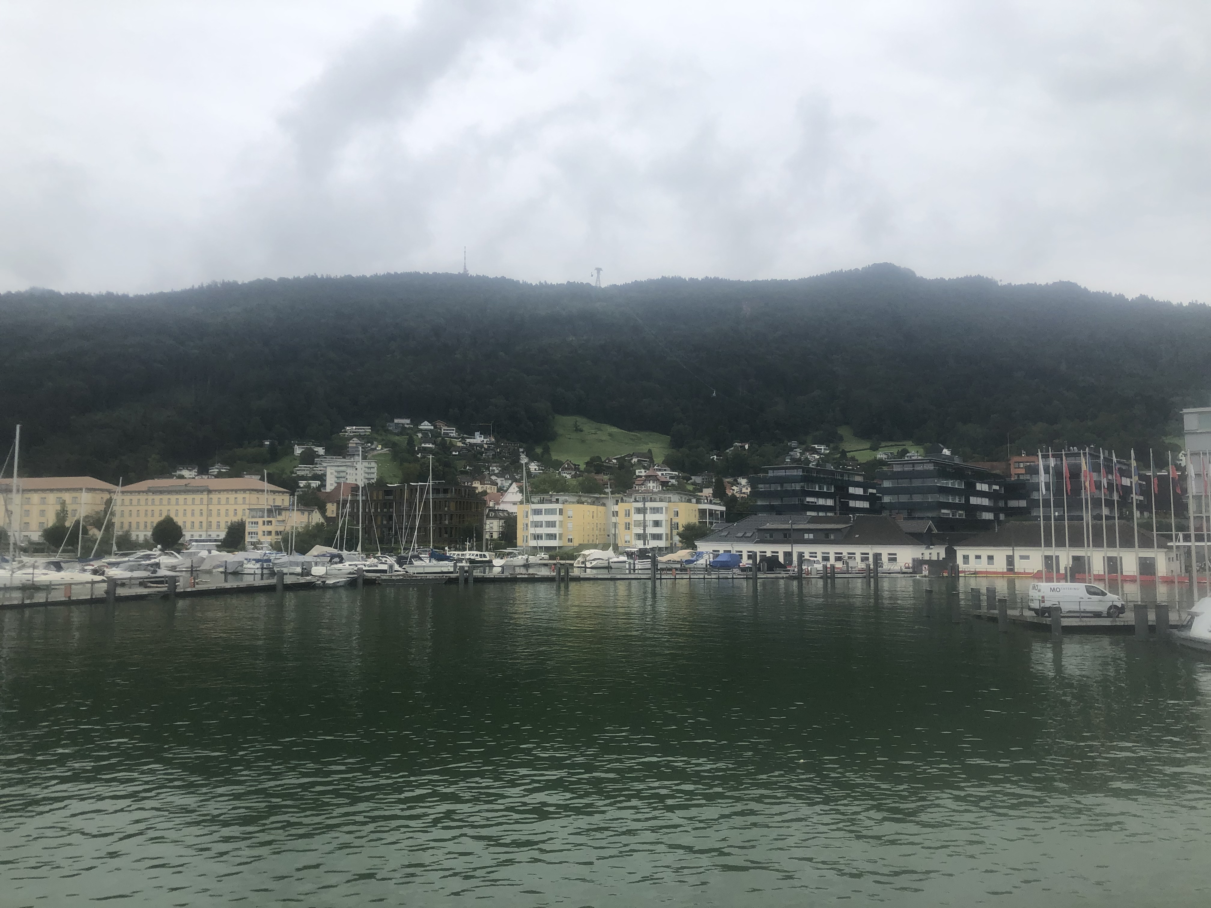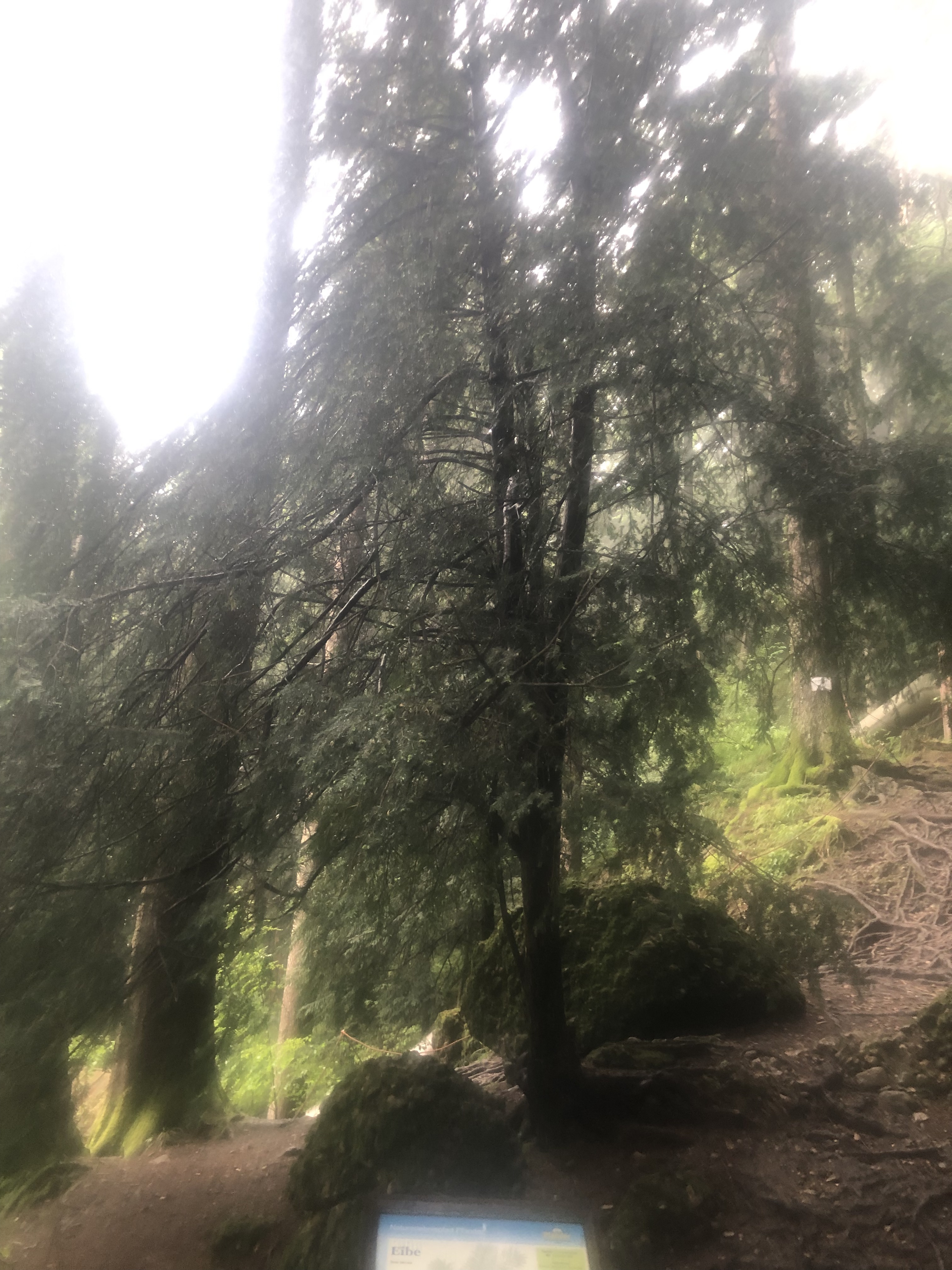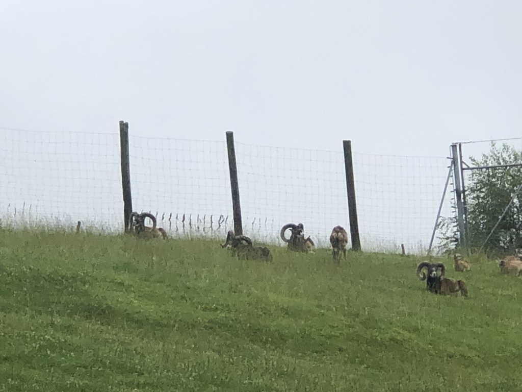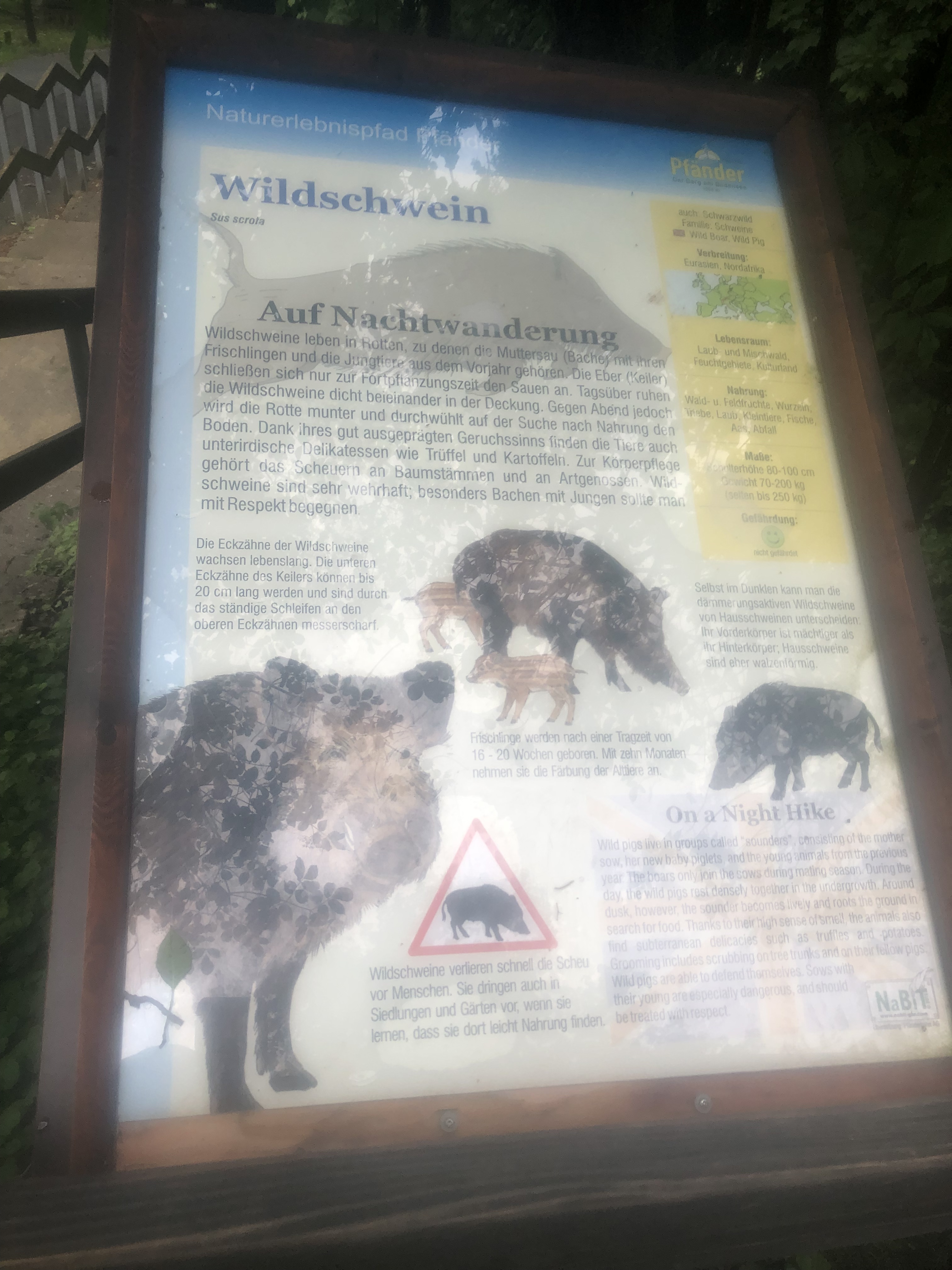 So today, despite starting off overcast and a bit damp, was fab. After a very late lie, we dragged ourselves to the Pfänderbahn, a cable car leading up a hill behind Bregenz. We were not optimistic we’d see much through the mist, and certainly not when we were almost last on to the car. However, at the top the cloud wan’t bad, and the animals were fun. (I’m generally not a fan of zoos that capture animals from vastly different climates for humans to goggle at, but the animals here were all native to this area, and didn’t seem to be maltreated, at least not to my ignorant eyes.) Of course the Wildschweine were the best. (See the movie in this tweet.)
