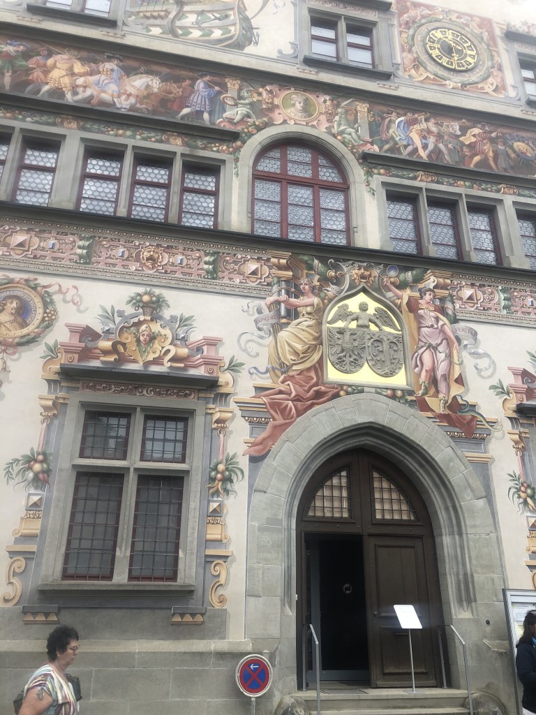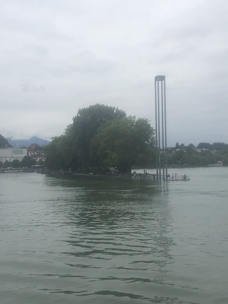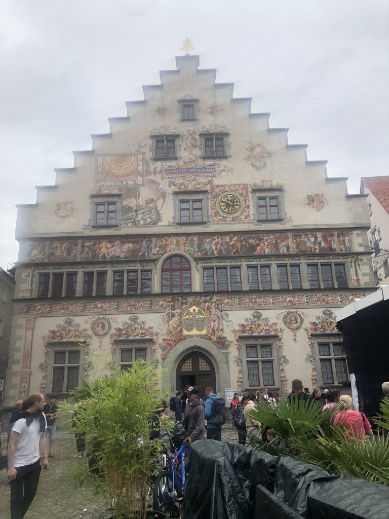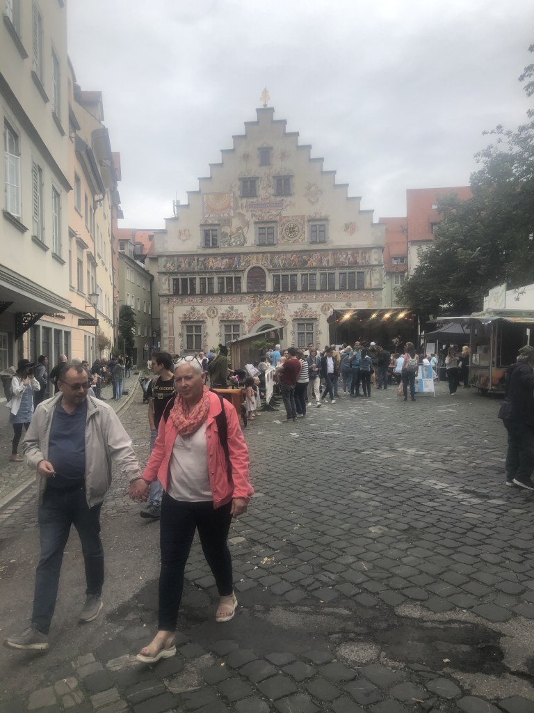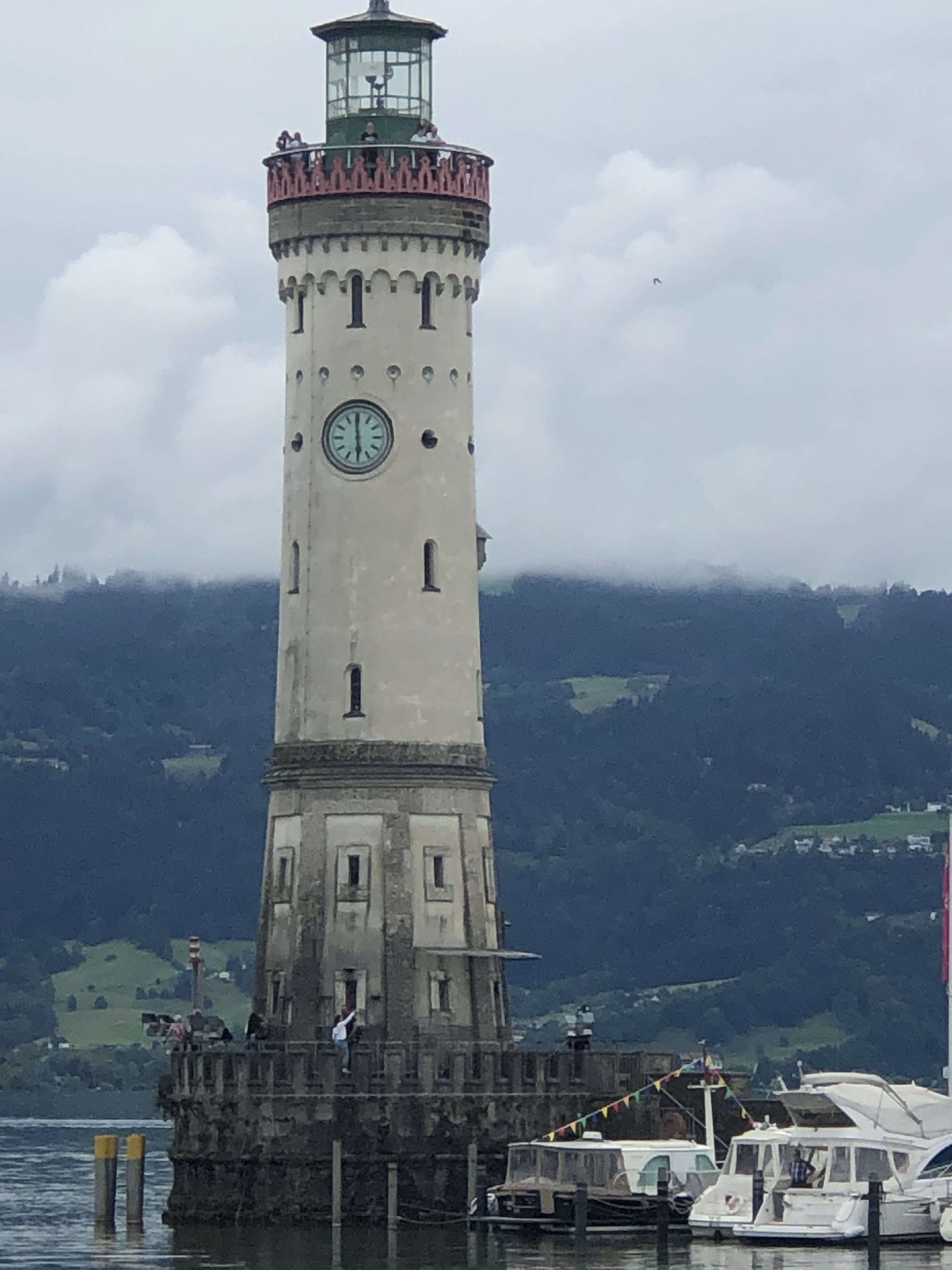 While we’ve been near the Bodensee before, we’ve never (as far as I recall) been on the water. So I suggested this as an afternoon activity. We had to wait to 16:30 to get a boat, so decided to go just one stop to Lindau (cyclemeter amp). (The boats go to many destinations along the north and south banks.) Elly saw that Lindau has a library museum in its Alte Rathaus, so that was our thing to do on this island.