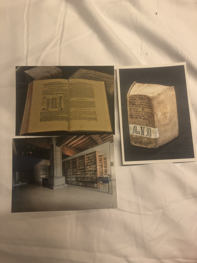 We both thought the museum was amazing – it has books from centuries ago, including a genuine copy of Newton’s Principia. This had Elly bouncing and me grinning like a loon! There were also genuine Keplers, a Bernoulli and others from he dawn of real science. it appears the collection was just there, unprotected, until about 12 years ago. Then these priceless items were discovered, and the collection was put behind safety glass. The books can still be accessed, I believe, presumably if you have a really good reason. Photography was understandably not permitted, but there are some postcards in the gallery below.