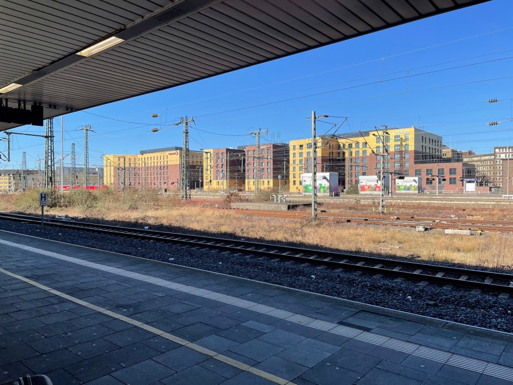 Breakfast was at a BackWerk outside Düsseldorf main station. We then trundled back to the hotel to collect our luggage and then the station, where we bought lunch at another BackWerk. My triumph of the day was when someone I spoke to on the train asked if I was Dutch. Hooray – although crap, my German is at least a bit continental! But my dummes Touristenereignis was asking for the deposit on some drinks bottles in the train buffet. I got quite a lecture on how train buffets don’t do this, and that I’d need to go to a supermarket.