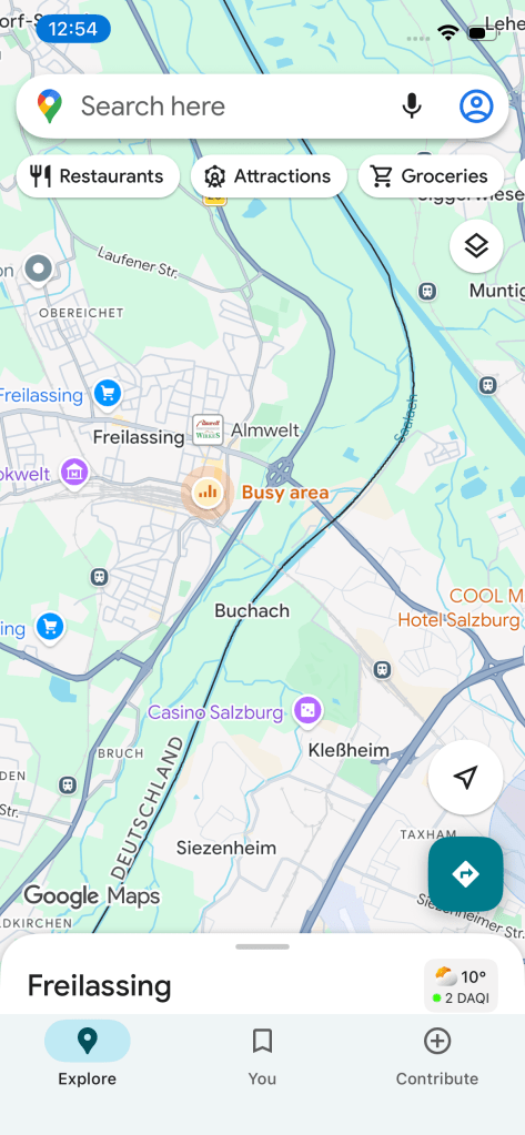 For possibly the first time ever, I was glad I woke before 9am – DB had emailed that our train to Vienna would now start from Munich East, about 5 miles from Munich Central. Ah well, this is what U-Bahns are for. The train to Vienna stayed about 15 minutes behind schedule, but again this wasn’t a problem for us. I feel enormously lucky that announcements were repeated in English. Are visitors from overseas treated this well in the UK – of course not!