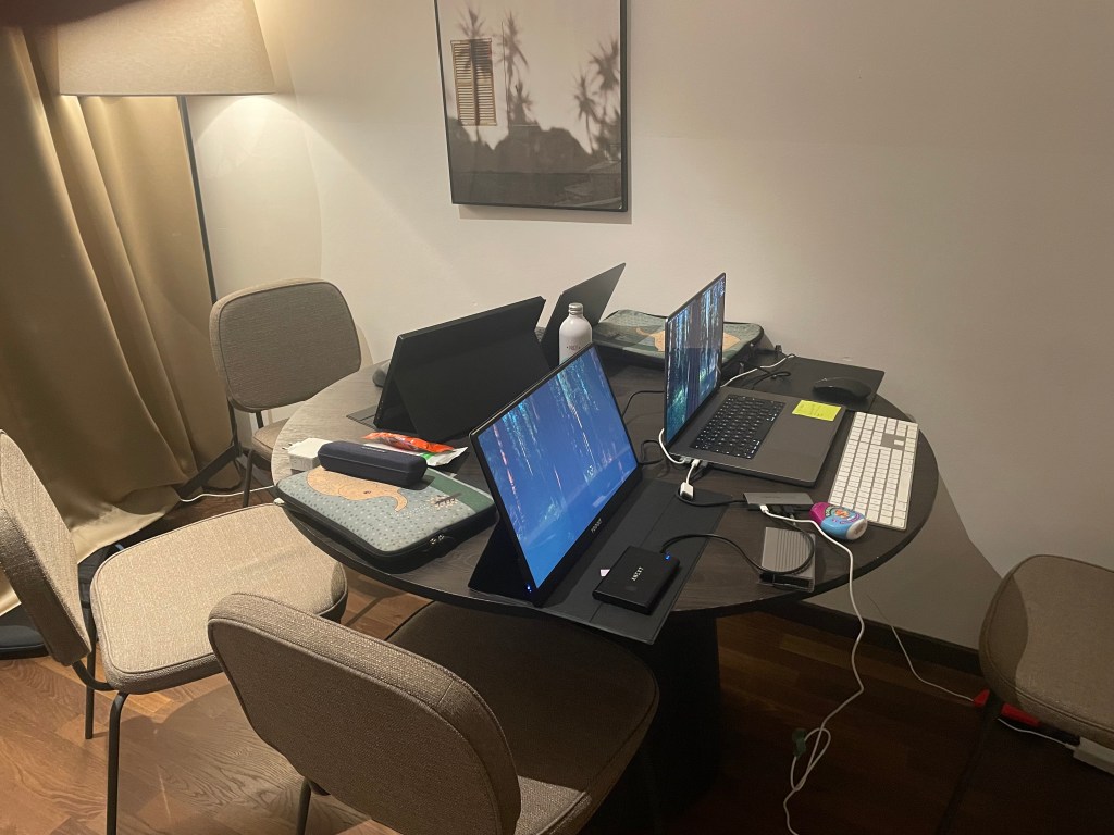 The first actual – but minor hassle – arose in the morning when it was announced that the gangway had technical issues. We sweated in deck 7 next to the stairs to the gangway, then were guided down the vehicle ramp to customs. Elly suggested we could post stuff home to not need the heavy wheelie case – which courier did we like least? Someone standing next to us was amused by my reply ‘OK, so we give the courier our used undies’.