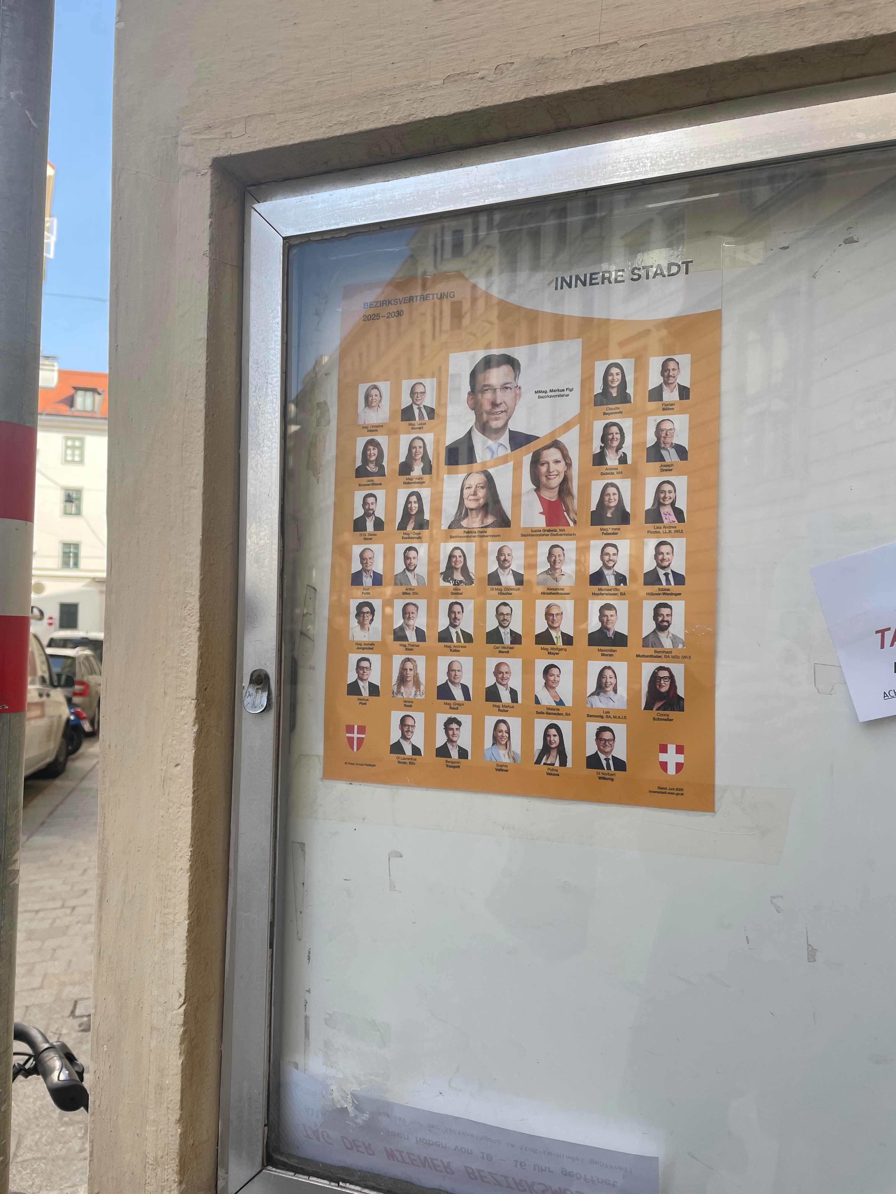 - U4 to Schottenring, then walk via Eßlinggasse and Börseplatz to 1., Wipplingerstraße 8, office of Bezirke 1 (Innere Stadt)
