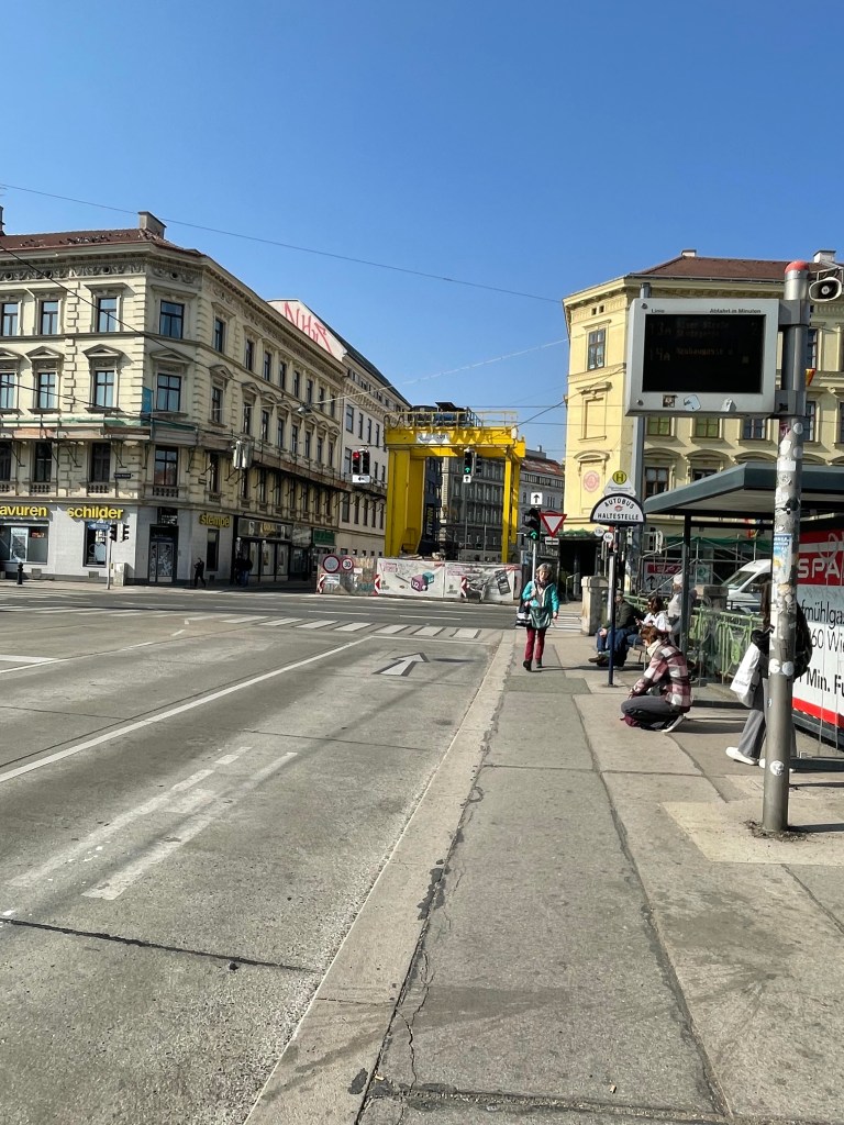 - Tram 11 should have gone almost due east but due to a power-supply issue in Favoriten went north to the Hauptbahnhof before turning south-east at stop at Polkorabplatz