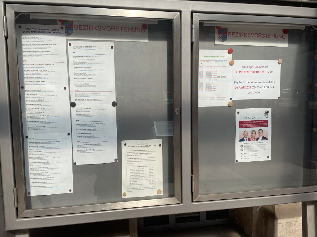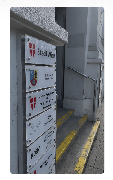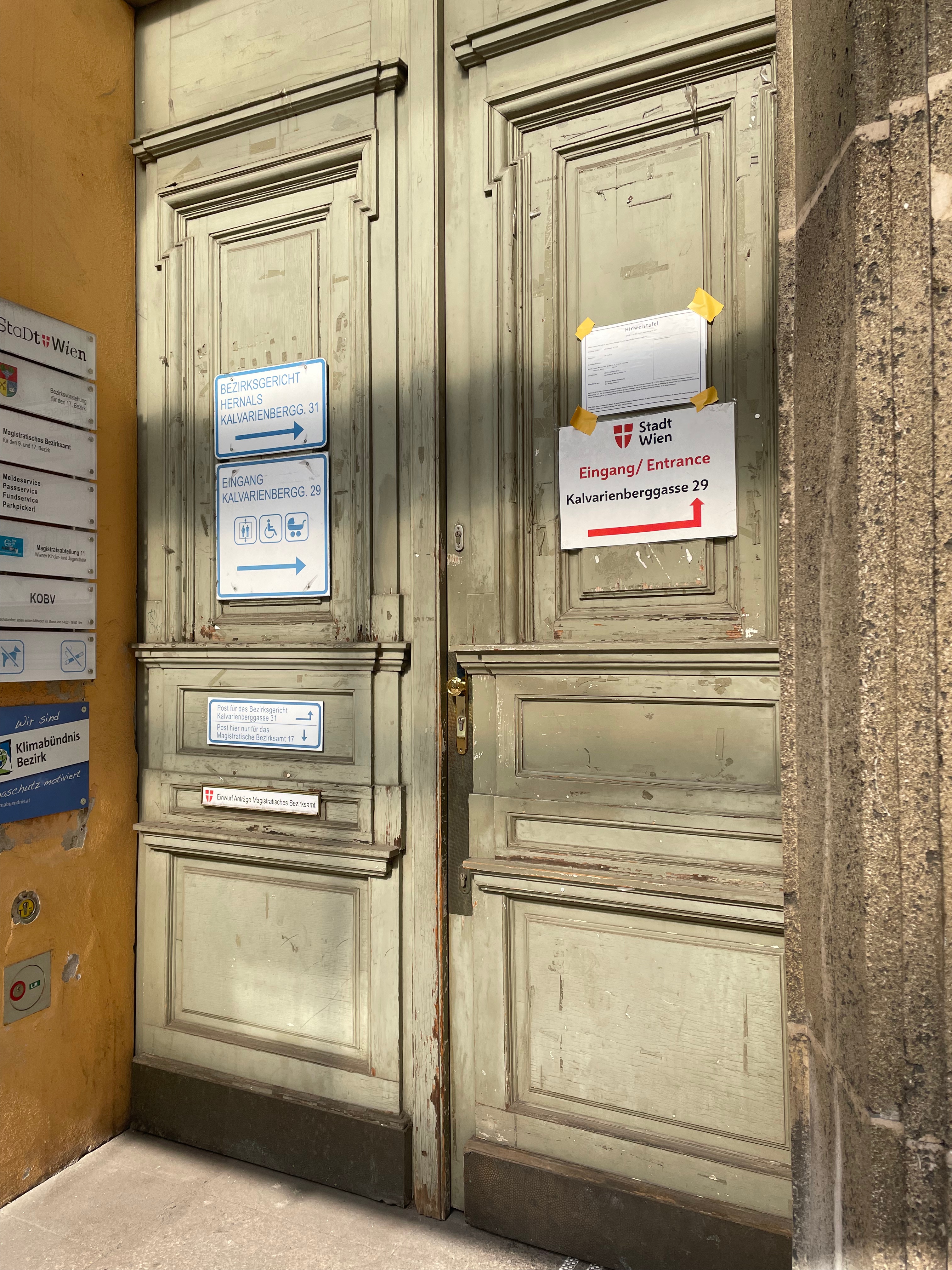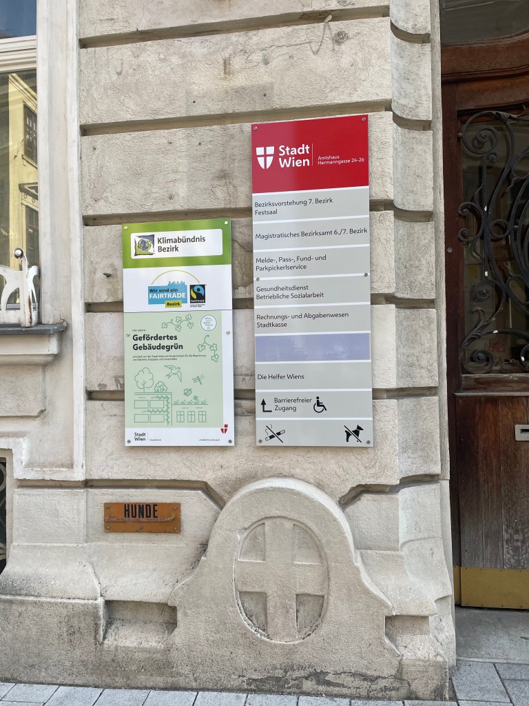 - walk to 7., Hermanngasse 24-26, office for the 6th (Mariahilf) and 7th (Neubau) Bezirke