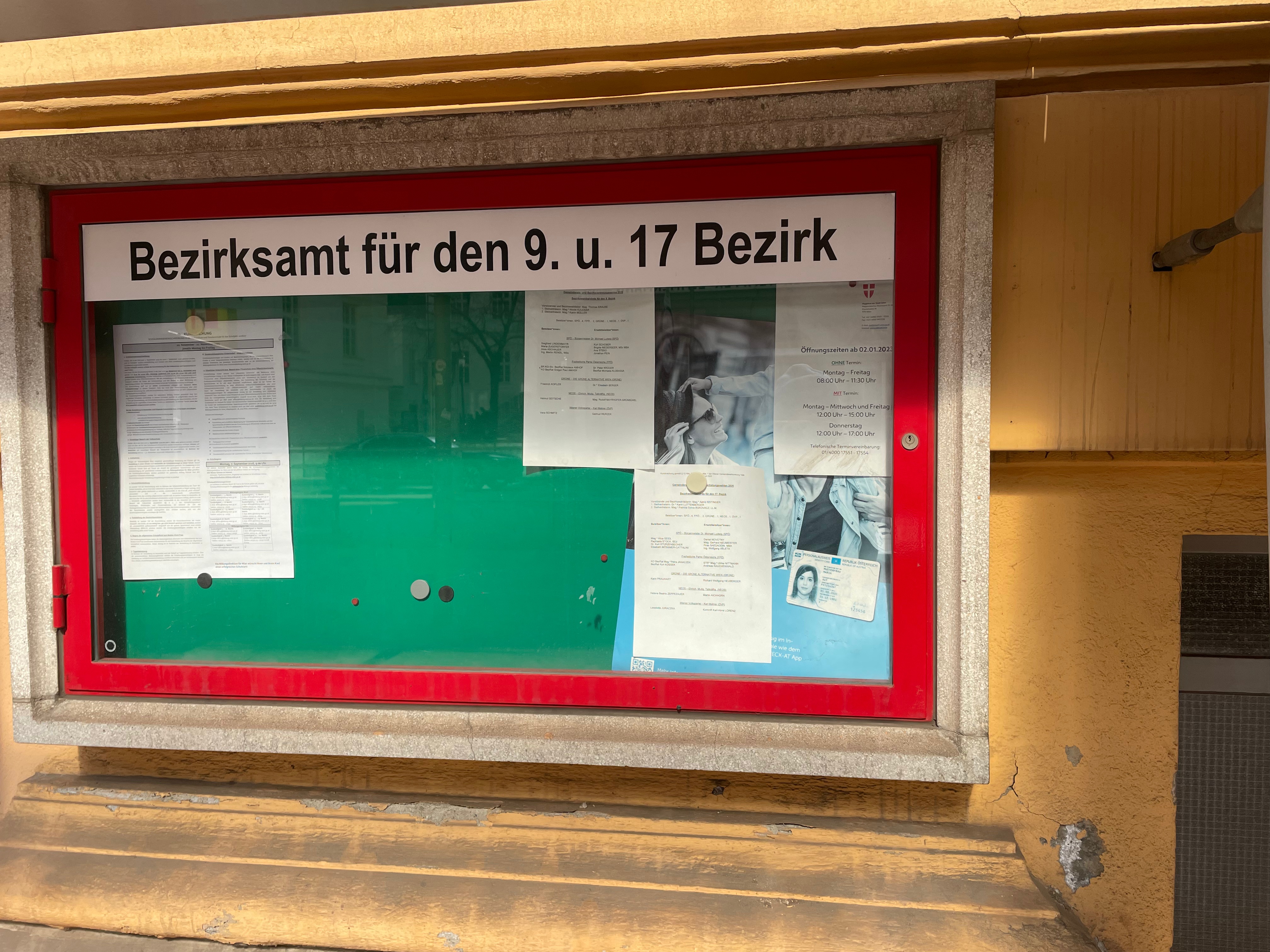 - walk to 17., Elterleinplatz 14, office of the 9th (Alsergrund) and 17 (Hernals) Bezirks