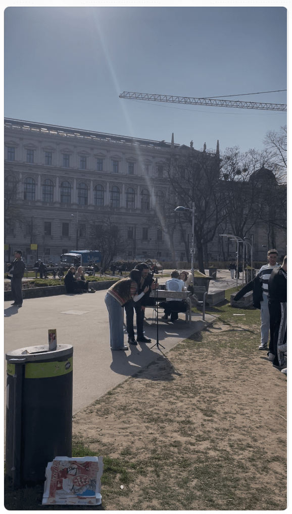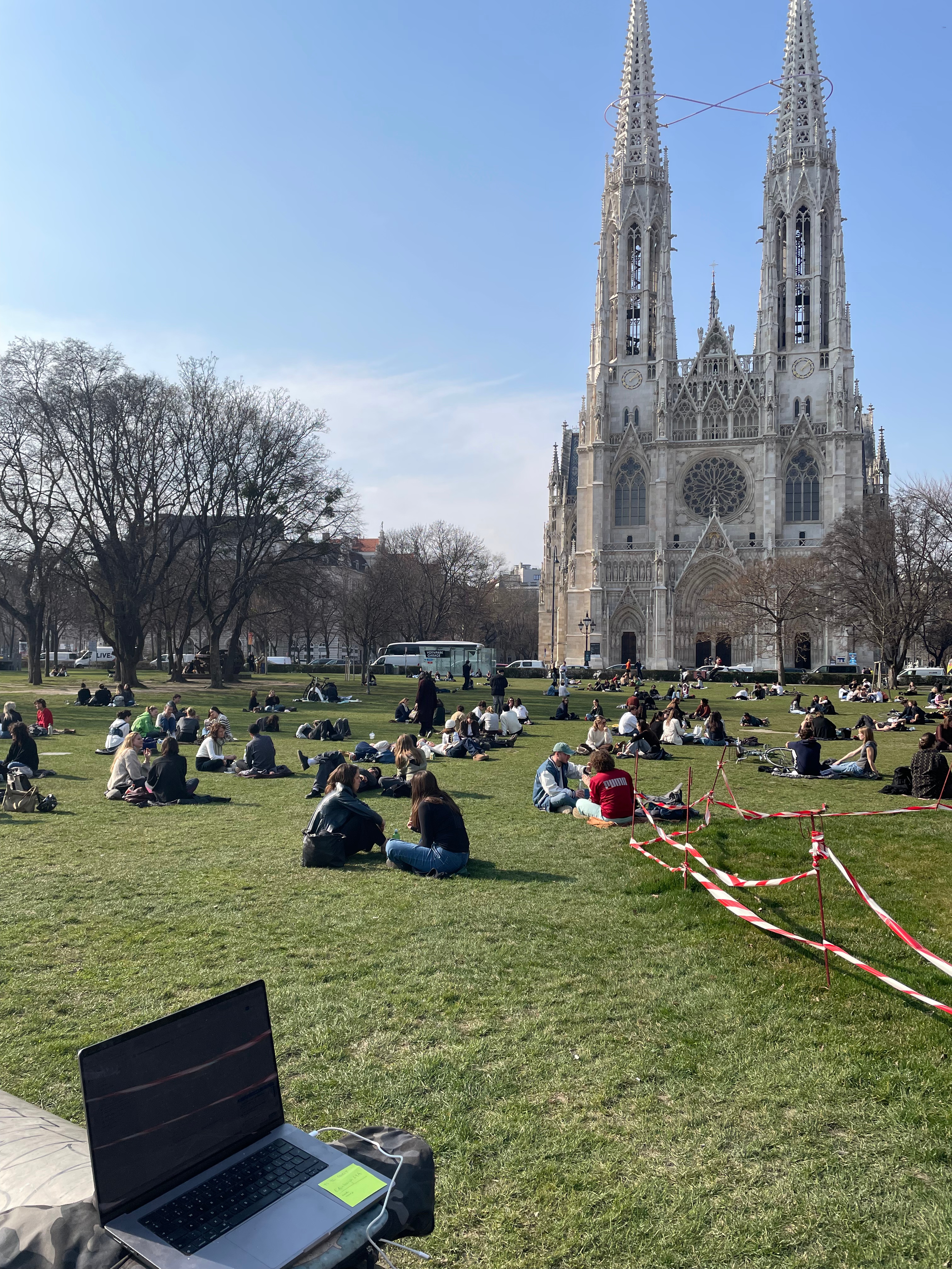 - research project meeting sat by the Donaukanal outside Roßauer Lände U-Bahnhof