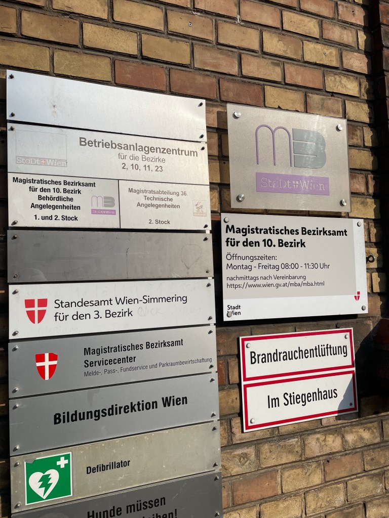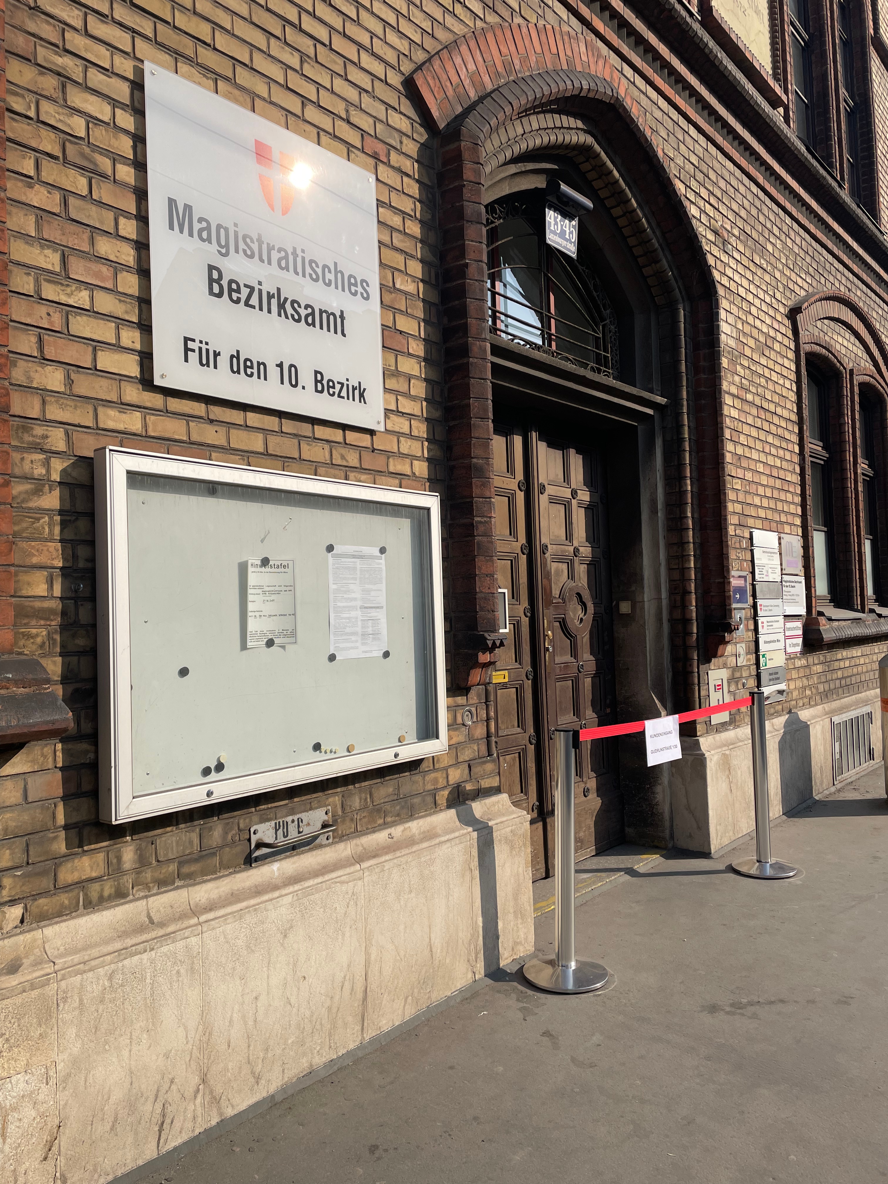 - walk to 10., Laxenburger Straße 43-45 for the office of Bezirk 10 (Favoriten)