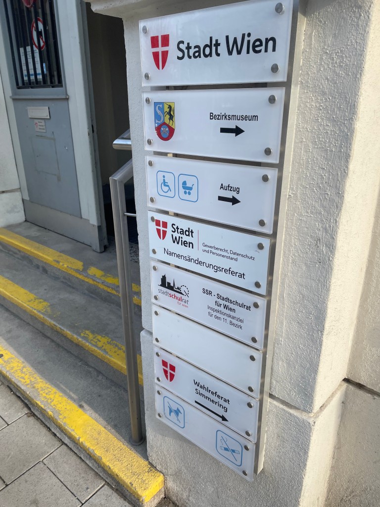 - Walk to 11., Enkplatz 2 for the 11 (Simmering) Bezirk office