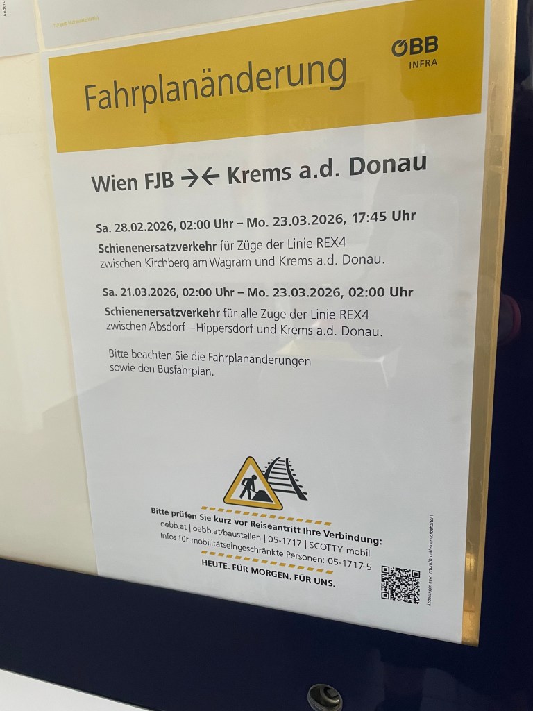 - smooth transfer to rail-replacement bus to Krems an der Donau Bahnhof – well done ÖBB!