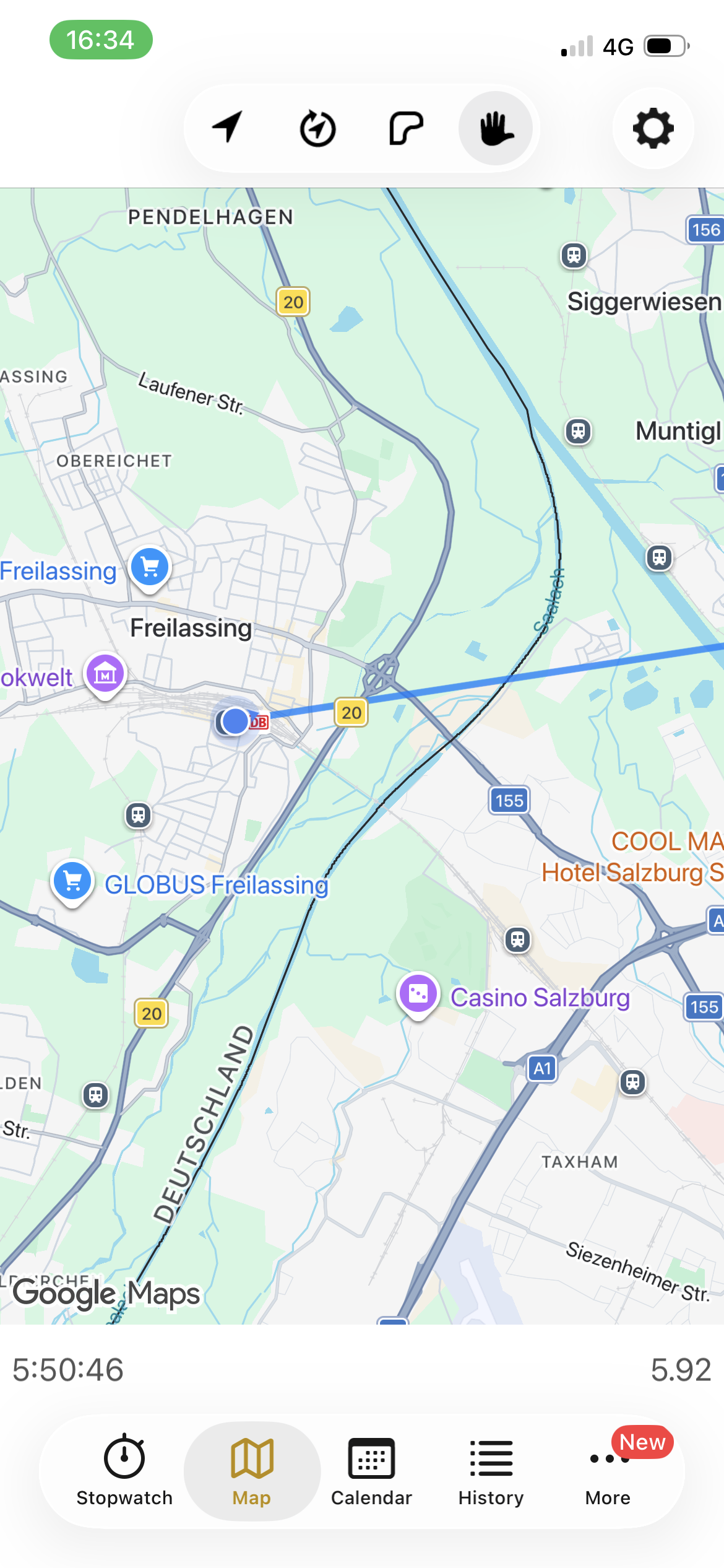 - supposedly all the way to München Hauptbahnhof, arriving 16:34 but in reality to München Ost, followed by S1 to München Hauptbahnhof